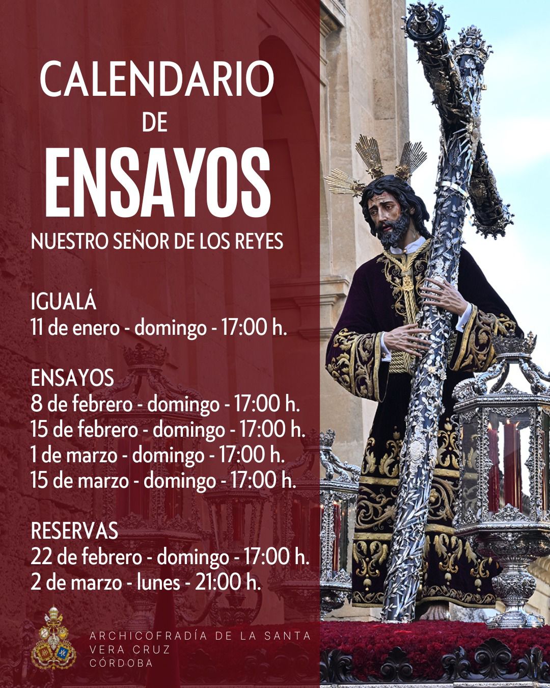 Esperamos verte acompañando a Nuestro Señor de los Reyes en estos acontecimientos históricos para nuestra Hermandad.