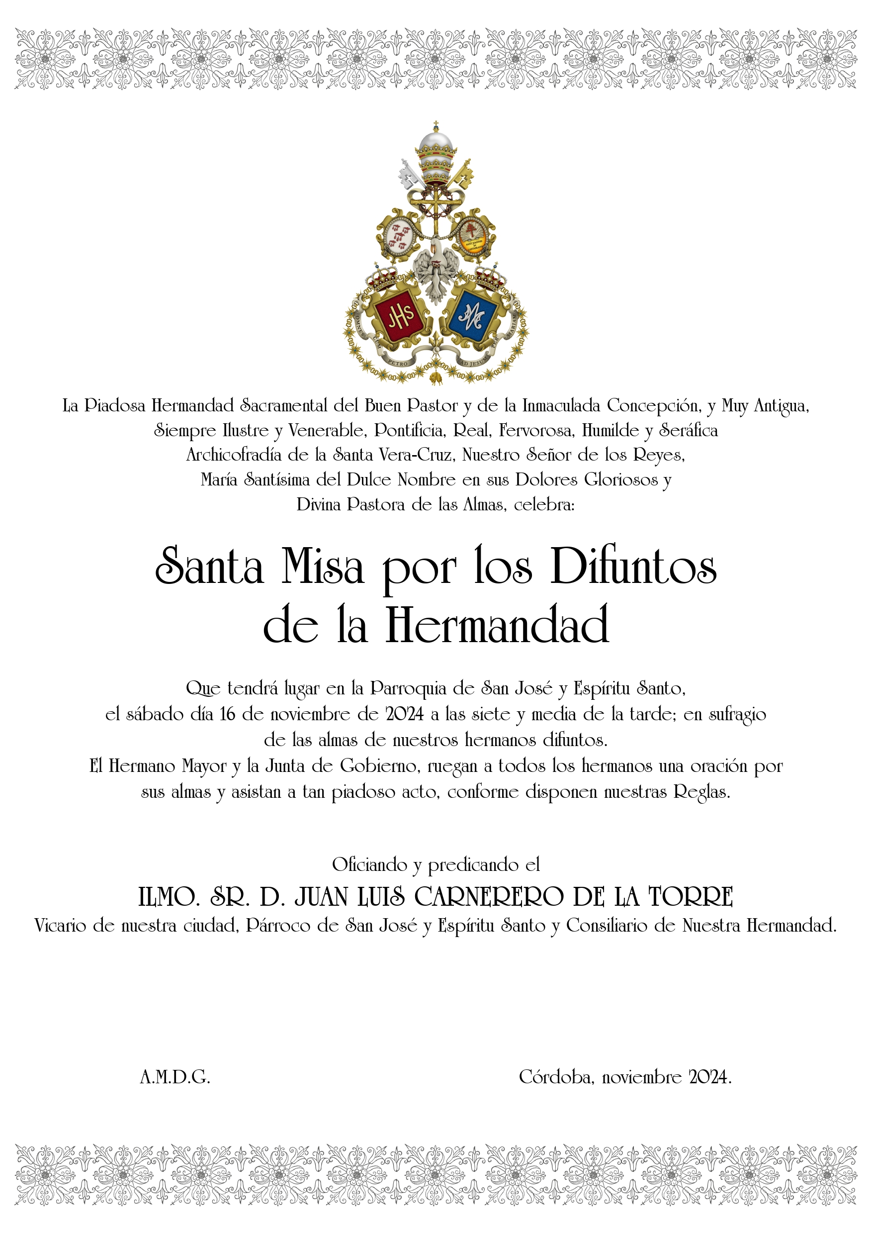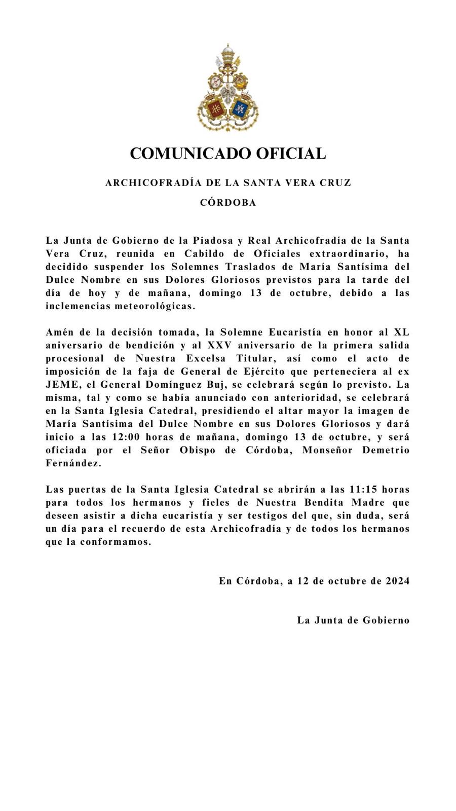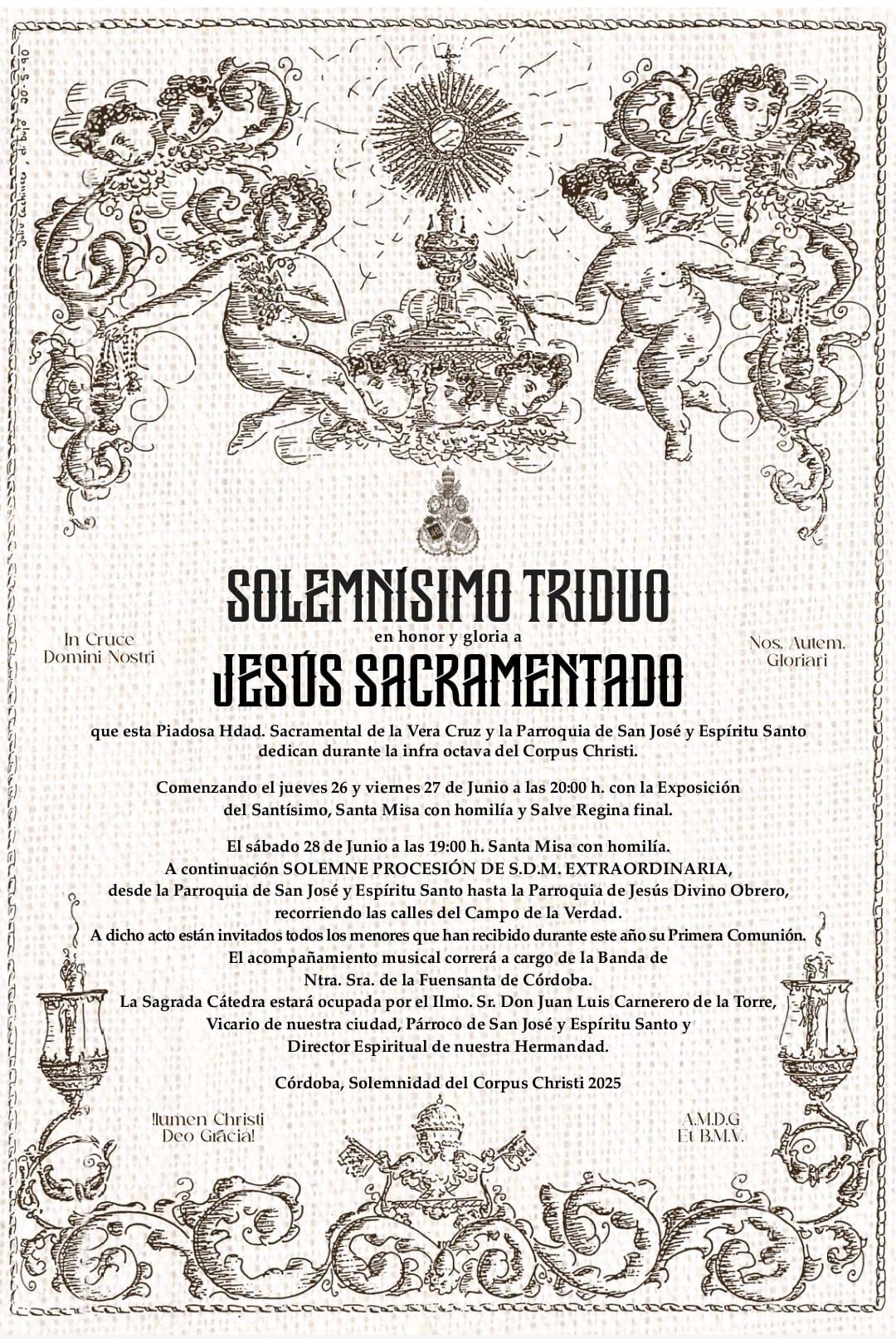 Desde esta Junta de Gobierno queremos agradecer la colaboración y apoyo de nuestro Obispo, el Excmo. y Rvdmo. Señor Don Demetrio Fernández González, al Cabildo Catedral y su Deán Ilustre Sr. Don Manuel Pérez Moya y a nuestro Director Espiritual y Delegado Diocesano de Hermandades y Cofradías de Córdoba, el Ilustre Sr. Don Pedro Soldado Barrios.
