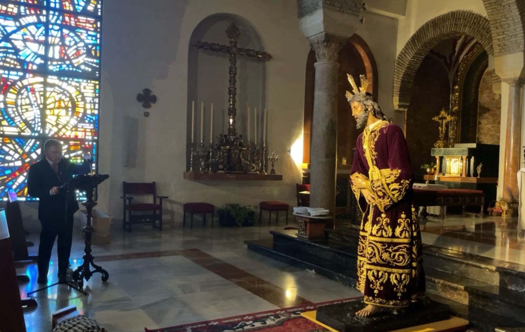 Hoy domingo, a las 12 horas de la mañana, se ha celebrado en la Santa Iglesia Catedral la Santa Misa de clausura de la Exposición 'Eterna es Su Misericordia'. Sobre la mesa de Altar, presidiendo el Lignum Crucis de la Archicofradía, y en el Altar Mayor Nuestro Señor de los Reyes entronizado en la parihuela que le llevaría de regreso a nuestra parroquia. Pero la lluvia que caía sobre la ciudad a la hora prevista del Traslado ha impedido que se pudiera llevar a cabo. Al finalizar la Santa Misa, los fieles han podido venerar la Santa Reliquia de la Cruz de Cristo.