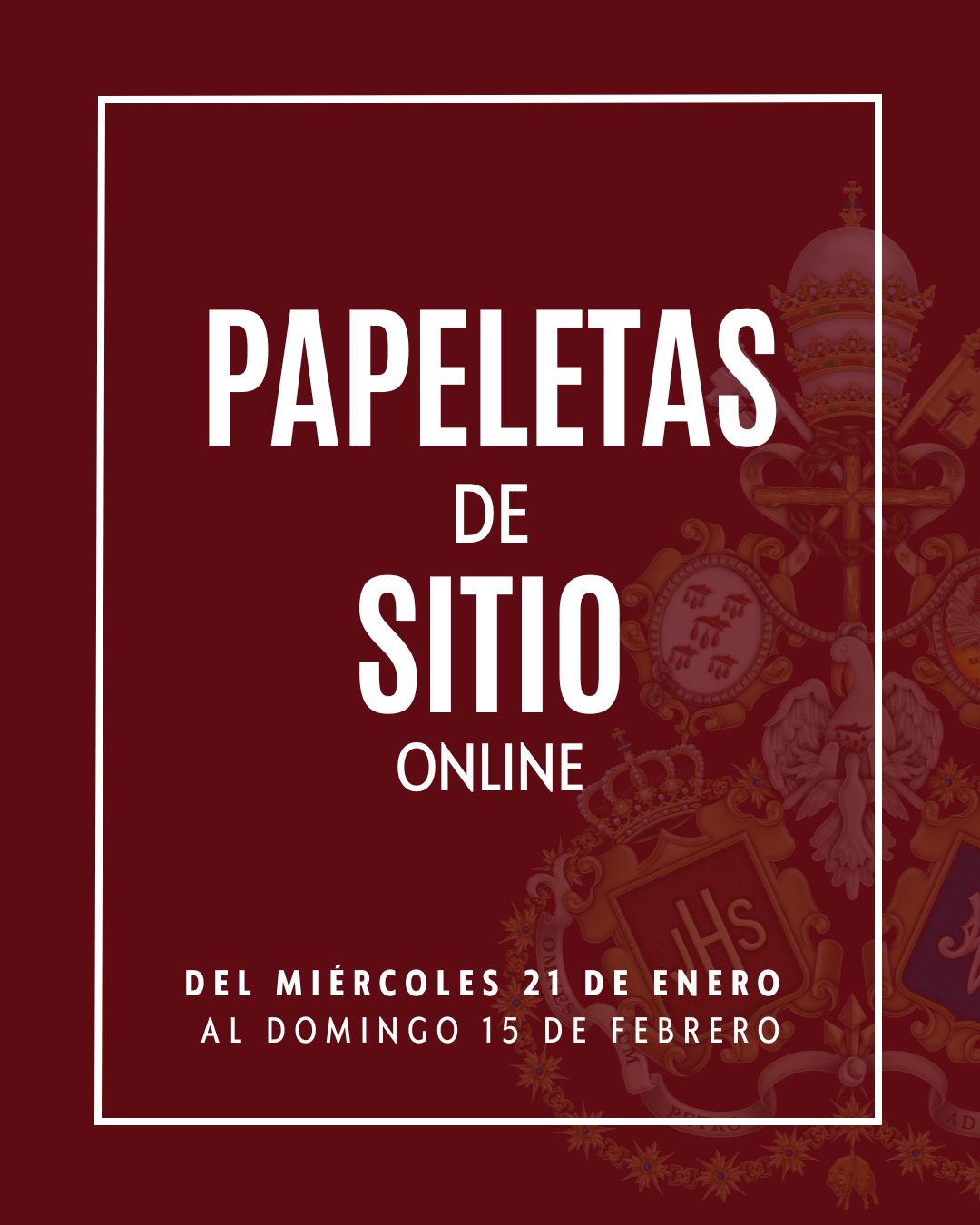 A partir del próximo miércoles 21 estará disponible en nuestra página web la solicitud de la papeleta de sitio para participar en la Estación de Penitencia del Domingo de Ramos.