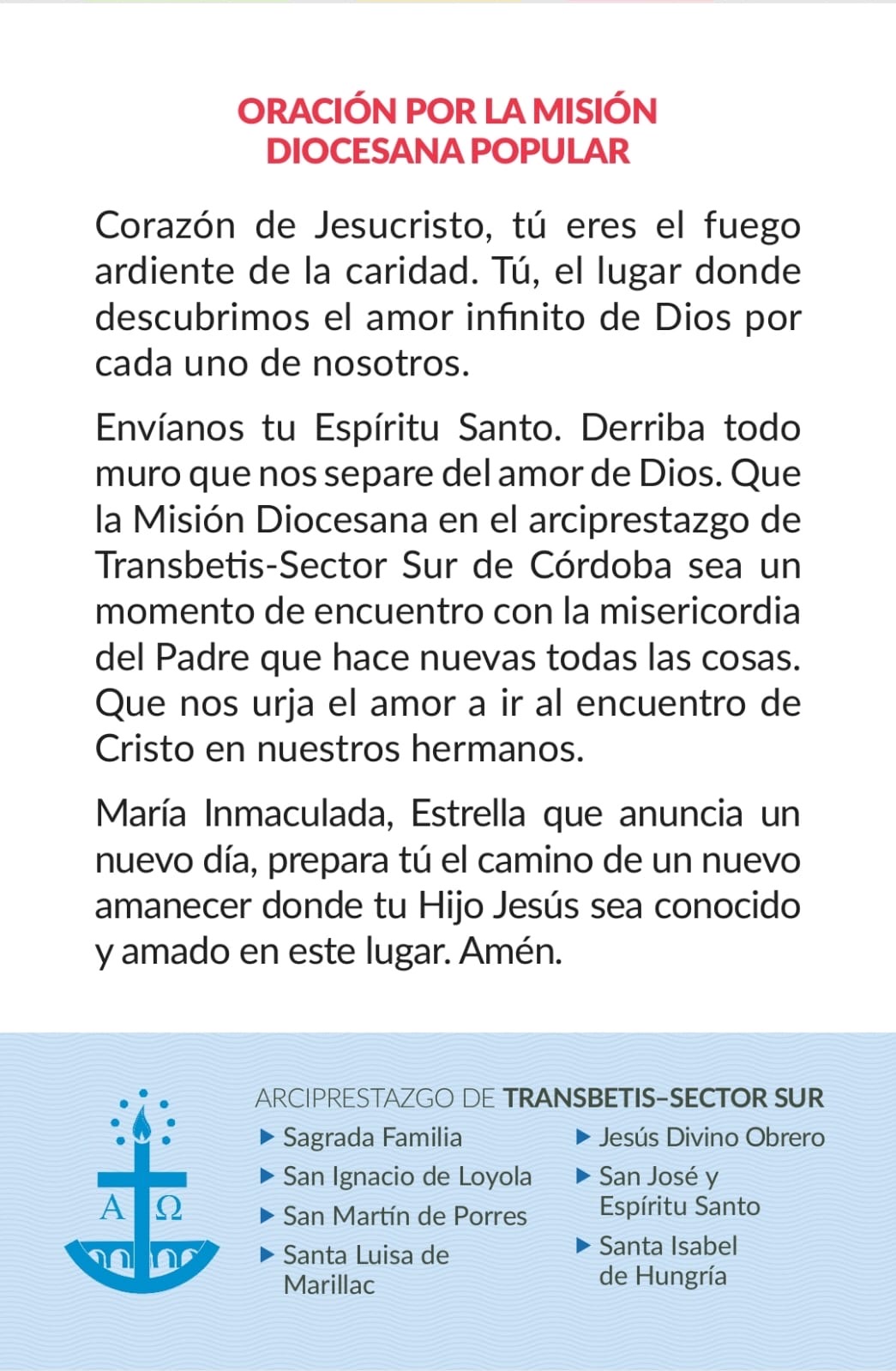 El domingo 16 de octubre celebramos la gloriosa Procesión de la Divina Pastora por las calles del Campo de la Verdad. La salida está prevista para las 12:30 horas, al finalizar la Misa dominical de 12:00. Este año el recorrido será principalmente por las calles del barrio antiguo, es decir, en el entorno de la Ermita del Santo Cristo. Así, tras bajar la rampa del Paseo Cristo del Descendimiento, seguirá por Avd Diputación, Jesús, Virrey Moya, Santo Cristo, Martín López, Espalda Santo Cristo, Bajada del Puente, Plaza Santa Teresa, Infante Don Juan Manuel, Batalla de los Piconeros, Avd Diputación, Paseo Cristo del Descendimiento. Mismo recorrido previsto para el año pasado pero que no pudo ser estrenado debido a la suspensión de la salida por la lluvia. Parece que este año sí podrá ser.
