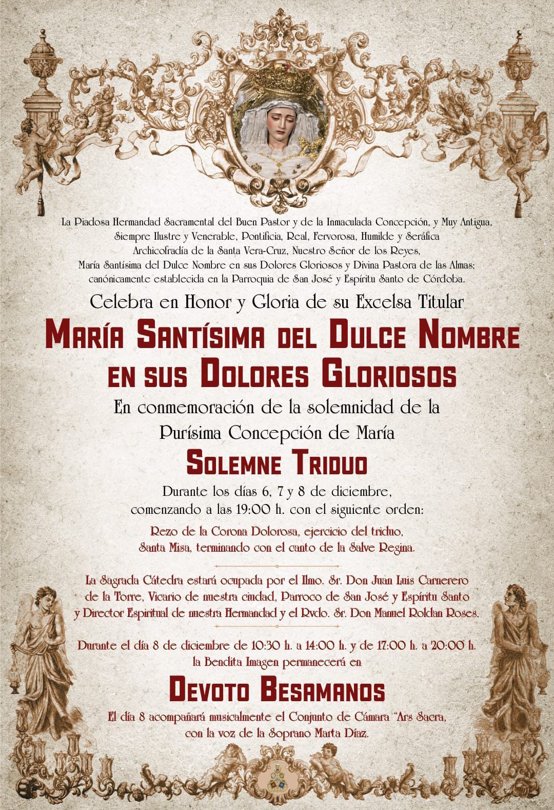 Solemne Triduo en honor a María Santísima del Dulce Nombre en sus Dolores Gloriosos los próximos días 6, 7 y 8 de diciembre.