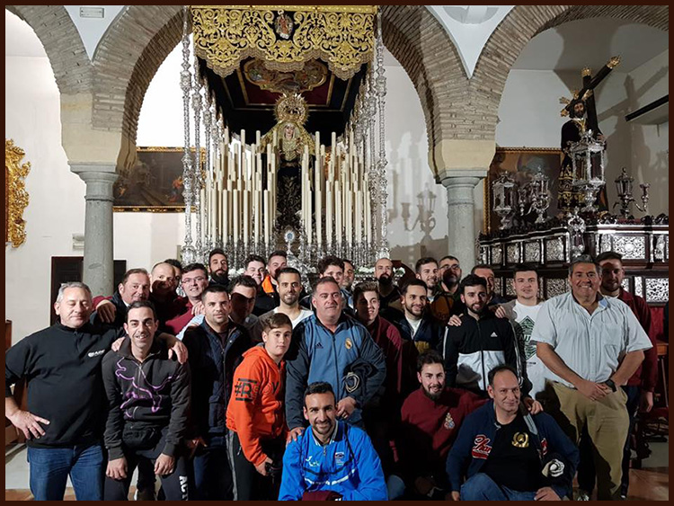 La Imagen de María Stma. del Dulce Nombre es portada por 35 costaleros Hermanos de la Archicofradía. Fue en el año 2000 cuando se fraguó la cuadrilla que hoy día pasea a Nuestra Bendita Madre cada Lunes Santo. Es una cuadrilla que se va consolidando año tras año, y que tiene desde sus comienzos a Carlos Herencia Lastre como capataz, auxiliado por José Luís Rodríguez Alarcón, Antonio Rafael Beltrán Aguilar y Manuel de Dios Montero.