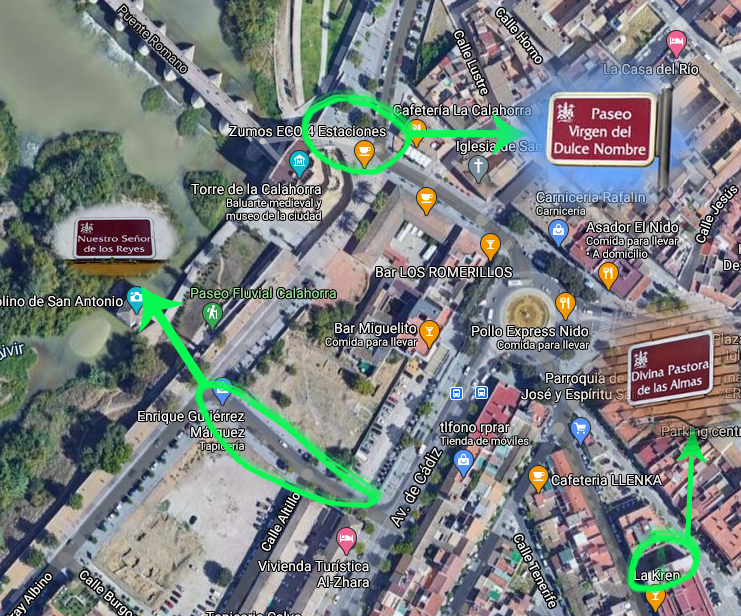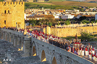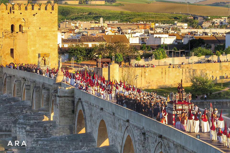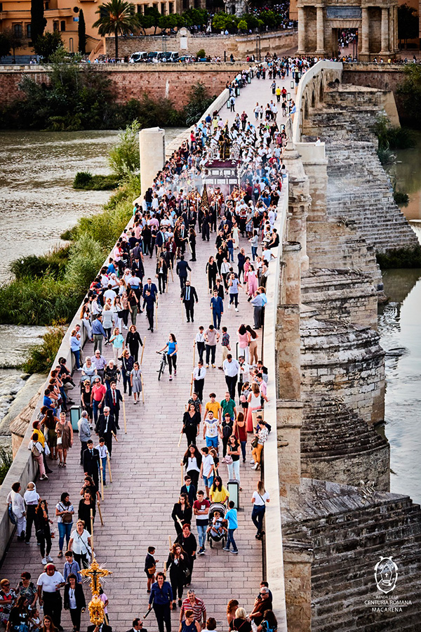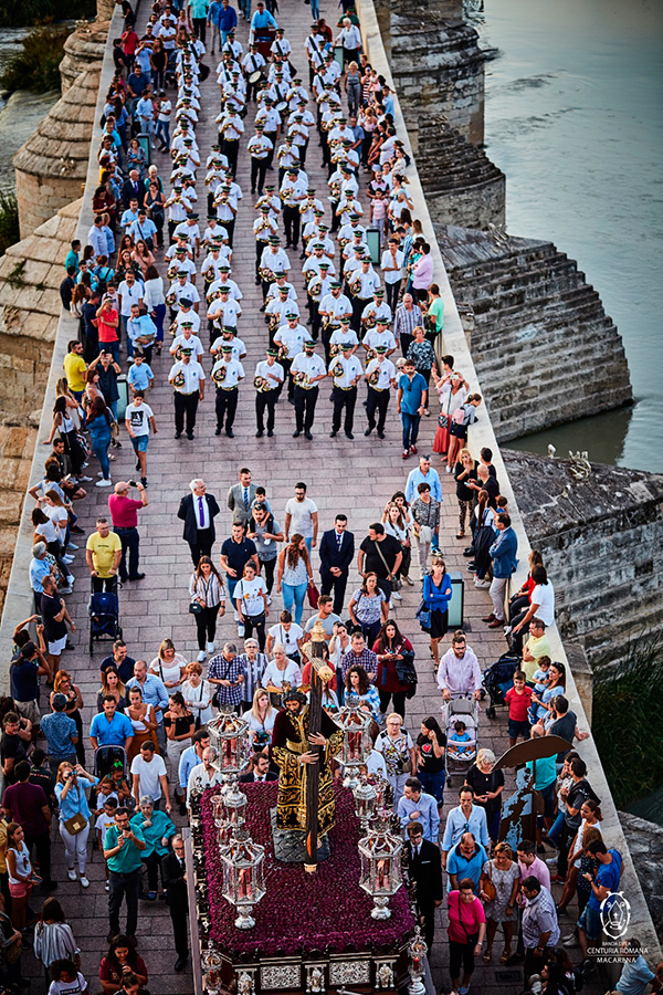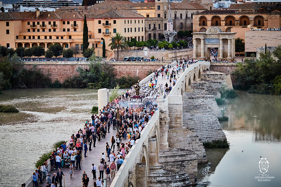 Entre estas referencias, destaca en la parte superior izquierda la representación de Nuestro Señor de los Reyes cruzando el Puente Romano.