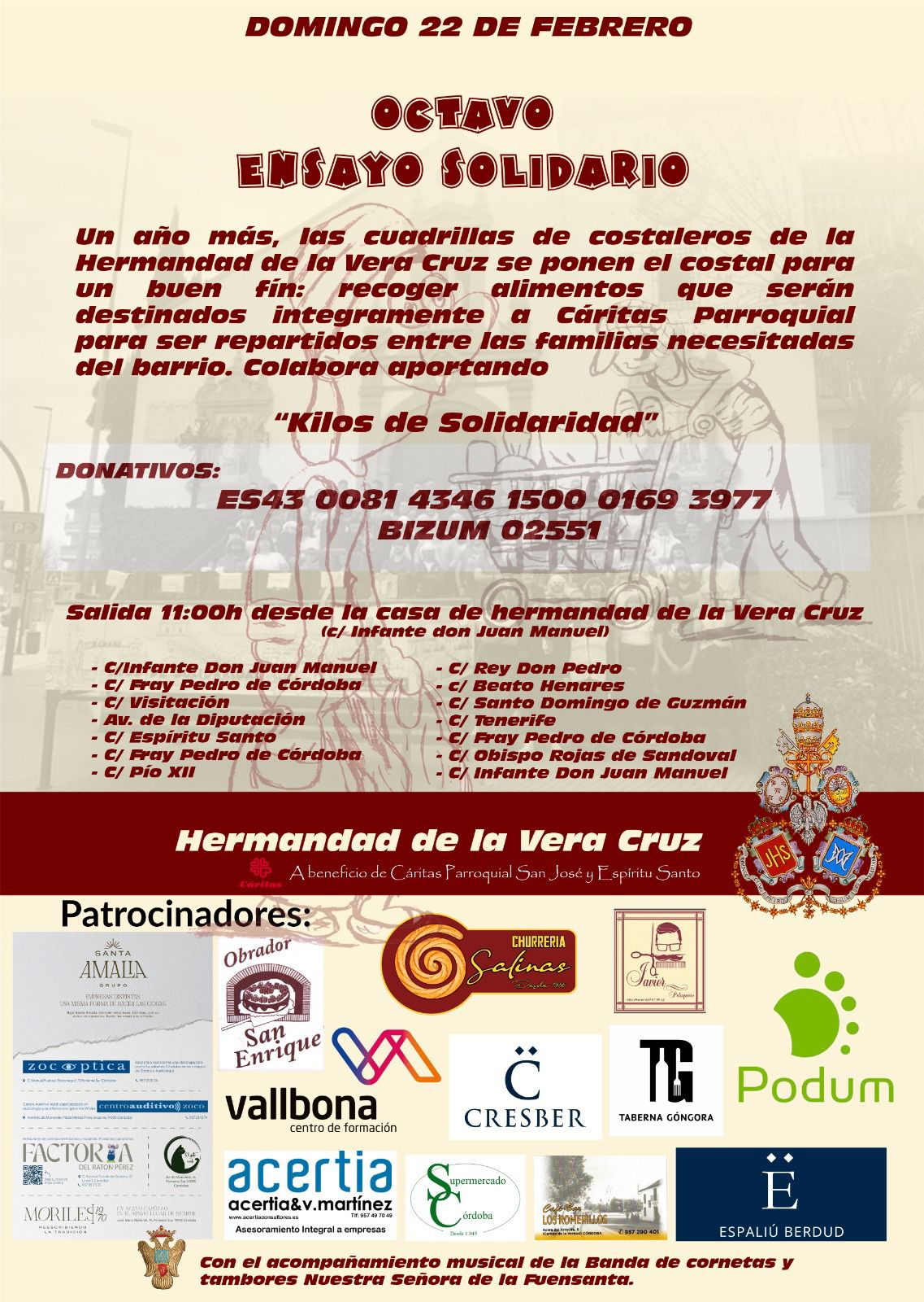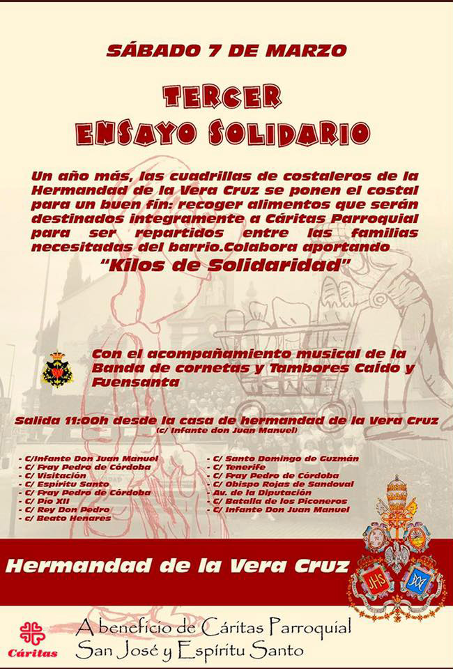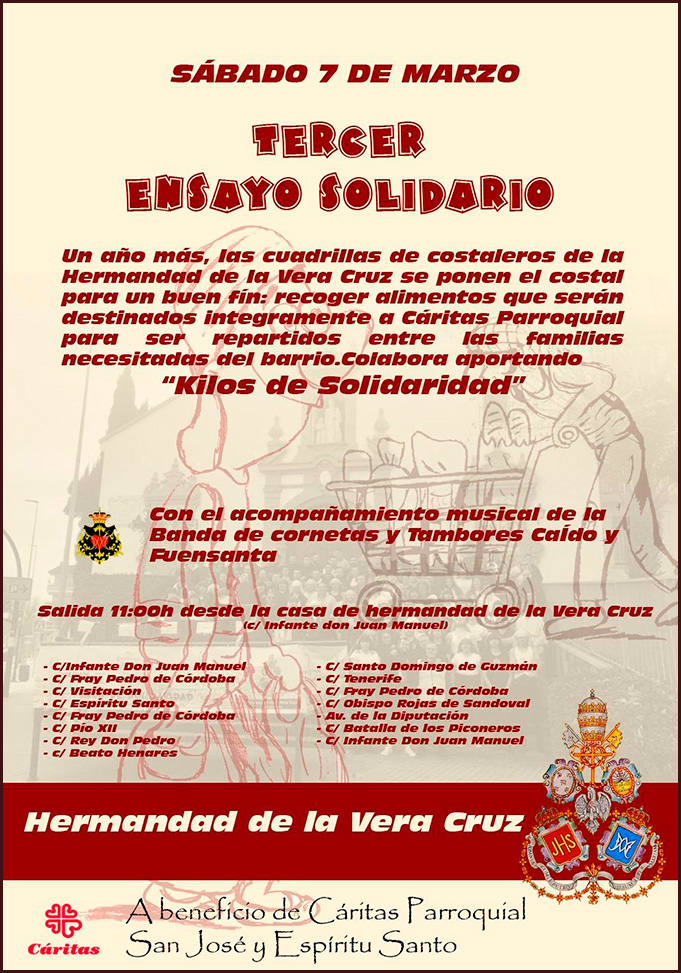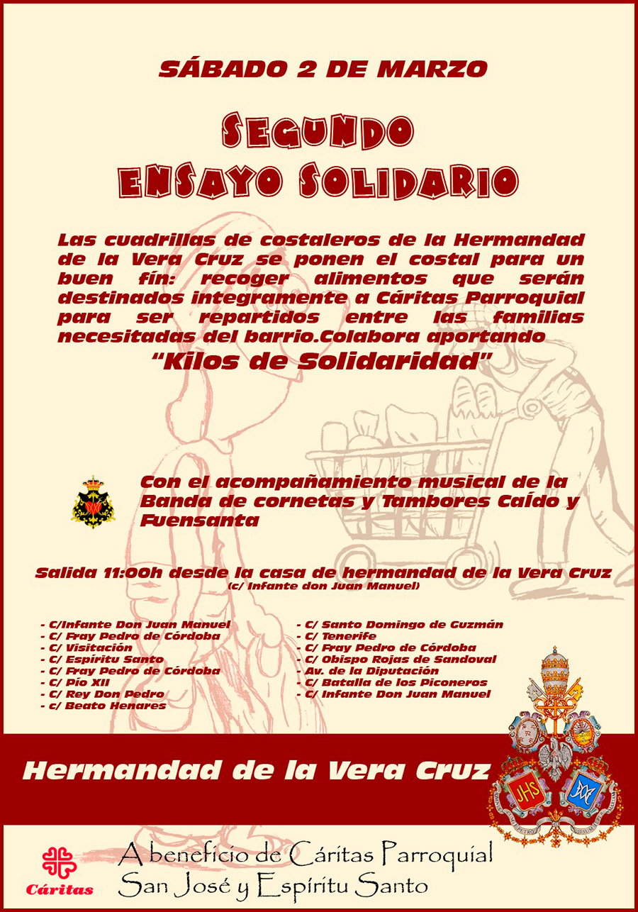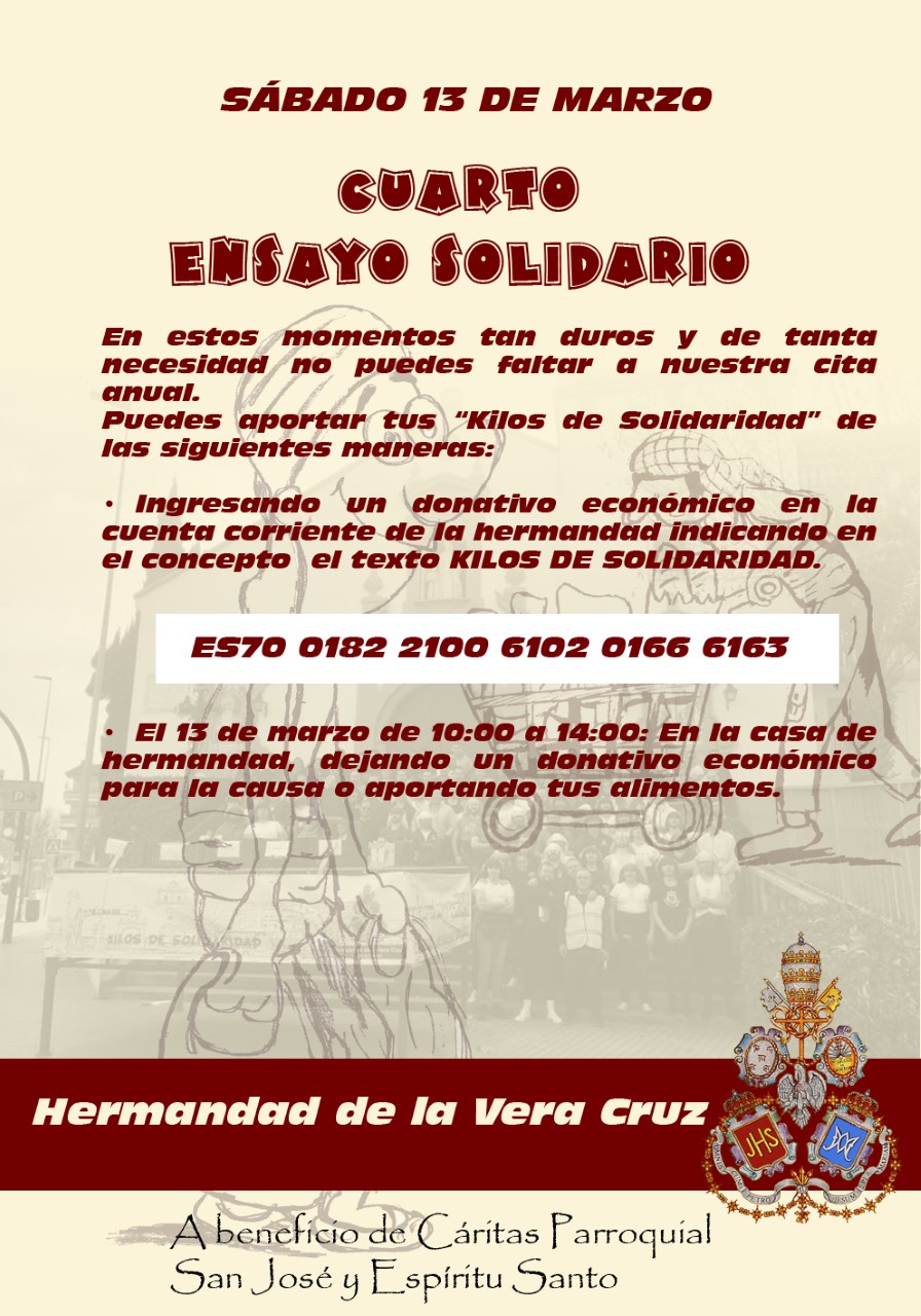 El próximo domingo 22 de febrero celebraremos con gran ilusión el VIII Ensayo Solidario, una jornada fraterna y comprometida organizada a beneficio de la Cáritas Parroquial, cuya labor solidaria sostiene a tantas familias de nuestra comunidad.
