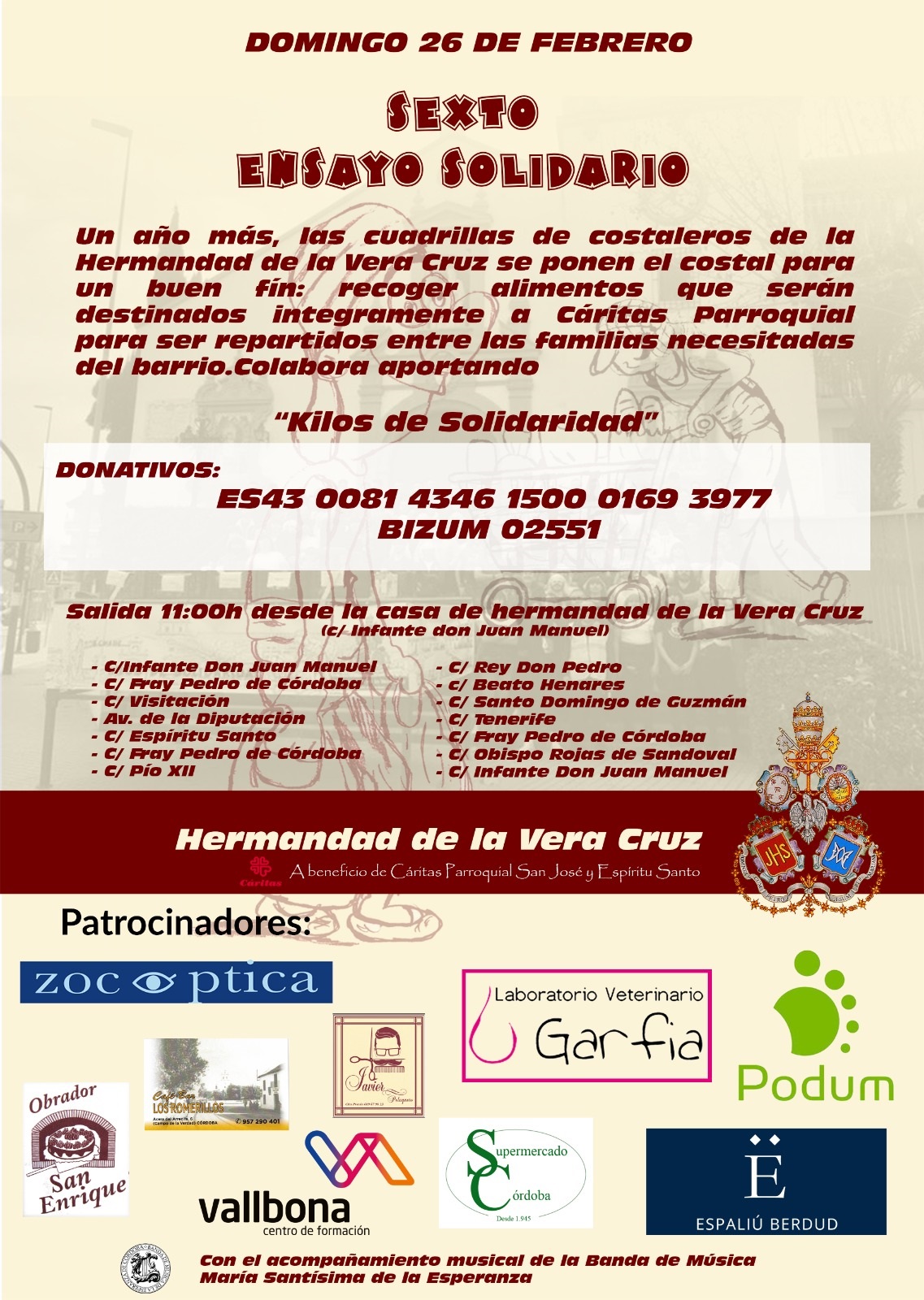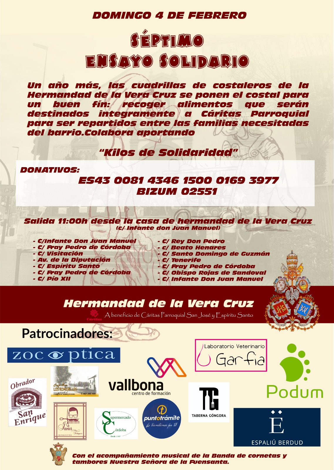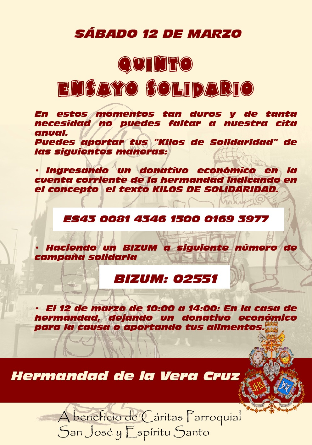 Invitamos a todos los vecinos, cofrades y devotos a participar y colaborar con esta iniciativa, aportando alimentos no perecederos o donativos que serán destinados íntegramente a quienes más lo necesitan. Juntos, un año más, haremos del ensayo un gesto de esperanza y caridad.