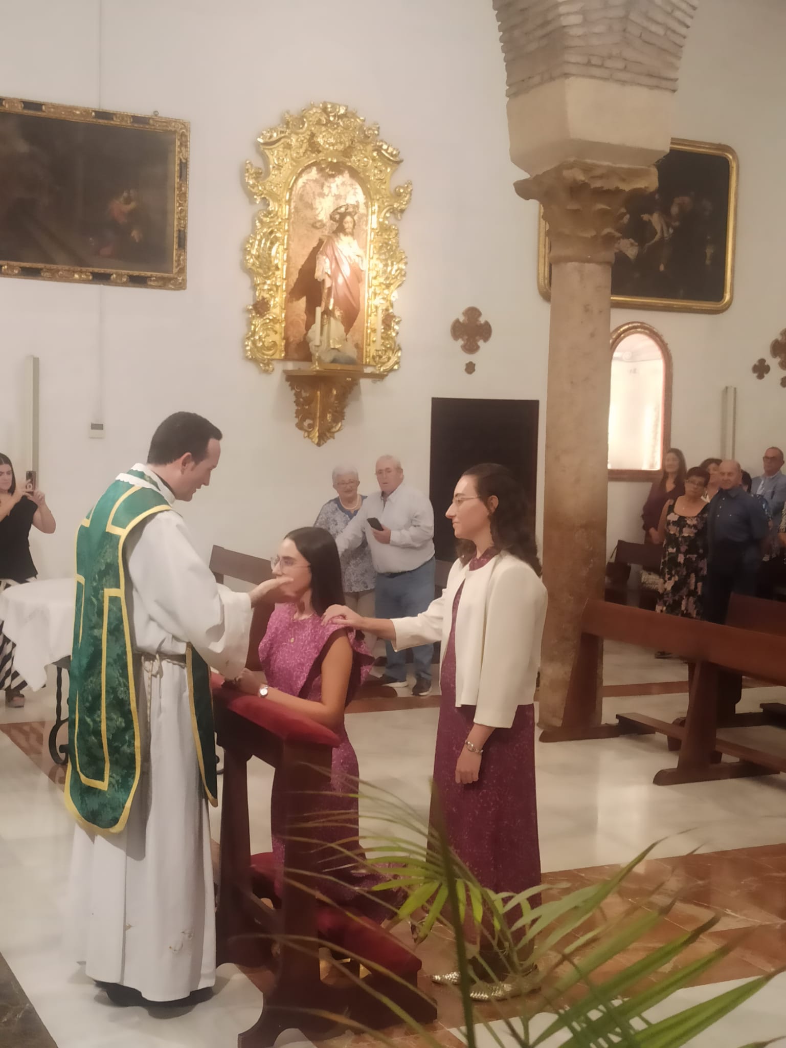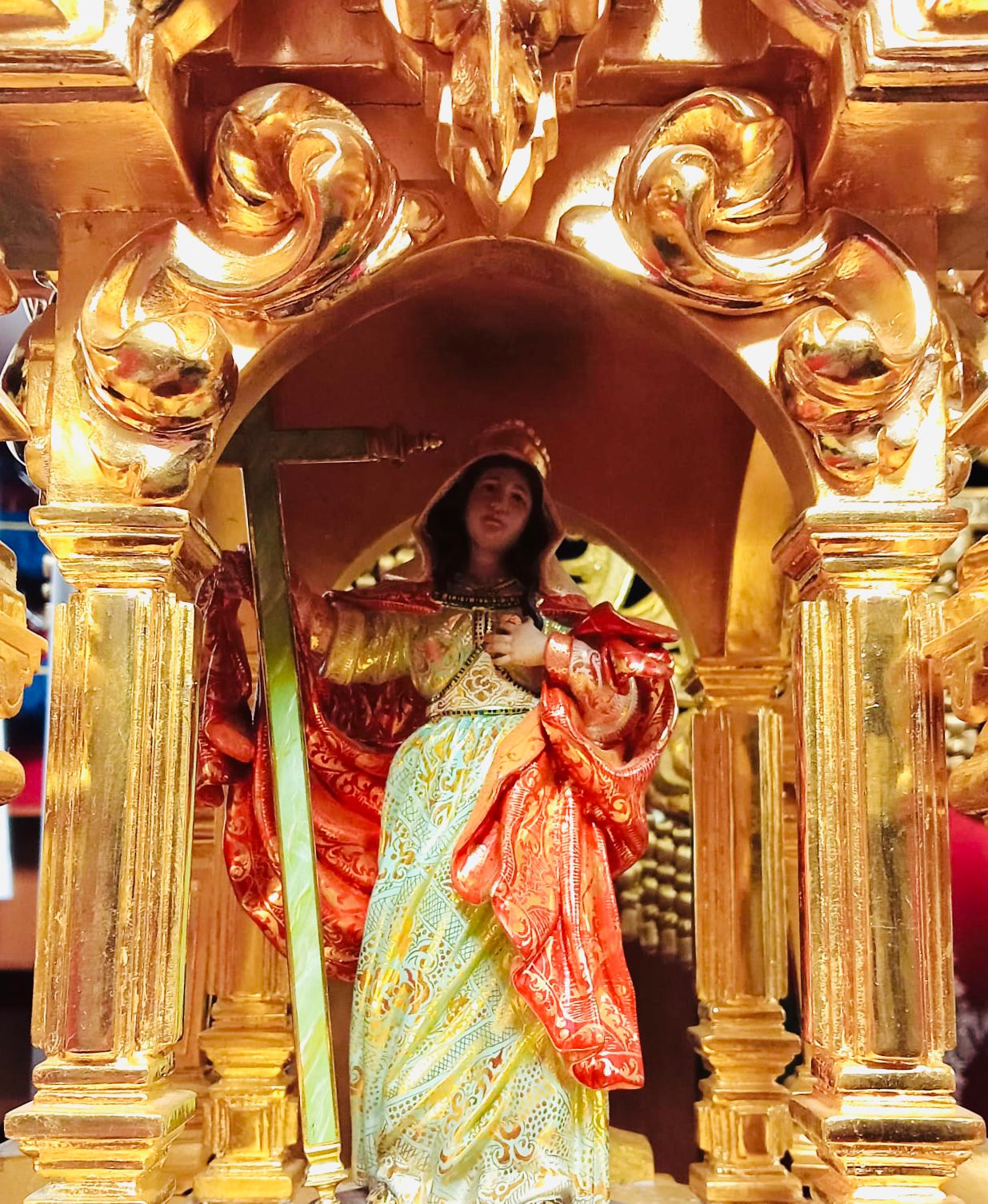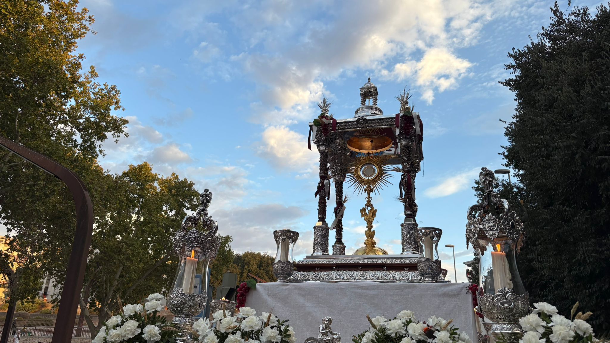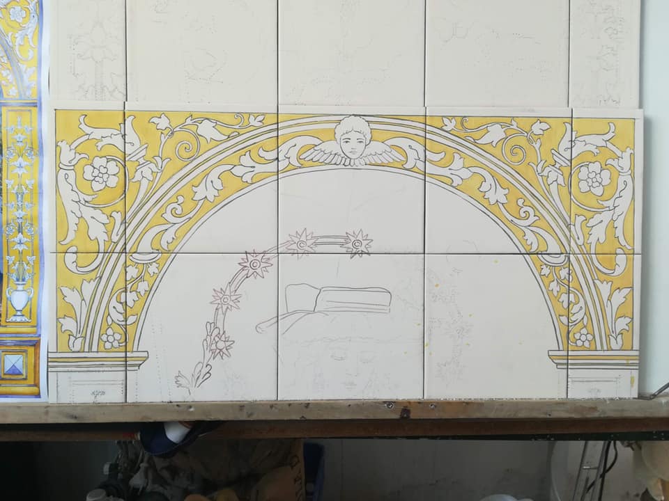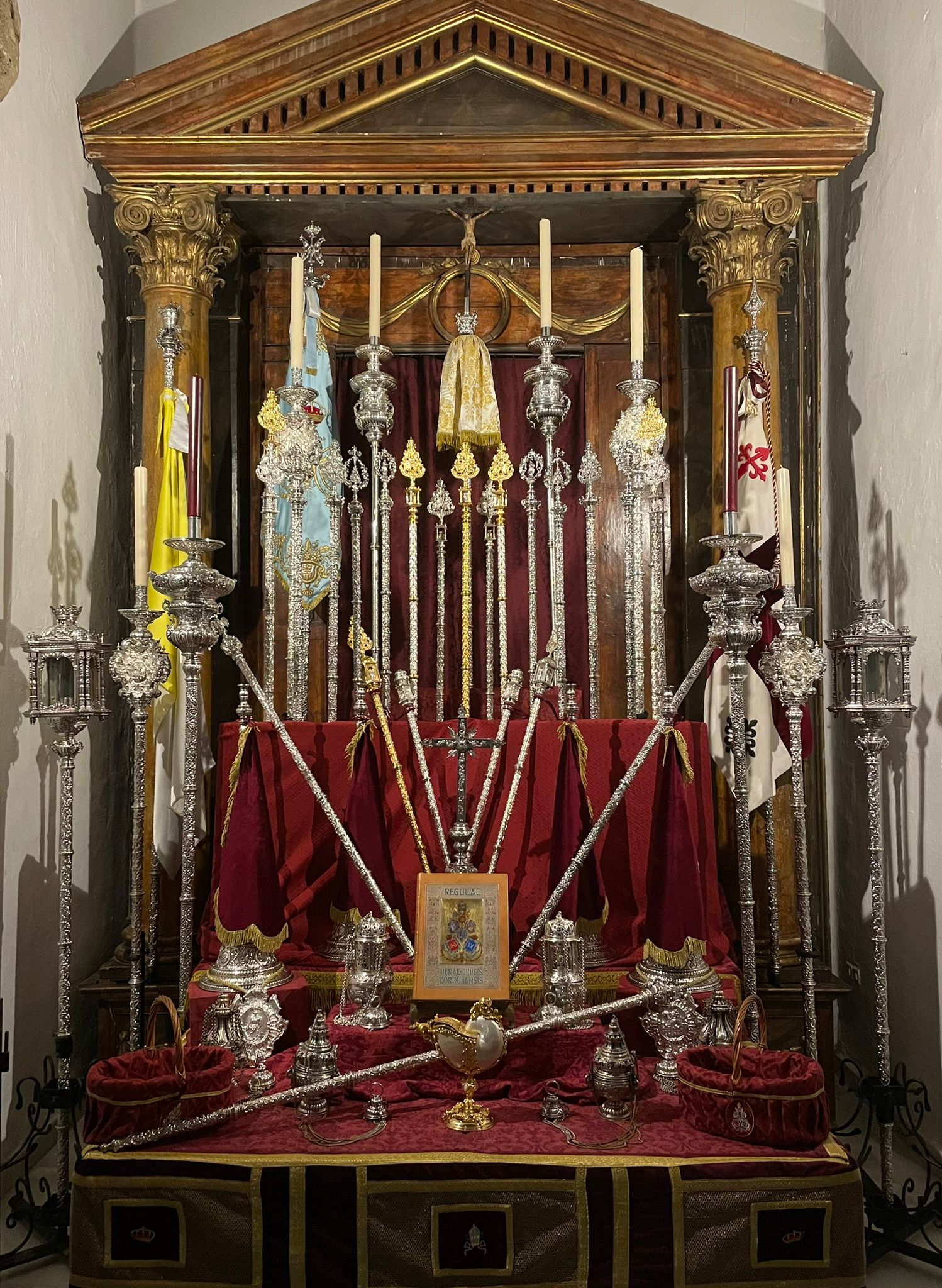 Como principal novedad, se incorporan nuevos elementos decorativos realizados por N.H.D. Julio Cachinero. Estas piezas comprenden el remate del dosel, concebido para aportar mayor elevación y sentido simbólico al conjunto, así como dos tondos ornamentales que enmarcan y equilibran la composición del altar.