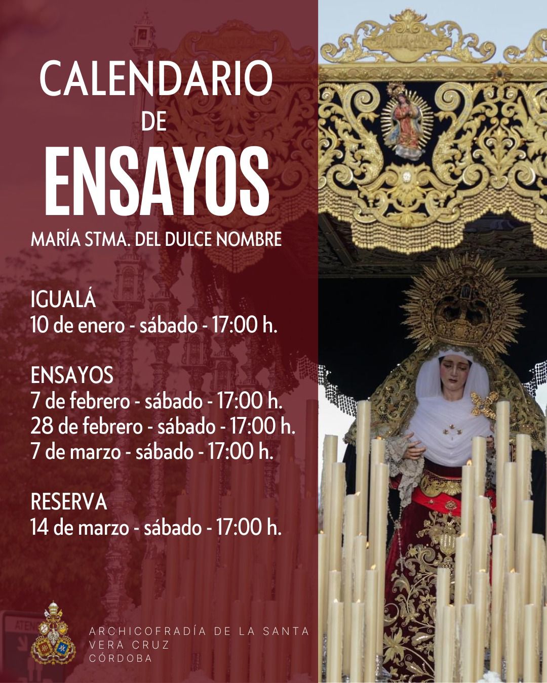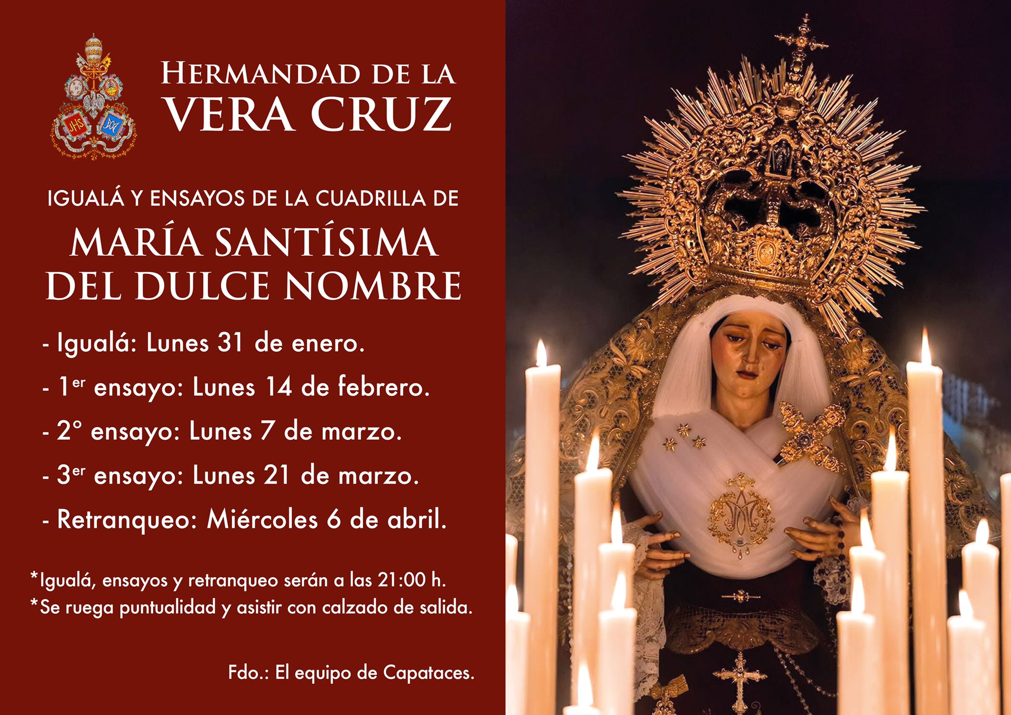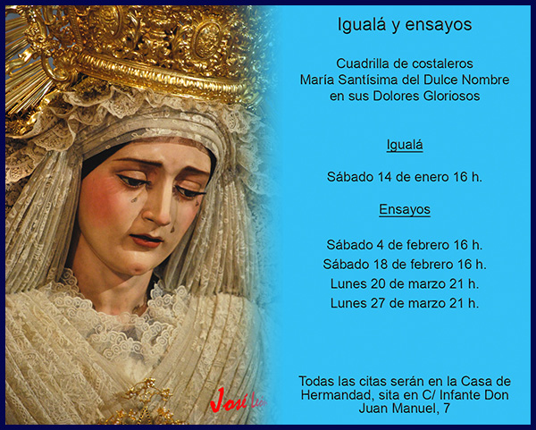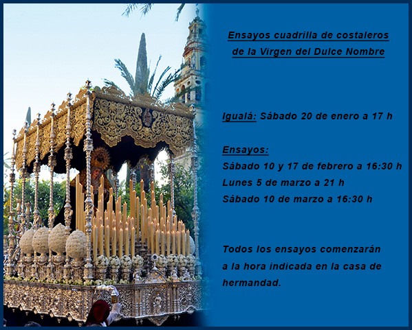 CALENDARIO DE ENSAYOS DE LAS CUADRILLAS DE COSTALEROS.