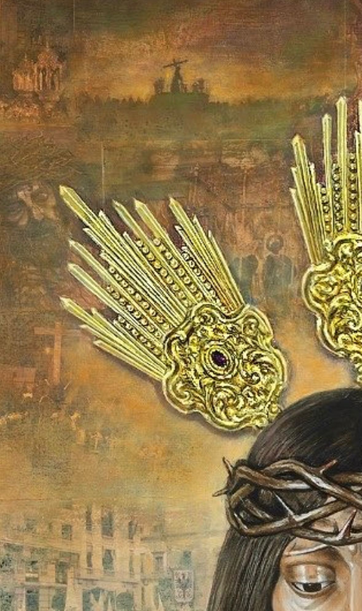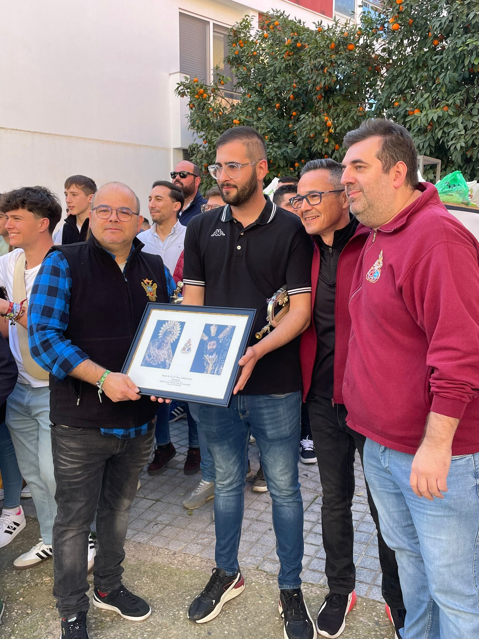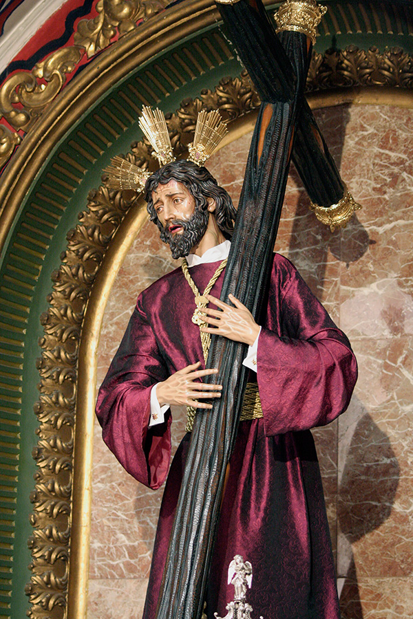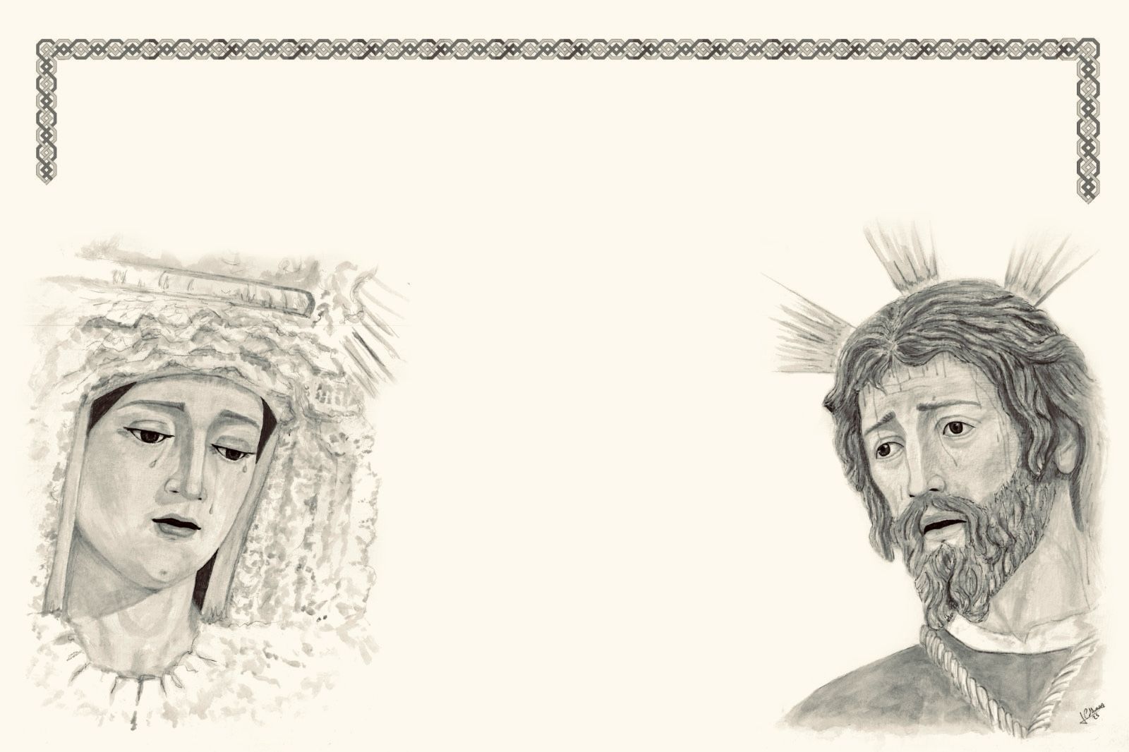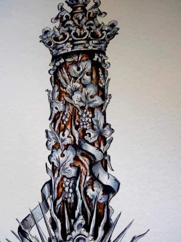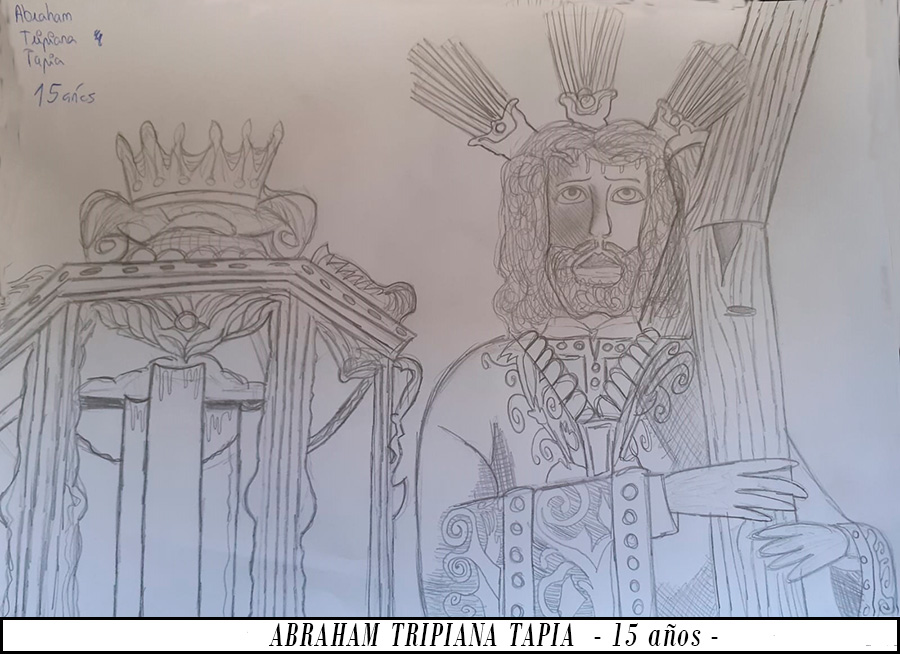 La obra refleja el espíritu de nuestra Estación de Penitencia, representando un Nazareno y una esclavina como símbolo de la savia nueva de la Hermandad, esa nueva generación de hermanos que, con ilusión renovada, vienen a dar continuidad al legado recibido, aportando vida, compromiso y futuro a nuestra corporación. Junto a ellos, aparece el azulejo corporativo situado en el lateral de nuestra parroquia.
