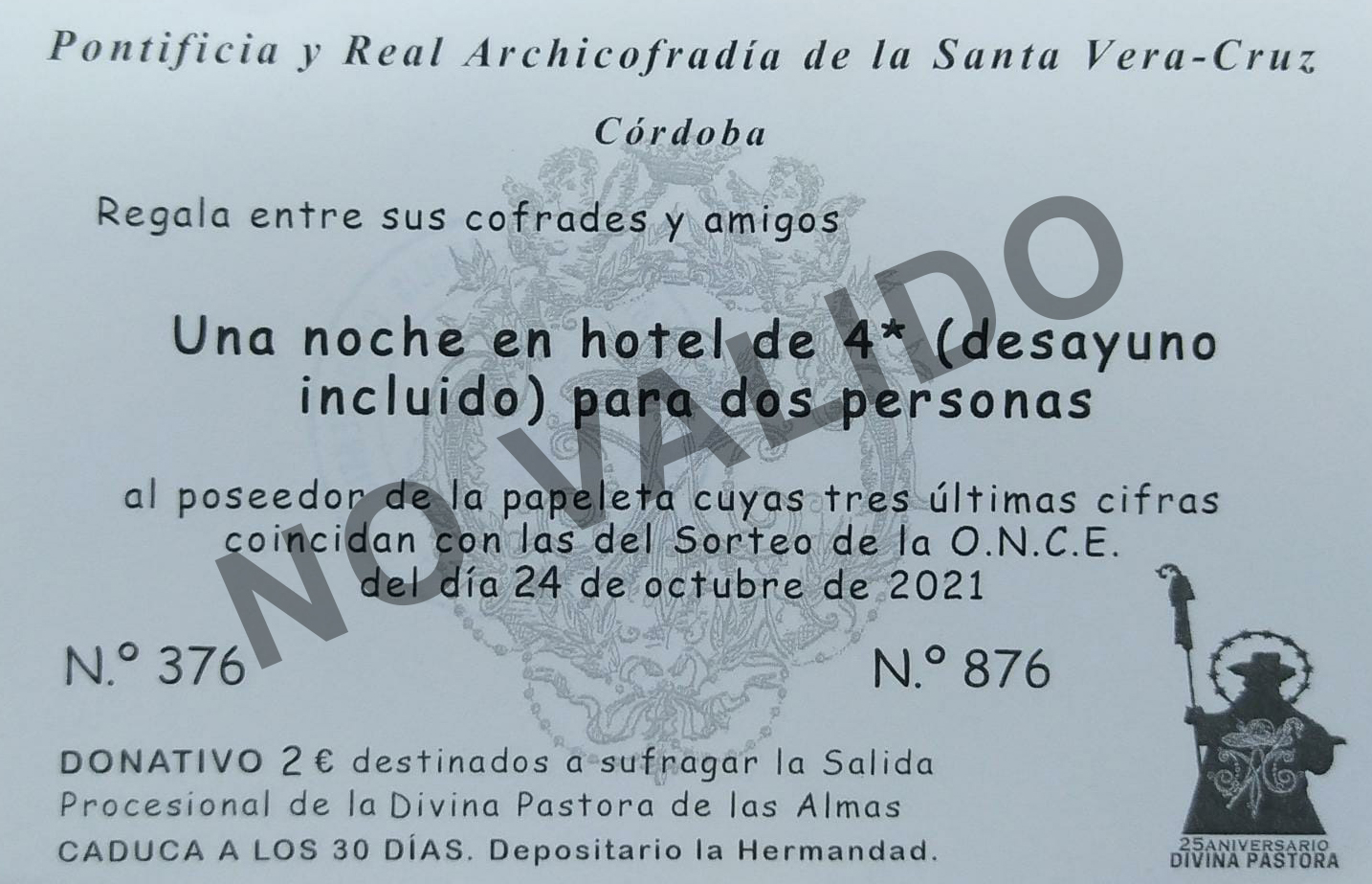 Además, se están encargando de la venta de participaciones para un sorteo de dos noches de hotel para dos personas. El precio de la papeleta es de 2 euros, y este donativo será destinado a sufragar la salida procesional de la Divina Pastora.