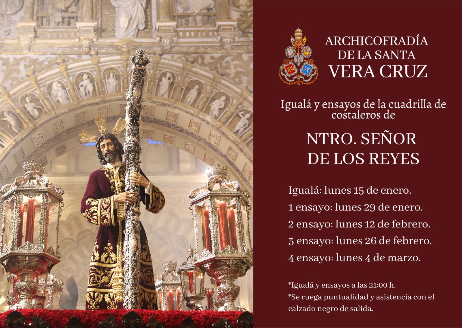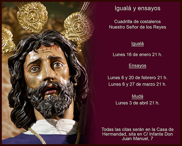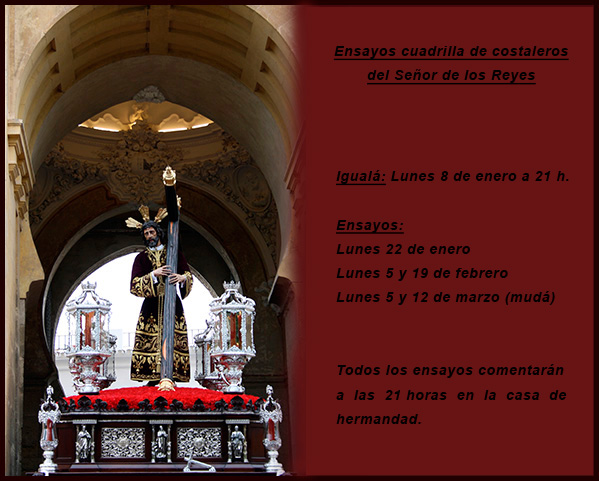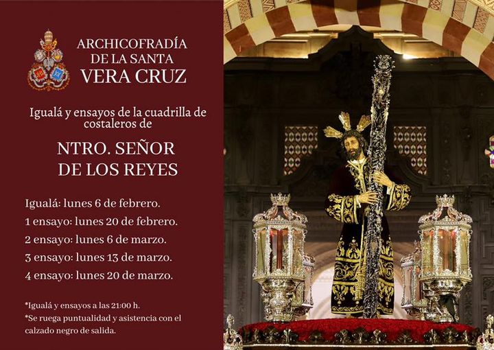 En la tarde de ayer tuvo lugar la igualá de costaleros de Nuestro Señor de los Reyes. Que Él vele por las intenciones de quienes tendrán el honor de ser sus pies el próximo Domingo de Ramos.