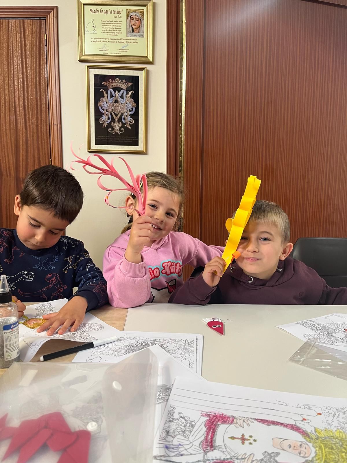 En la mañana de hoy hemos tenido la alegría de compartir un bonito encuentro con los más pequeños del colegio de Nuestra Señora de la Piedad. Durante la jornada hemos realizado un taller de manualidades en el que los niños y niñas han podido desarrollar su creatividad mientras se acercaban, de una forma sencilla y divertida, a la Semana Santa.