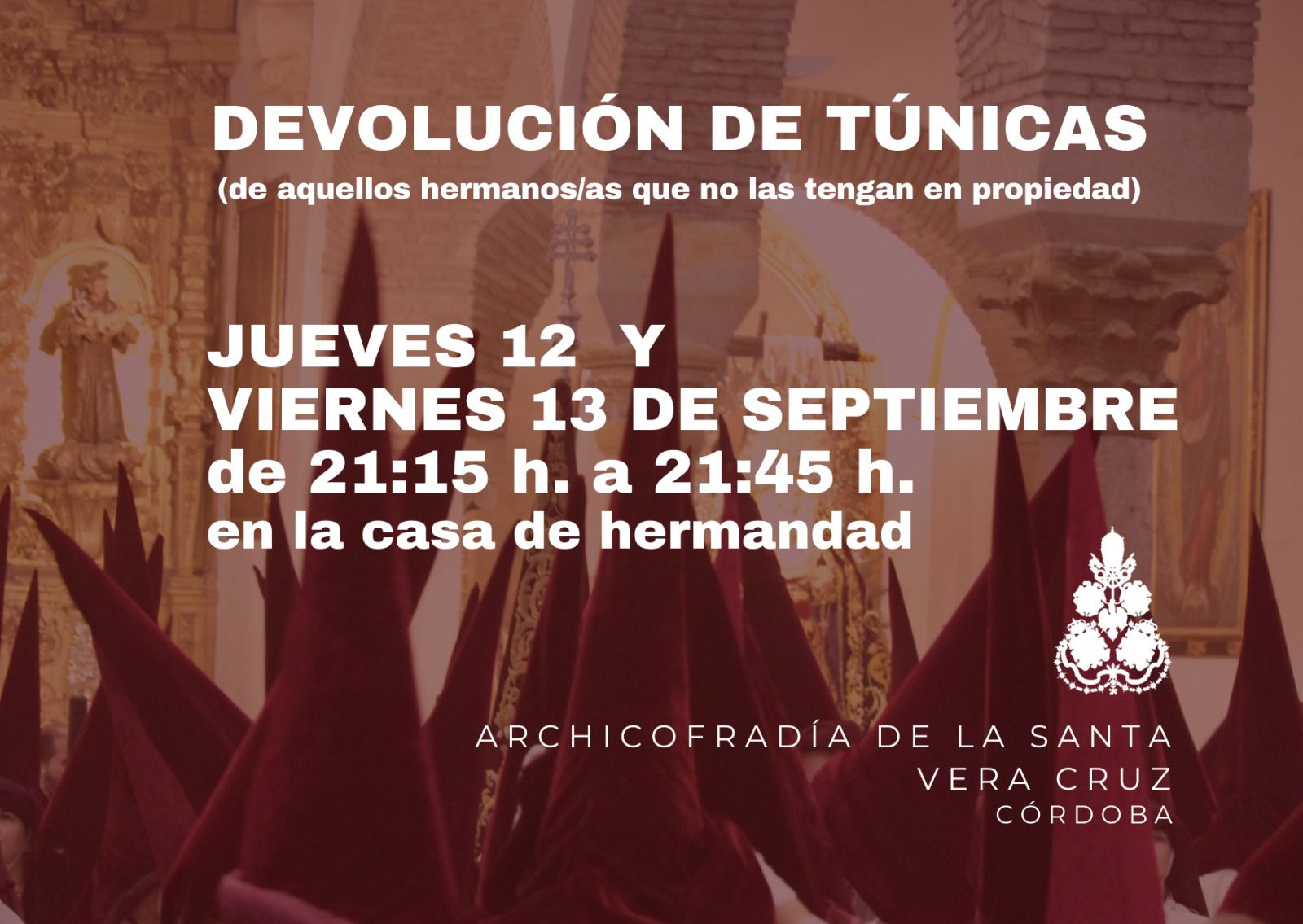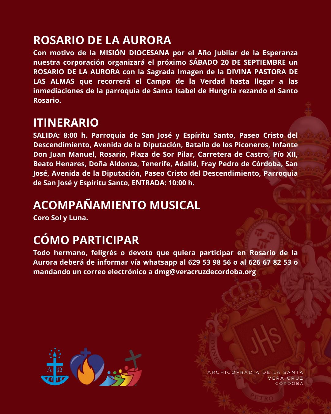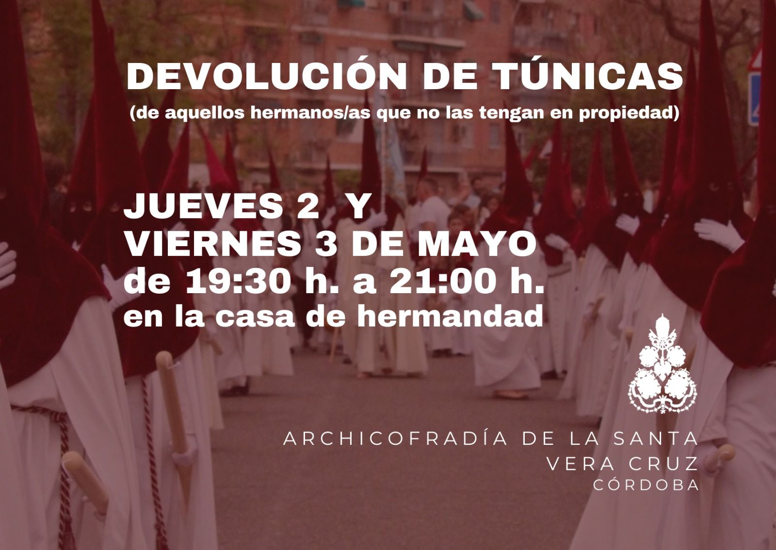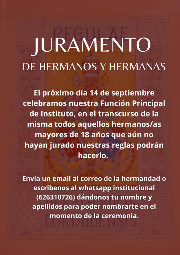 Rogamos a todos los hermanos que deseen participar que formalicen su solicitud dentro del plazo establecido, a fin de facilitar la correcta organización de la cofradía.