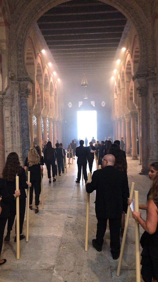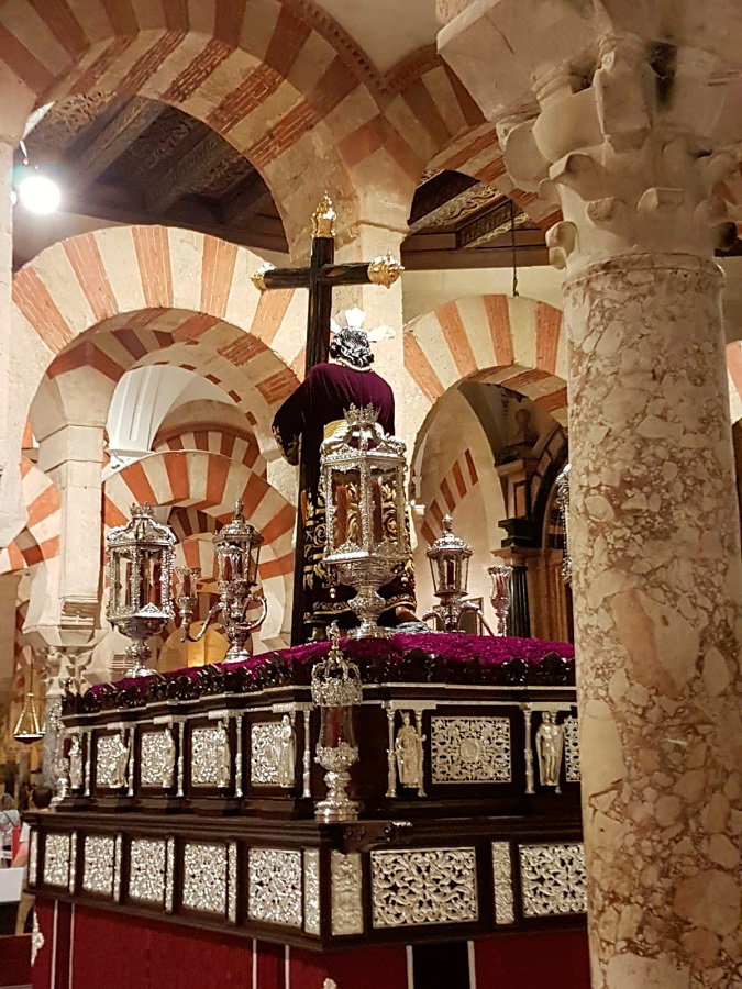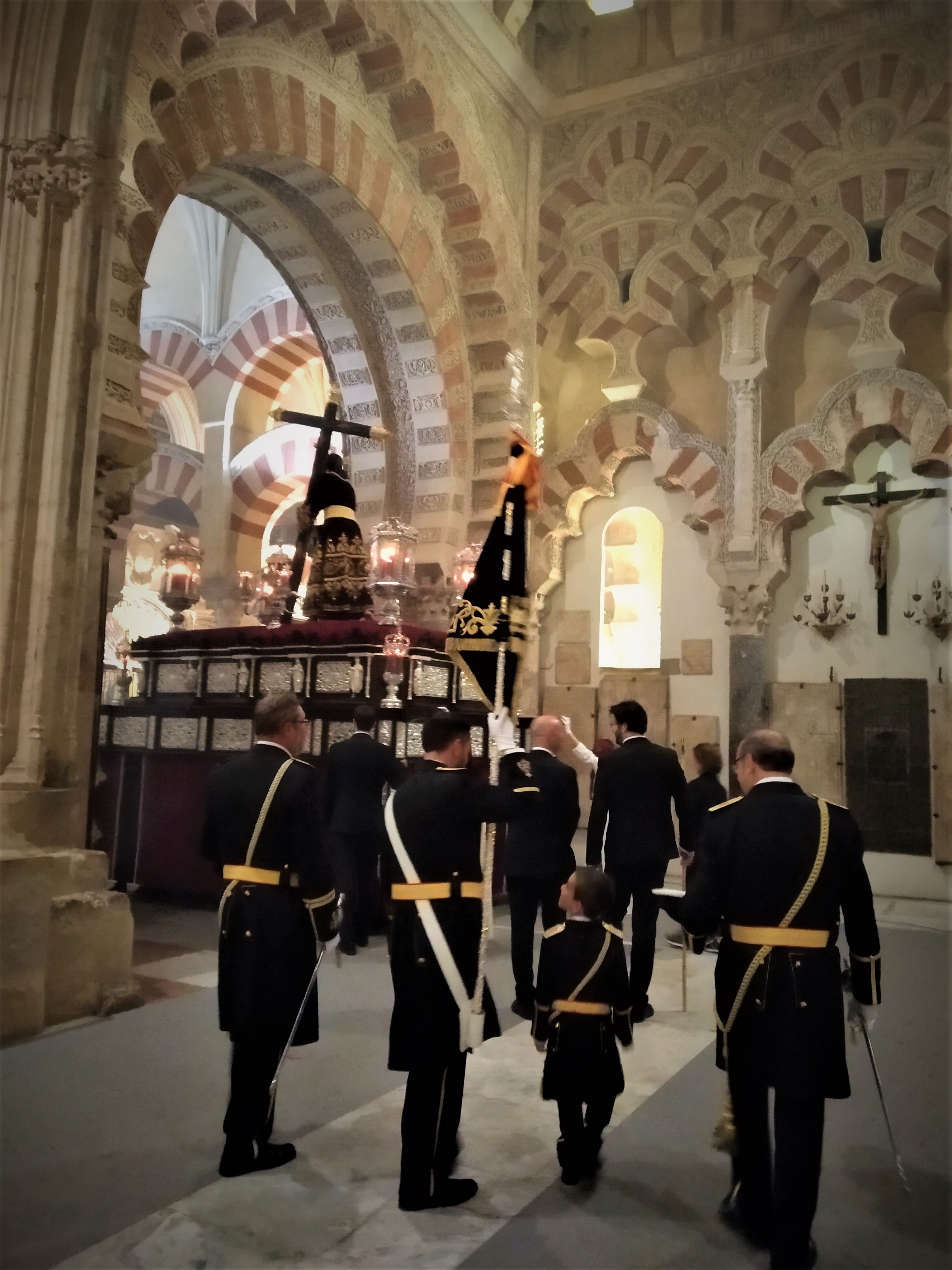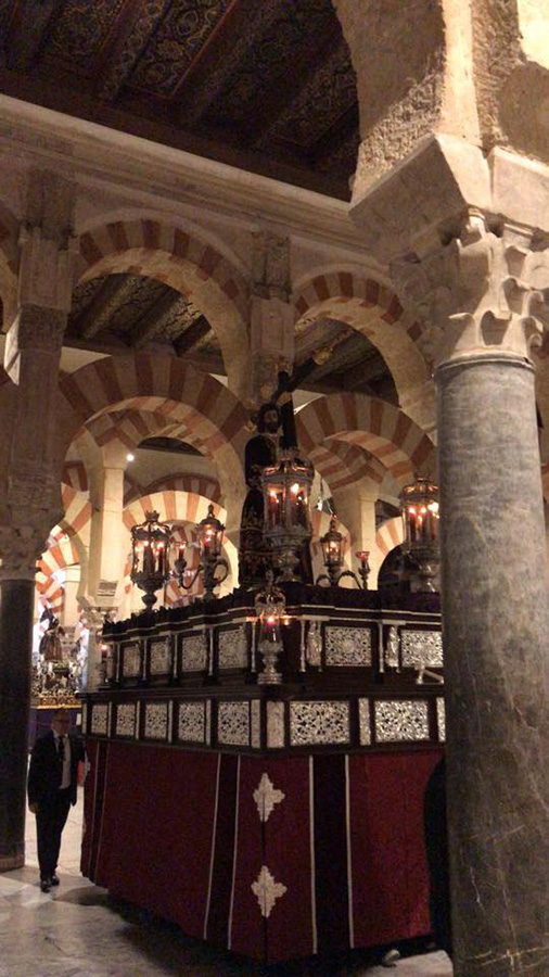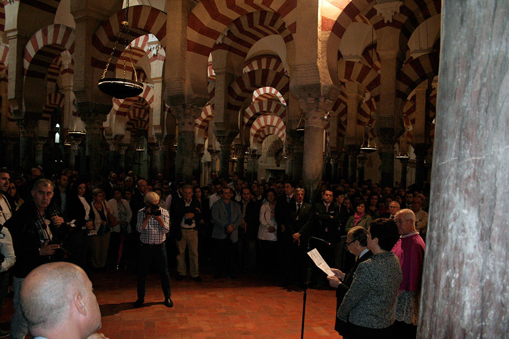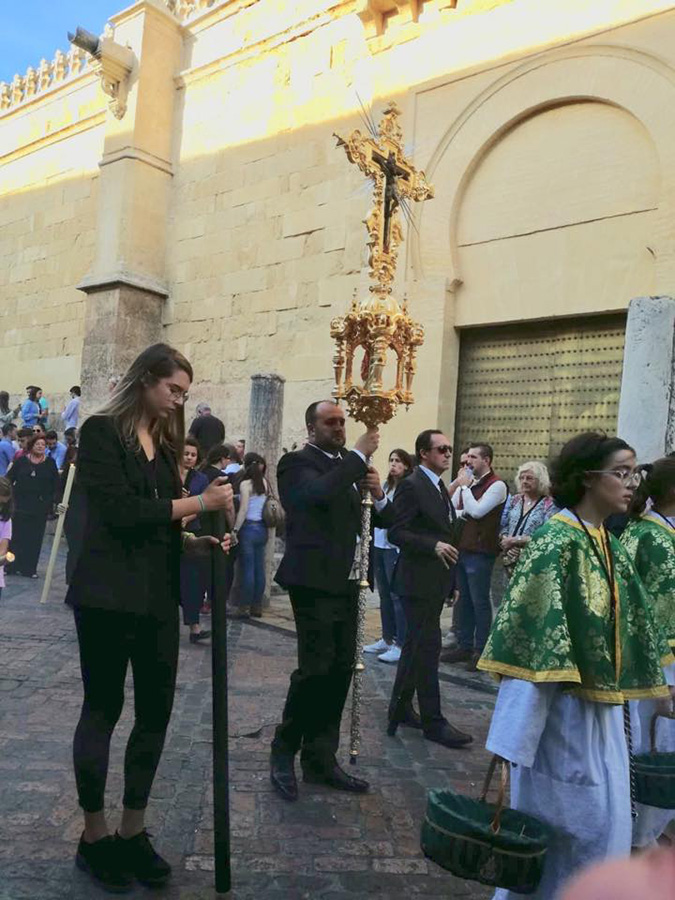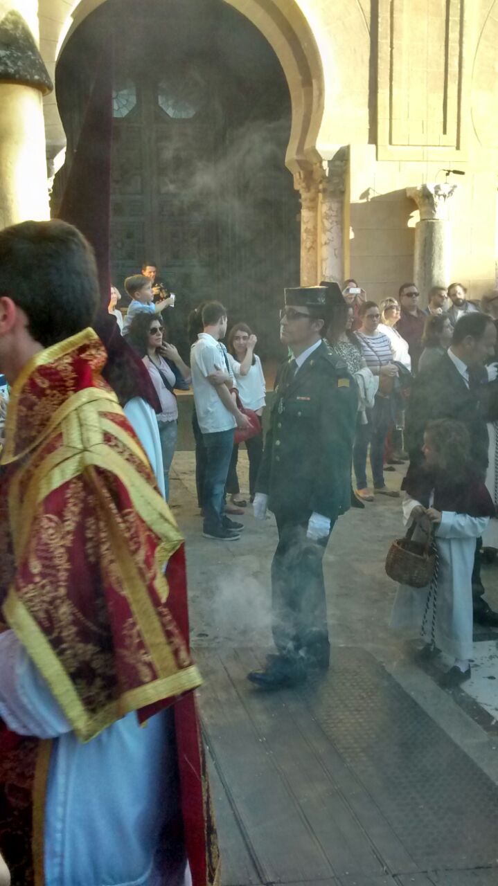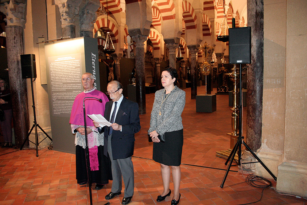 El pasado domingo 23 de octubre inauguramos en la Santa Iglesia Catedral la Exposición 'Eterna es Su Misericordia: la Vera-Cruz en la Diócesis de Córdoba'. La misma corrió a cargo del Comisario de la Exposición don Rafael Mariscal, de nuestra Hermana Mayor doña Salud Aguilar y de nuestro director espiritual y en representación del señor Obispo de la Diócesis, don Pedro Soldado. Asistimos todas la Cofradías de la Vera-Cruz participantes en el histórico momento, y pudimos apreciar la magestuosidad de contemplar a los Titulares de las diversas Cofradías de la Vera-Cruz de nuestra Diócesis en un mismo espacio, que no es otro que la grandeza de las naves del Conjunto Monumental Mezquita-Catedral de Córdoba.