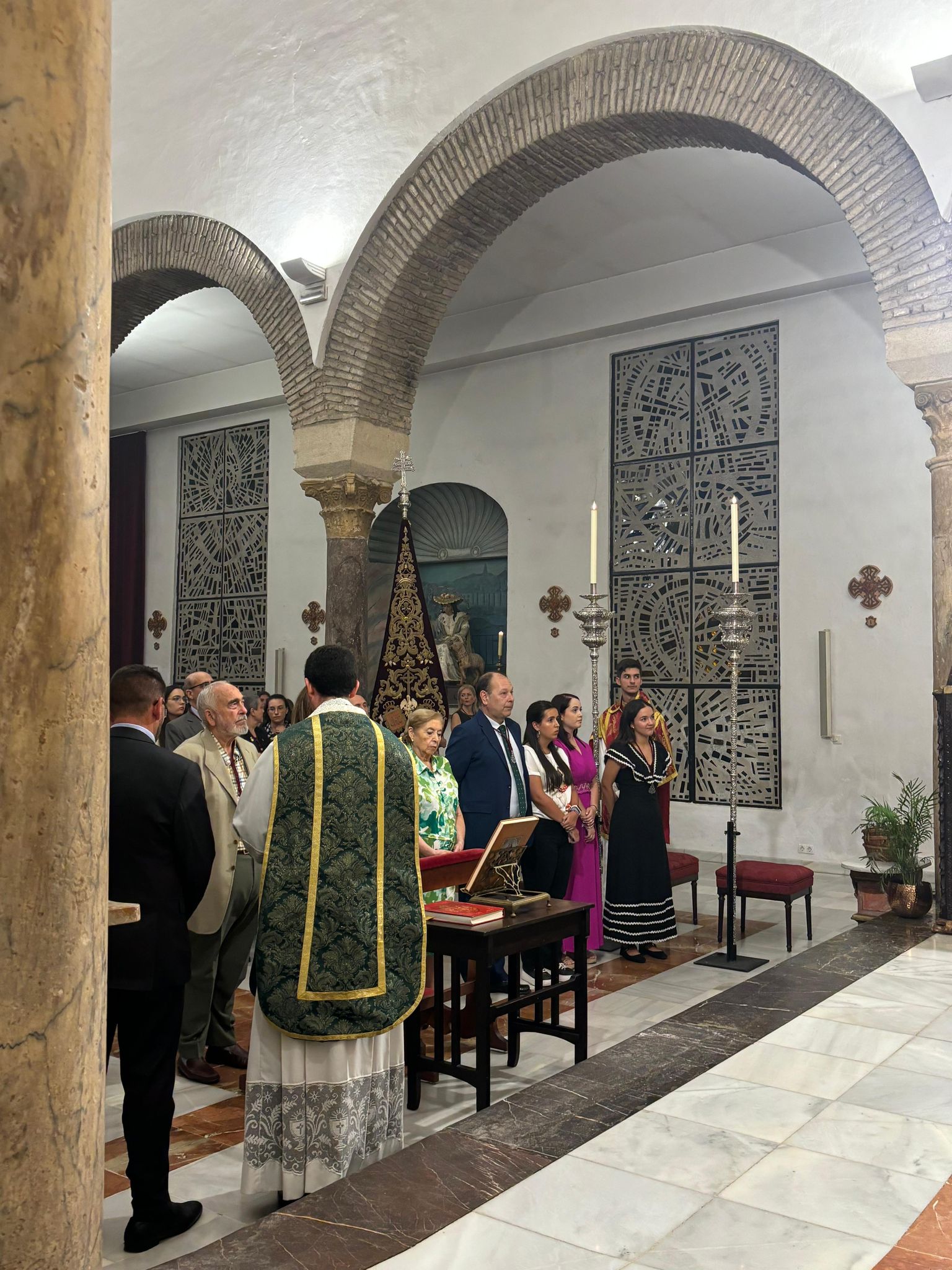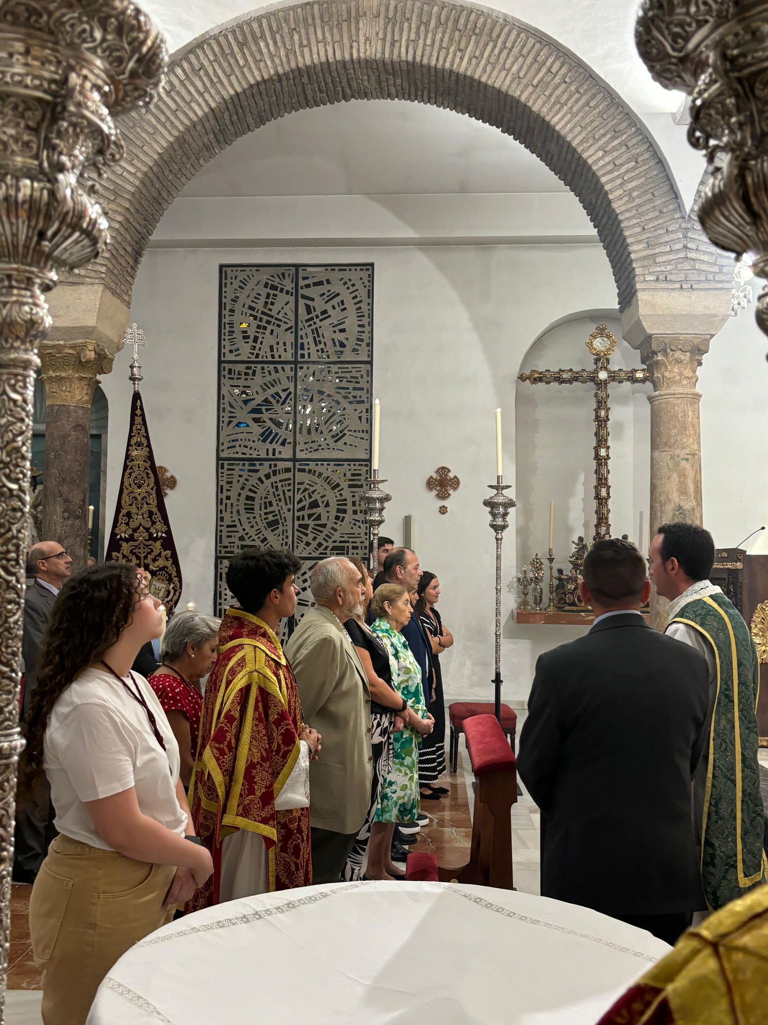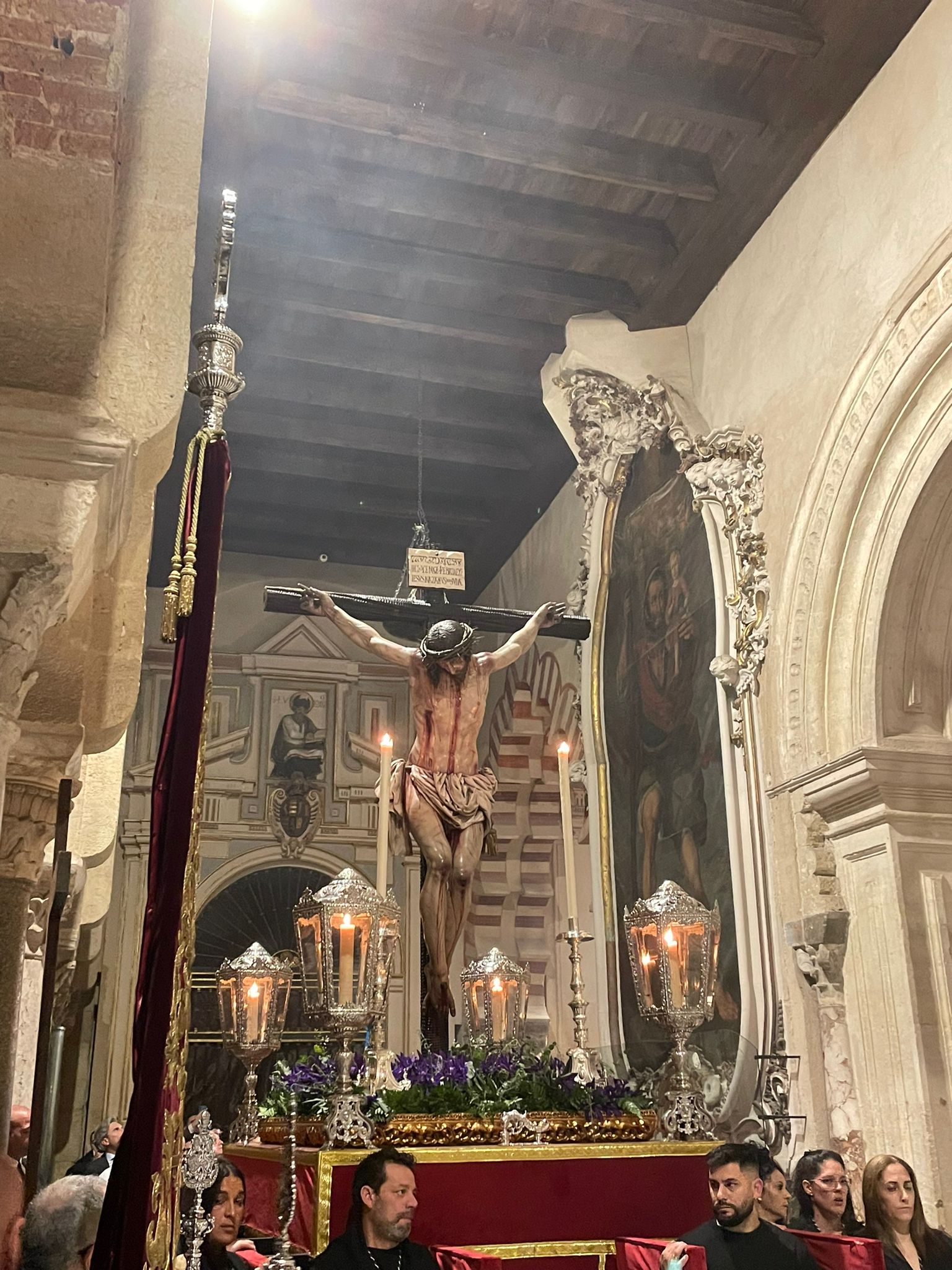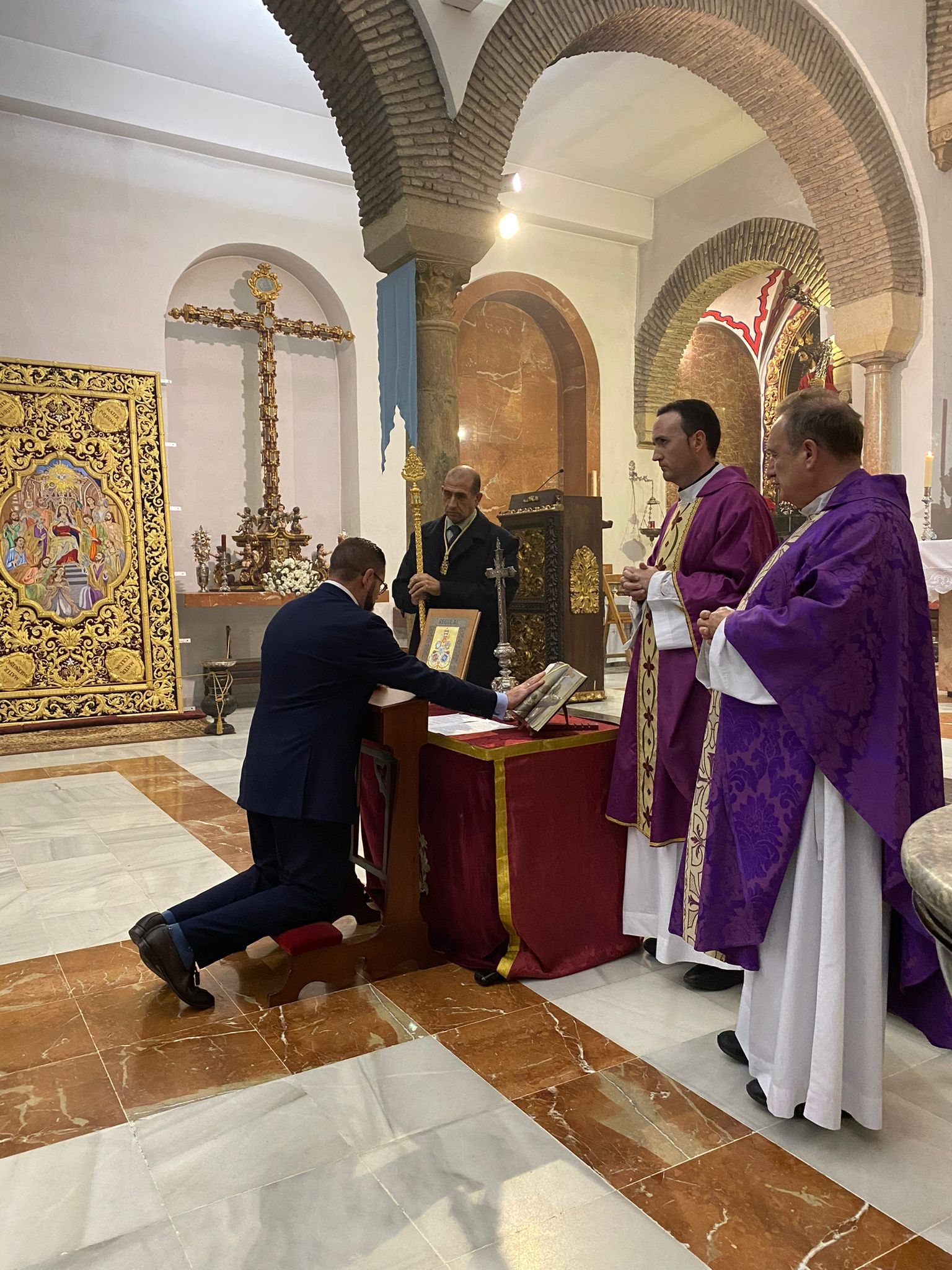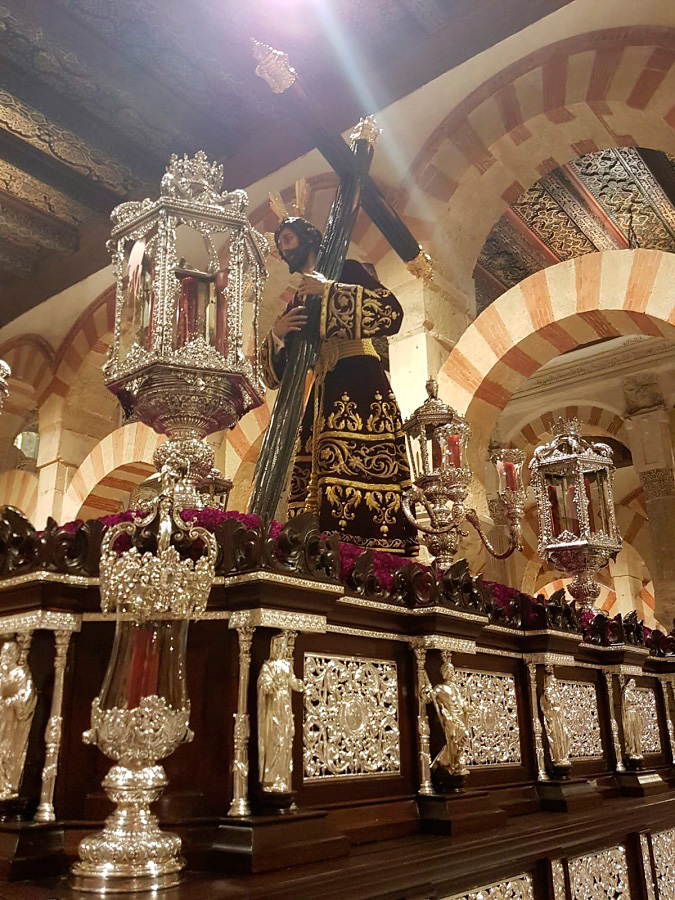 El pasado domingo 23 de octubre inauguramos en la Santa Iglesia Catedral la Exposición 'Eterna es Su Misericordia: la Vera-Cruz en la Diócesis de Córdoba'. La misma corrió a cargo del Comisario de la Exposición don Rafael Mariscal, de nuestra Hermana Mayor doña Salud Aguilar y de nuestro director espiritual y en representación del señor Obispo de la Diócesis, don Pedro Soldado. Asistimos todas la Cofradías de la Vera-Cruz participantes en el histórico momento, y pudimos apreciar la magestuosidad de contemplar a los Titulares de las diversas Cofradías de la Vera-Cruz de nuestra Diócesis en un mismo espacio, que no es otro que la grandeza de las naves del Conjunto Monumental Mezquita-Catedral de Córdoba.