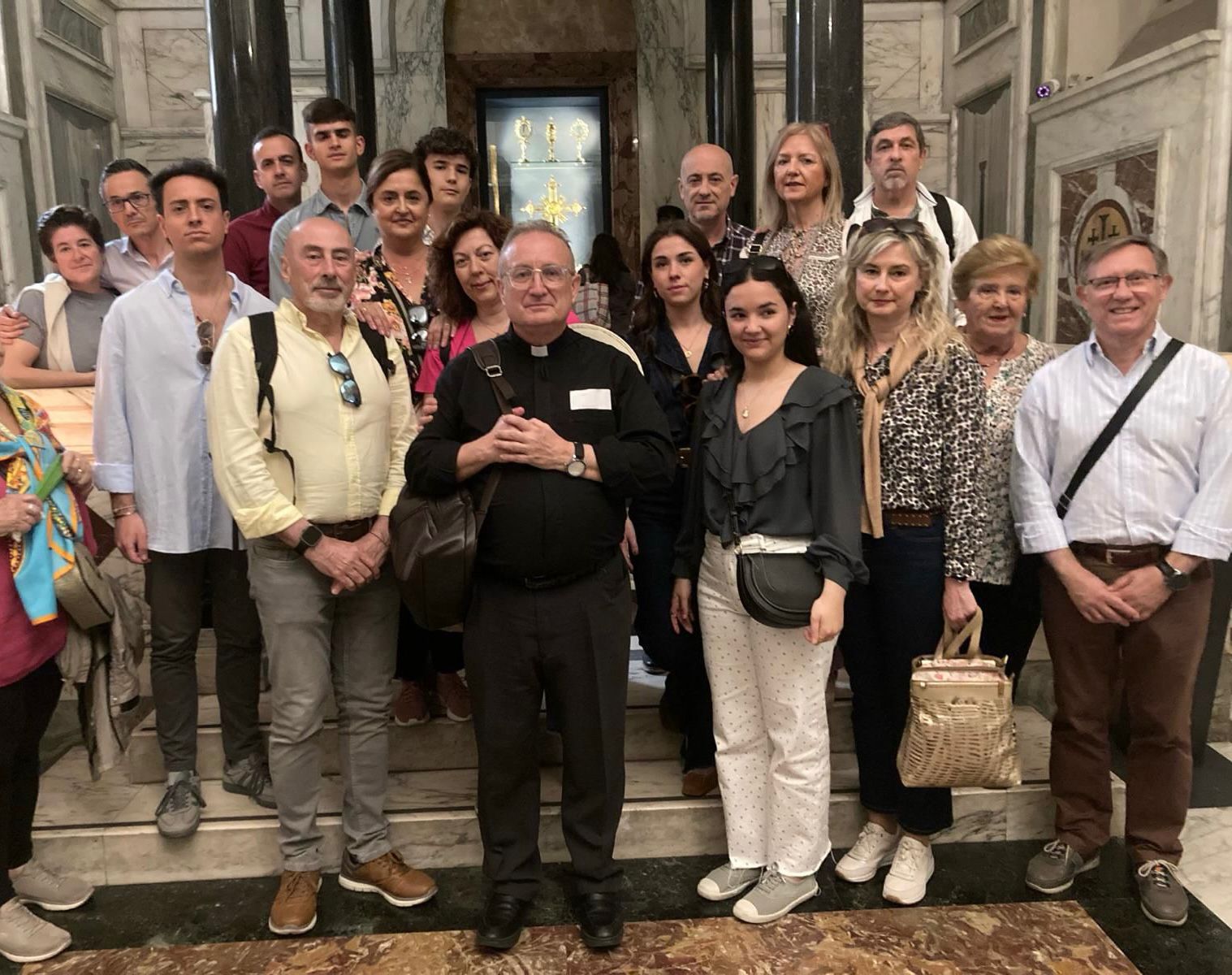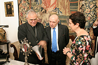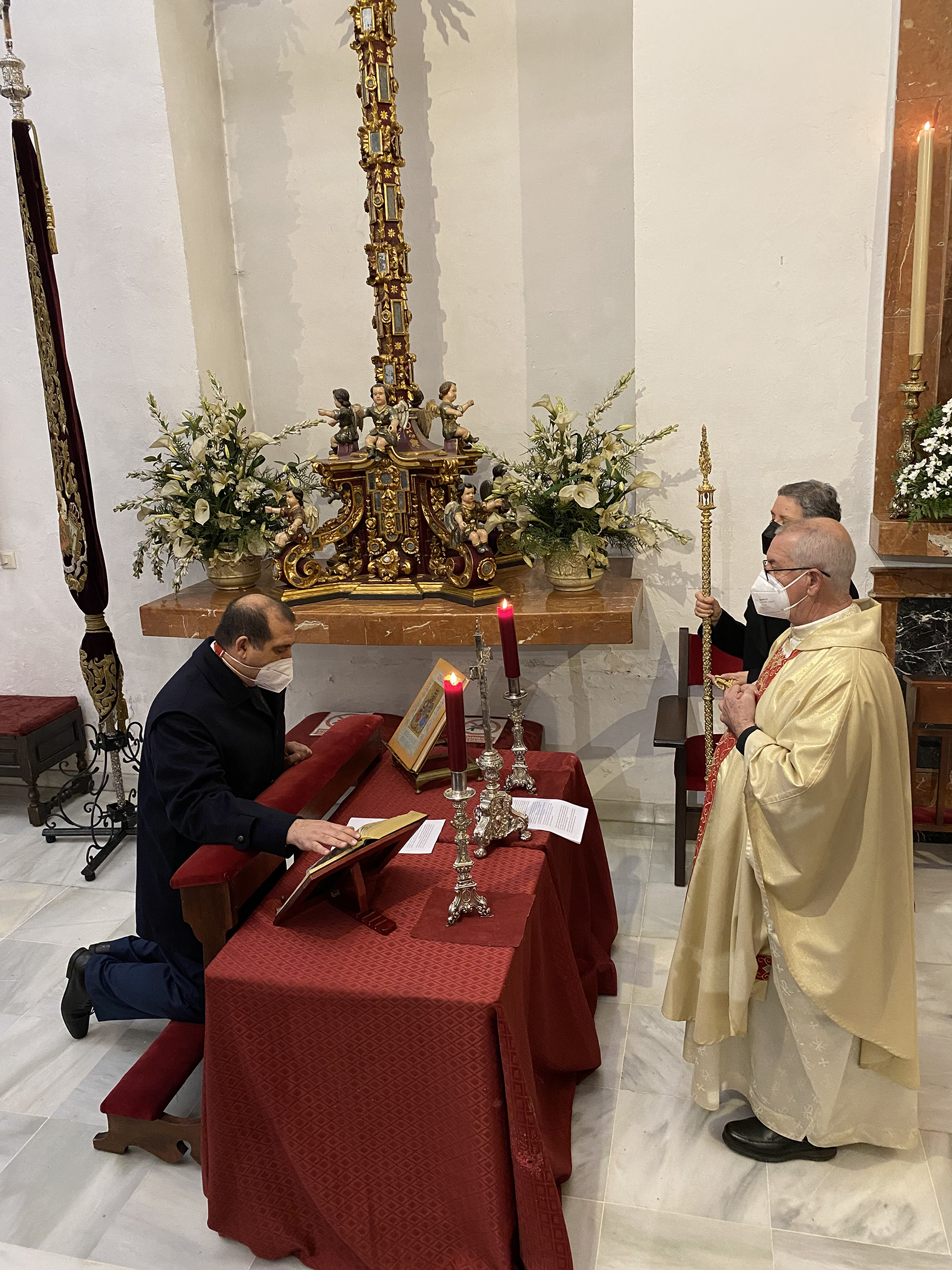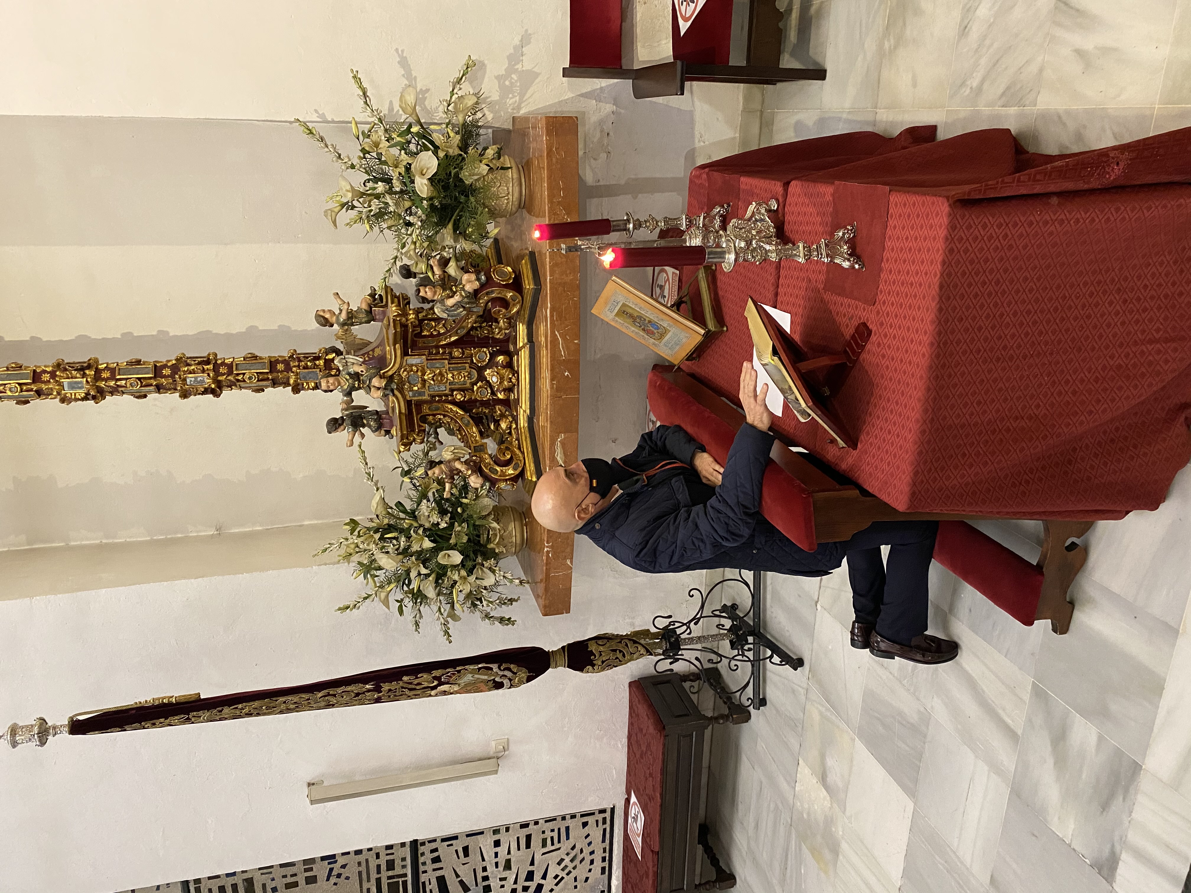En un sentido e íntimo acto, el Marqués de Vivanco nos ha expuesto las diferentes actividades sociales y caritativas de la Fundación que preside, y su deseo de que la Santa Reliquia de la Cruz de Cristo que pertenece a su familia desde hace varios siglos, sea venerada en nuestra Archicofradía. La reliquia del Lignum Crucis, colocada en cristal de roca y custodia de plata, fue donada por S.S el Papa Clemente VIII a S.M. Católica el Rey Felipe III en el año 1.598, con motivo de su ascenso al trono. Regalada posteriormente por el Rey a don Bartolomé Ortiz de Vivanco en 1.605, en agradecimiento a los grandes servicios prestados a la Monarquía Hispánica por él y su familia a lo largo de los siglos, con lealtad y fidelidad. La Santa Reliquia ha permanecido en la familia durante generaciones, siendo venerada en la Capilla privada del Palacio-Abadía del lugar de Vivanco de Mena, sede del Abad Laico titular del Señorío y posteriormente del Marquesado de Vivanco.