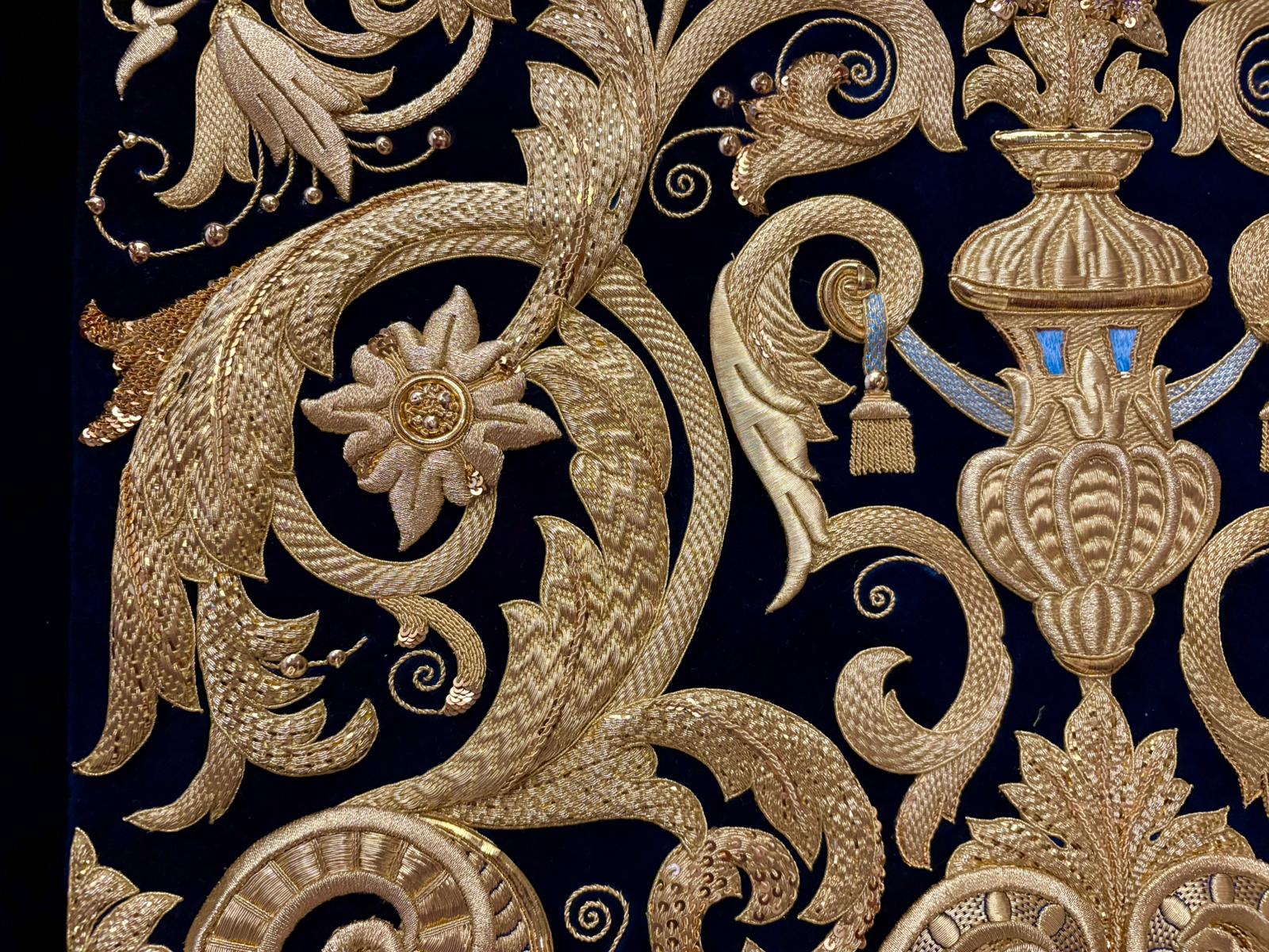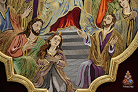 Siguiendo las mismas técnicas empleadas en el bordado de las bambalinas exteriores y en el techo de palio, se ha realizado la bambalina interior trasera del palio de la Virgen del Dulce Nombre en el taller de Manuel Solano. El diseño utilizado, de José Manuel Martínez Hurtado, aunque contiene algunos elementos comunes, no es el mismo que el de la parte exterior.