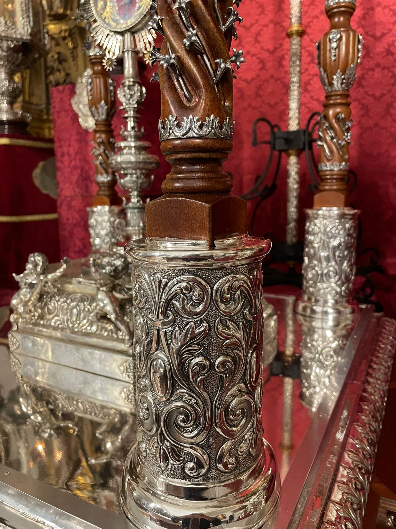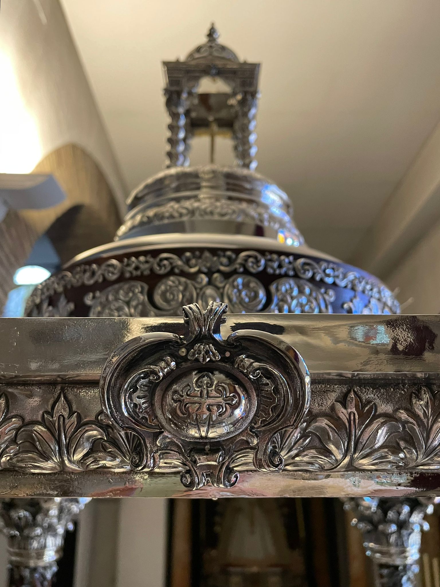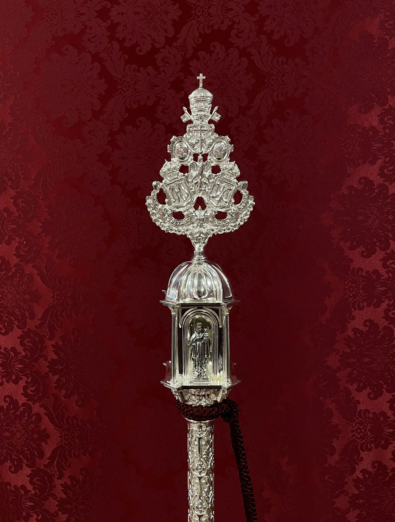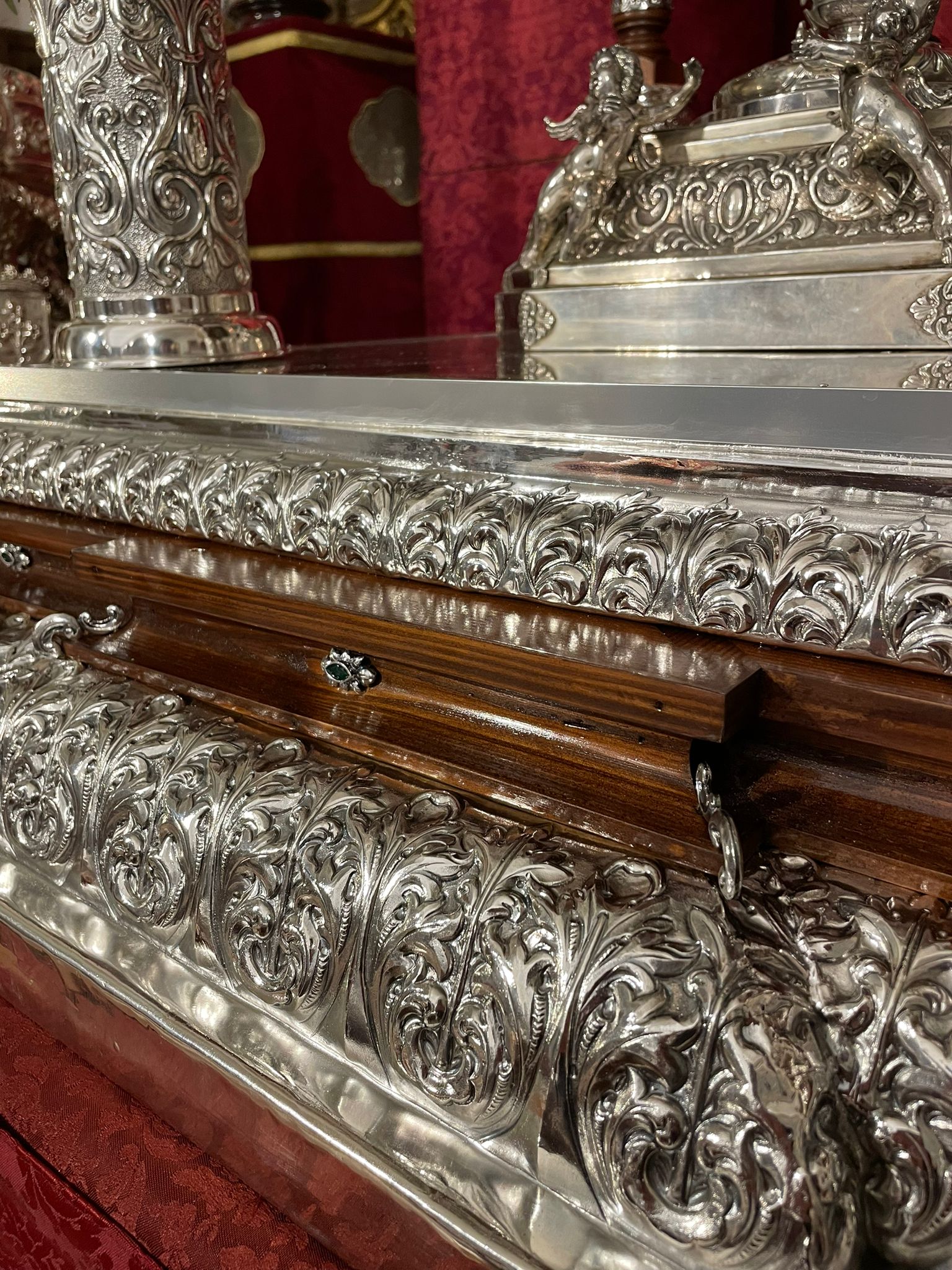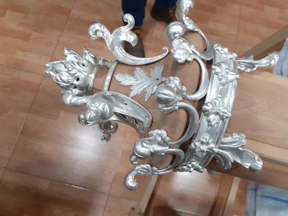 Nueva cubrepeana para Nuestro Señor de los Reyes, diseñada y ejecutada por el orfebre Manuel Valera. La pieza ha sido realizada en plata y presenta una cuidada decoración vegetal de inspiración barroca, en la que destacan elegantes hojas de acanto.