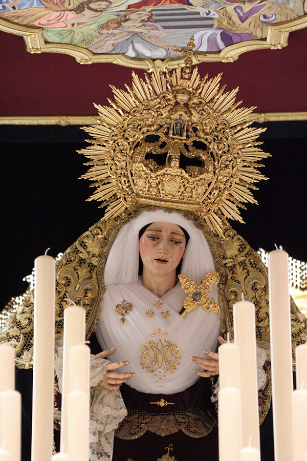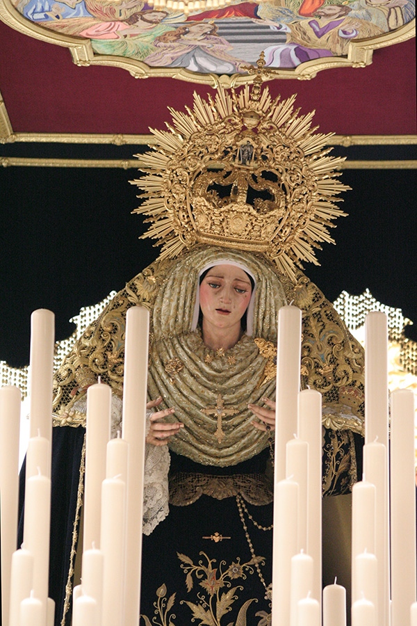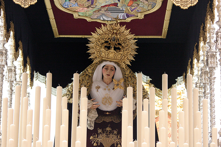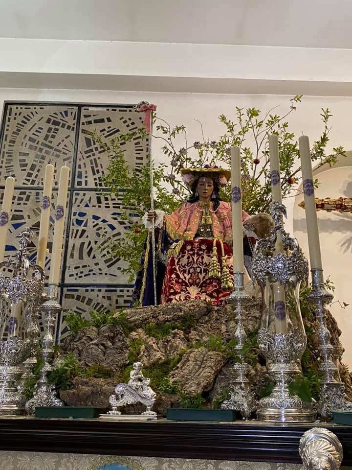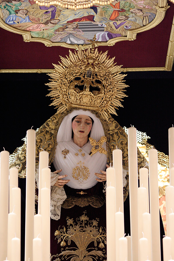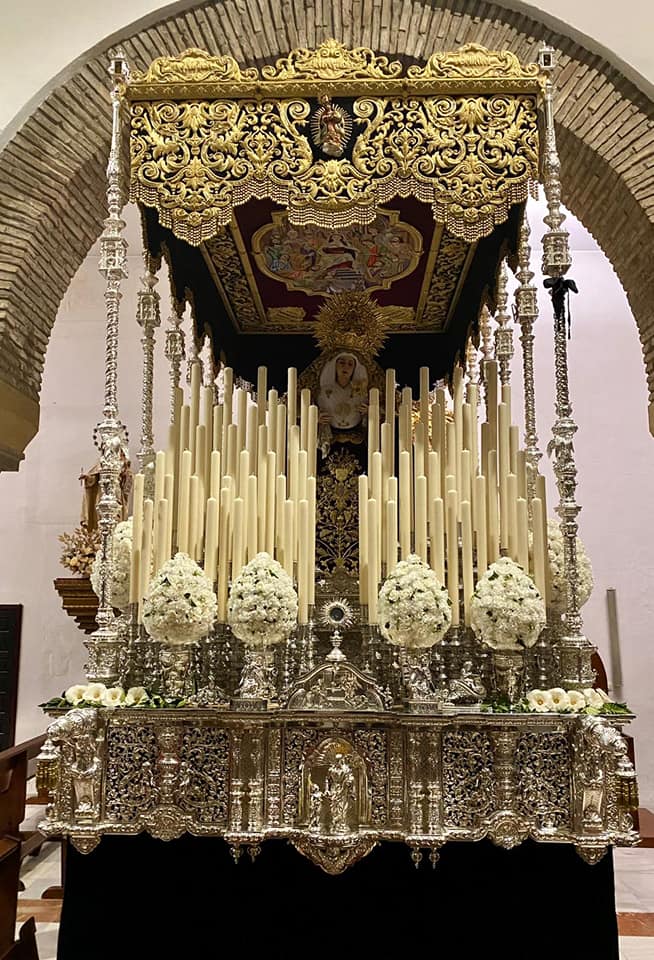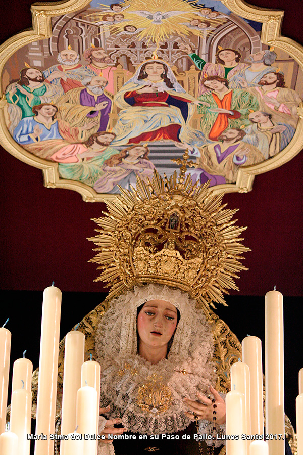 En la tarde de hoy, Nuestra Bendita Madre, la Santísima Virgen del Dulce Nombre, ha sido entronizada en su paso de palio, aguardando la llegada del Domingo de Ramos. La Santísima Virgen se presenta ya ataviada como Reina, a la espera únicamente de la colocación de sus joyas, que completarán el esplendor de su presencia para la próxima estación de penitencia.