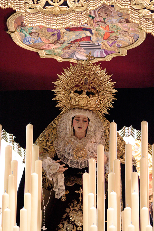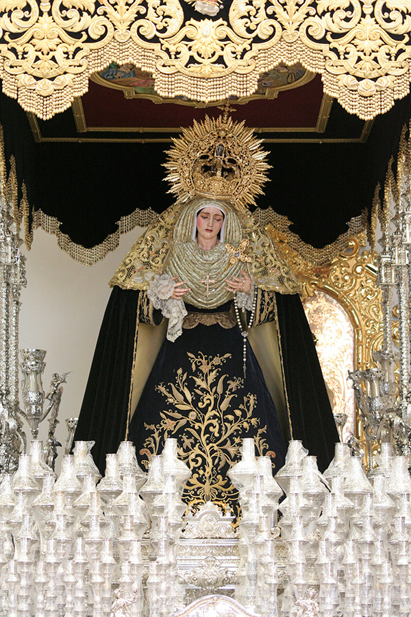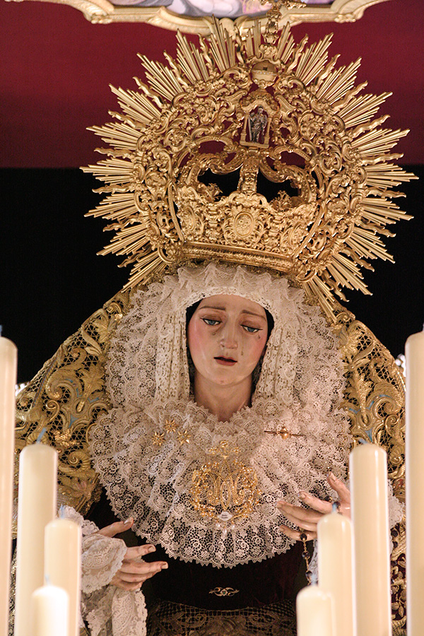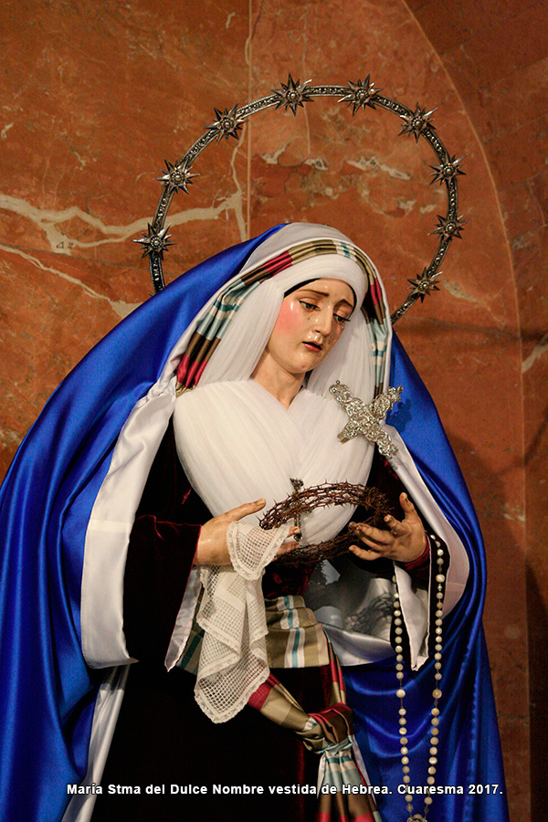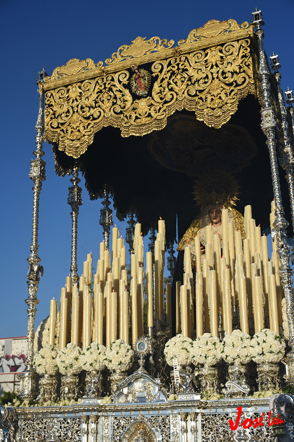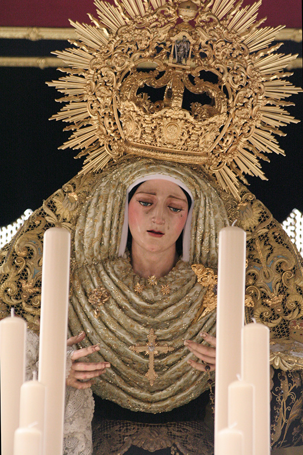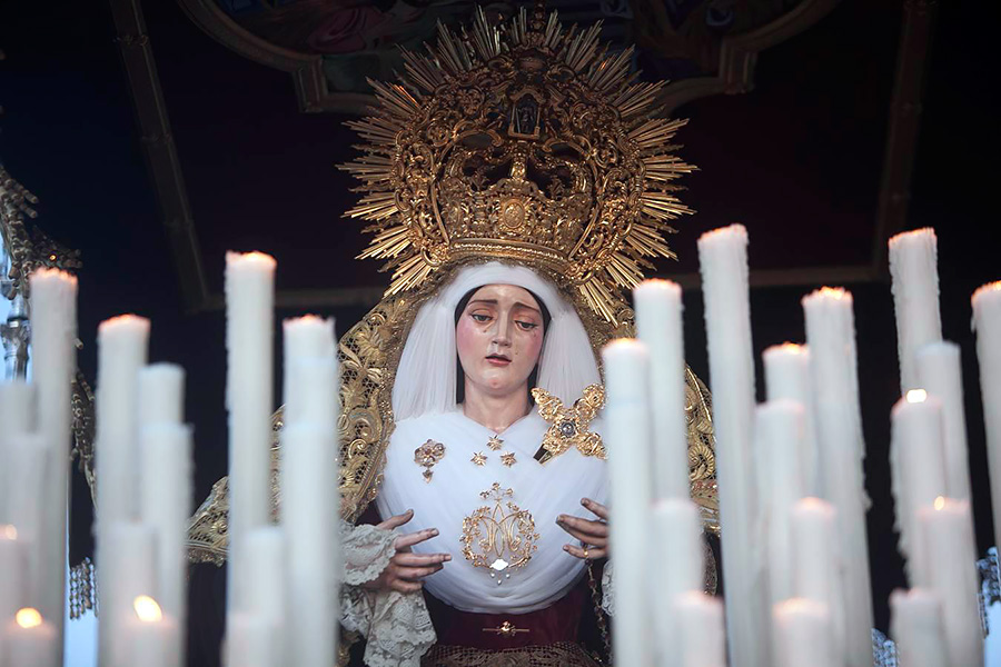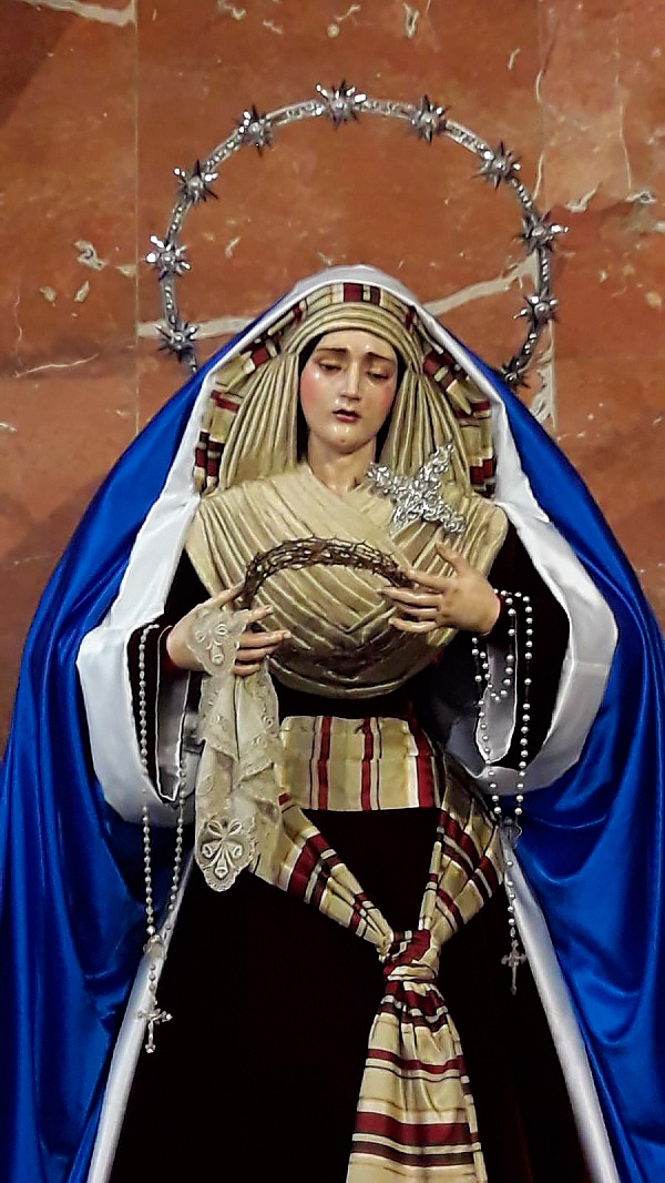 En la tarde de hoy, Nuestra Bendita Madre, la Santísima Virgen del Dulce Nombre, ha sido entronizada en su paso de palio, aguardando la llegada del Domingo de Ramos. La Santísima Virgen se presenta ya ataviada como Reina, a la espera únicamente de la colocación de sus joyas, que completarán el esplendor de su presencia para la próxima estación de penitencia.