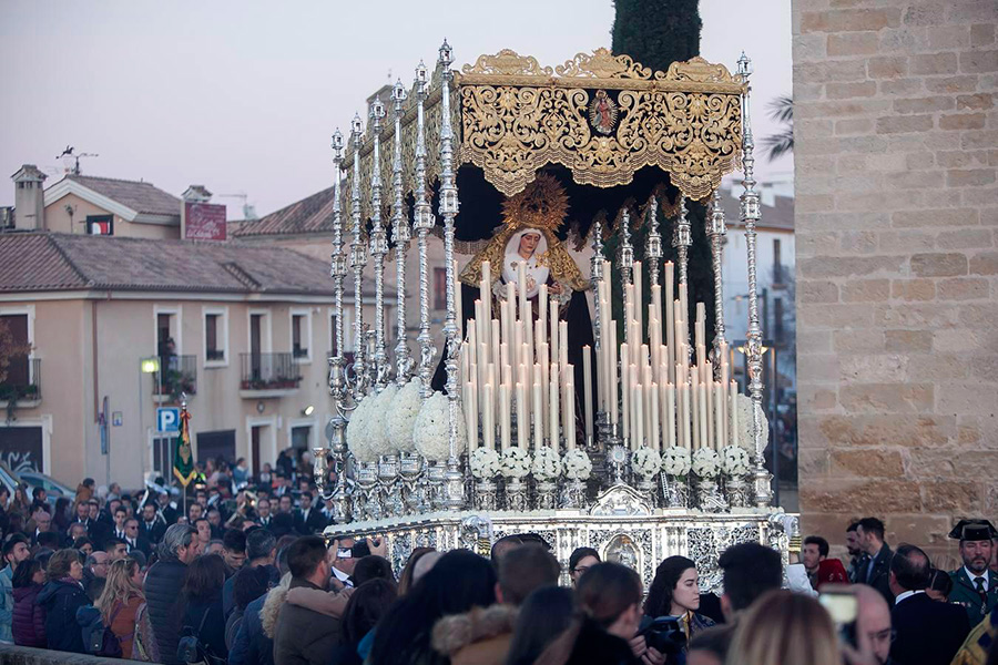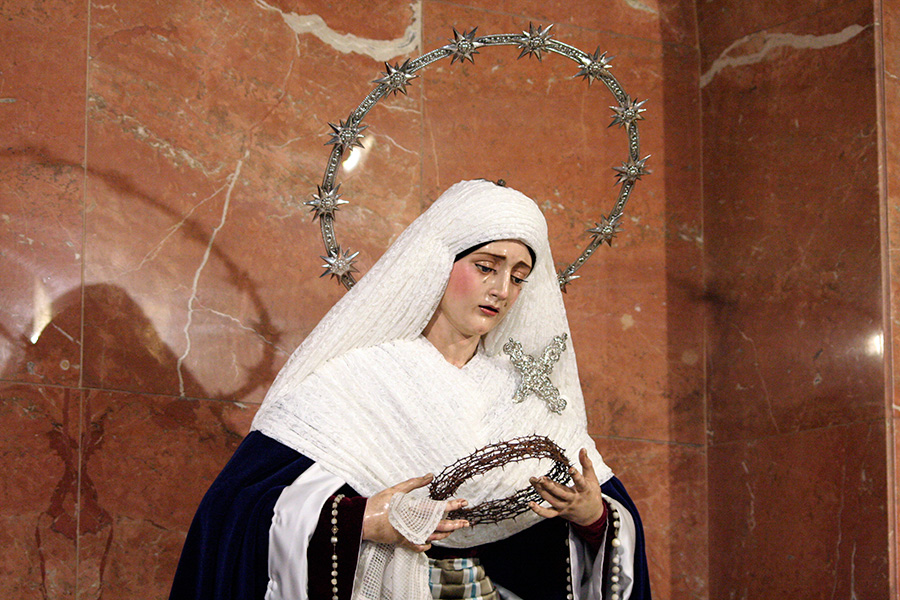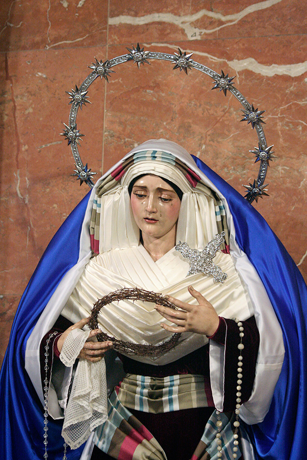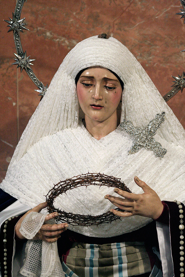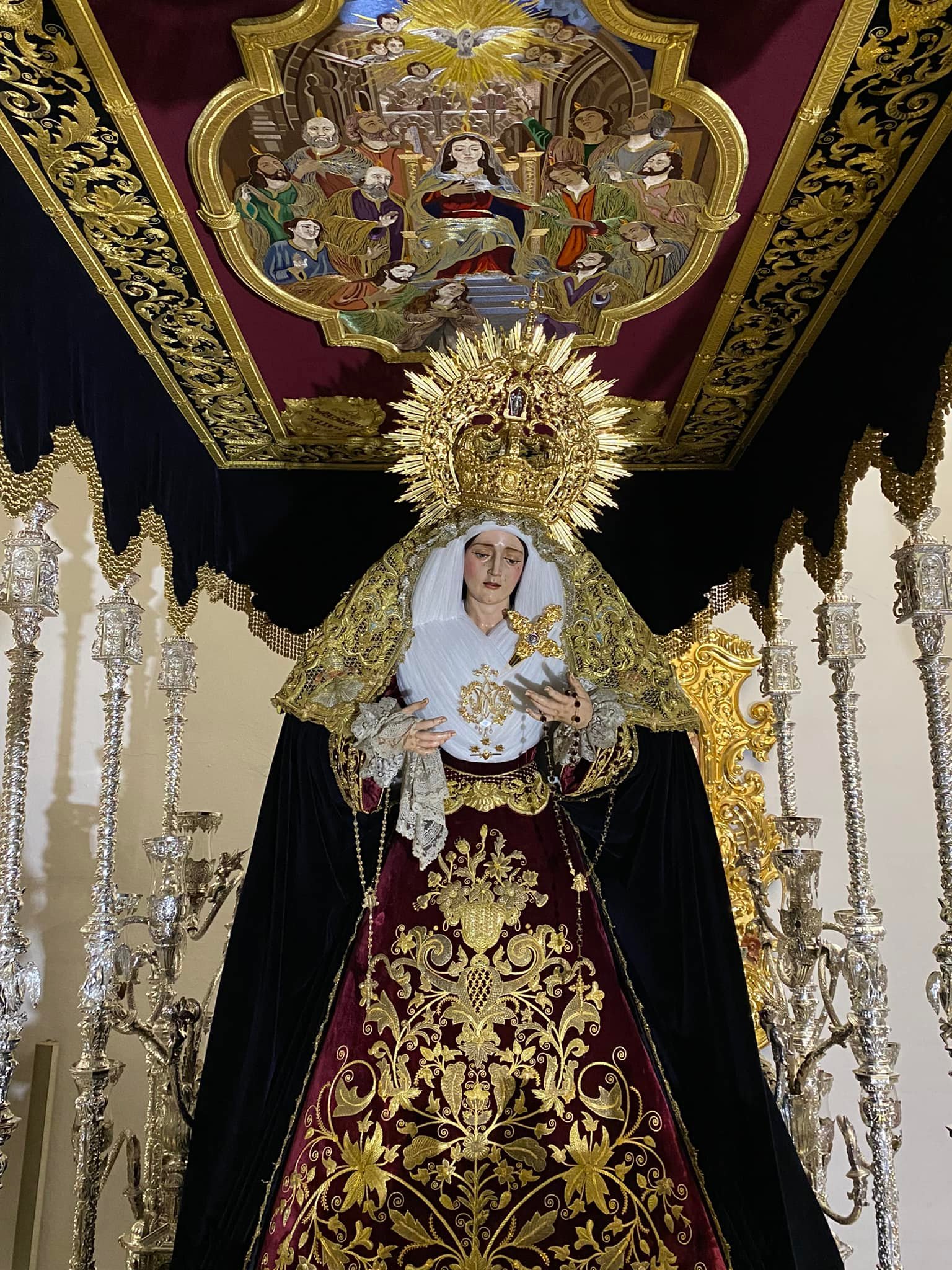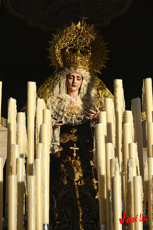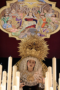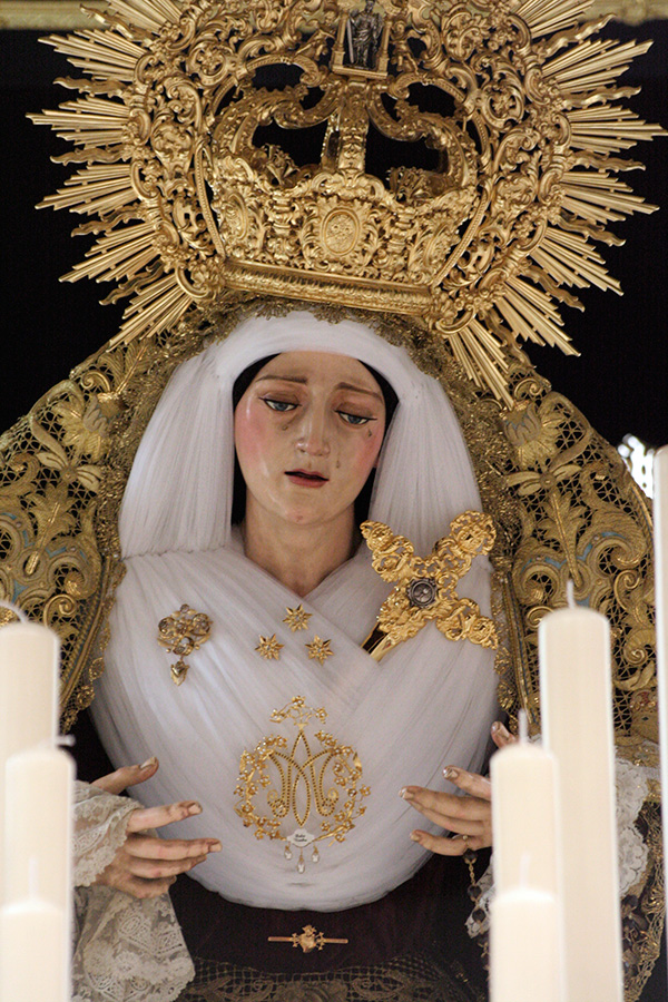 En la tarde de hoy, Nuestra Bendita Madre, la Santísima Virgen del Dulce Nombre, ha sido entronizada en su paso de palio, aguardando la llegada del Domingo de Ramos. La Santísima Virgen se presenta ya ataviada como Reina, a la espera únicamente de la colocación de sus joyas, que completarán el esplendor de su presencia para la próxima estación de penitencia.