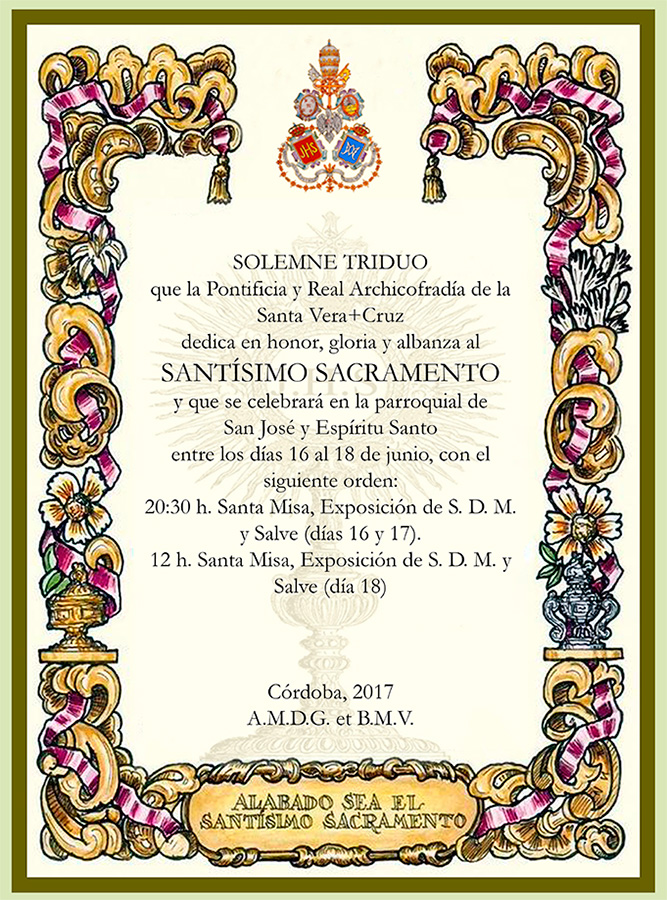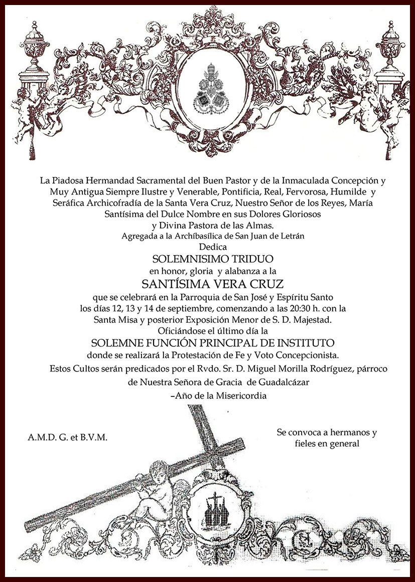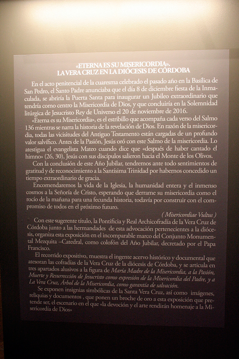 En el marco del Año de la Misericordia, y como clausura del mismo, esta Pontificia y Real Archicofradía de la Santa Vera Cruz de Córdoba, celebrará una exposición en la Santa Iglesia Catedral con el título “Eterna es su misericordia: la Vera Cruz en la Diócesis de Córdoba”.