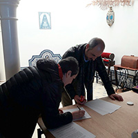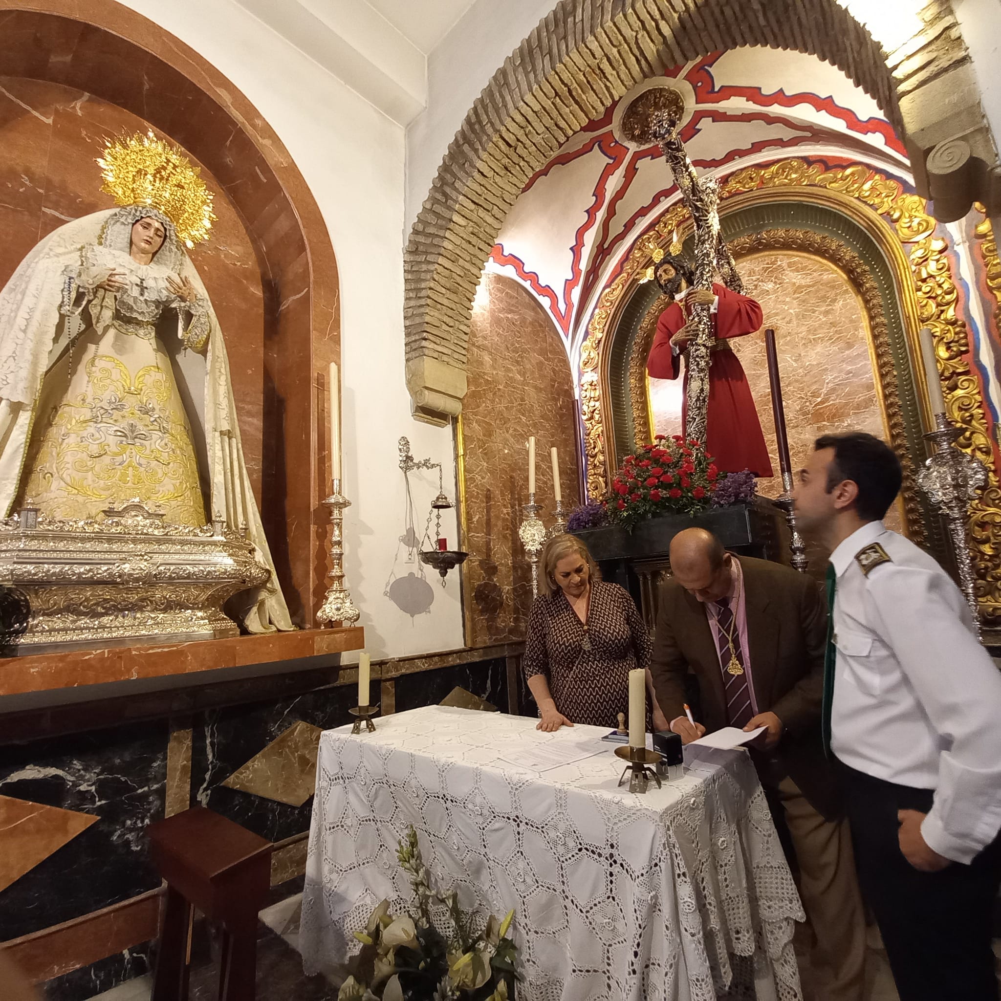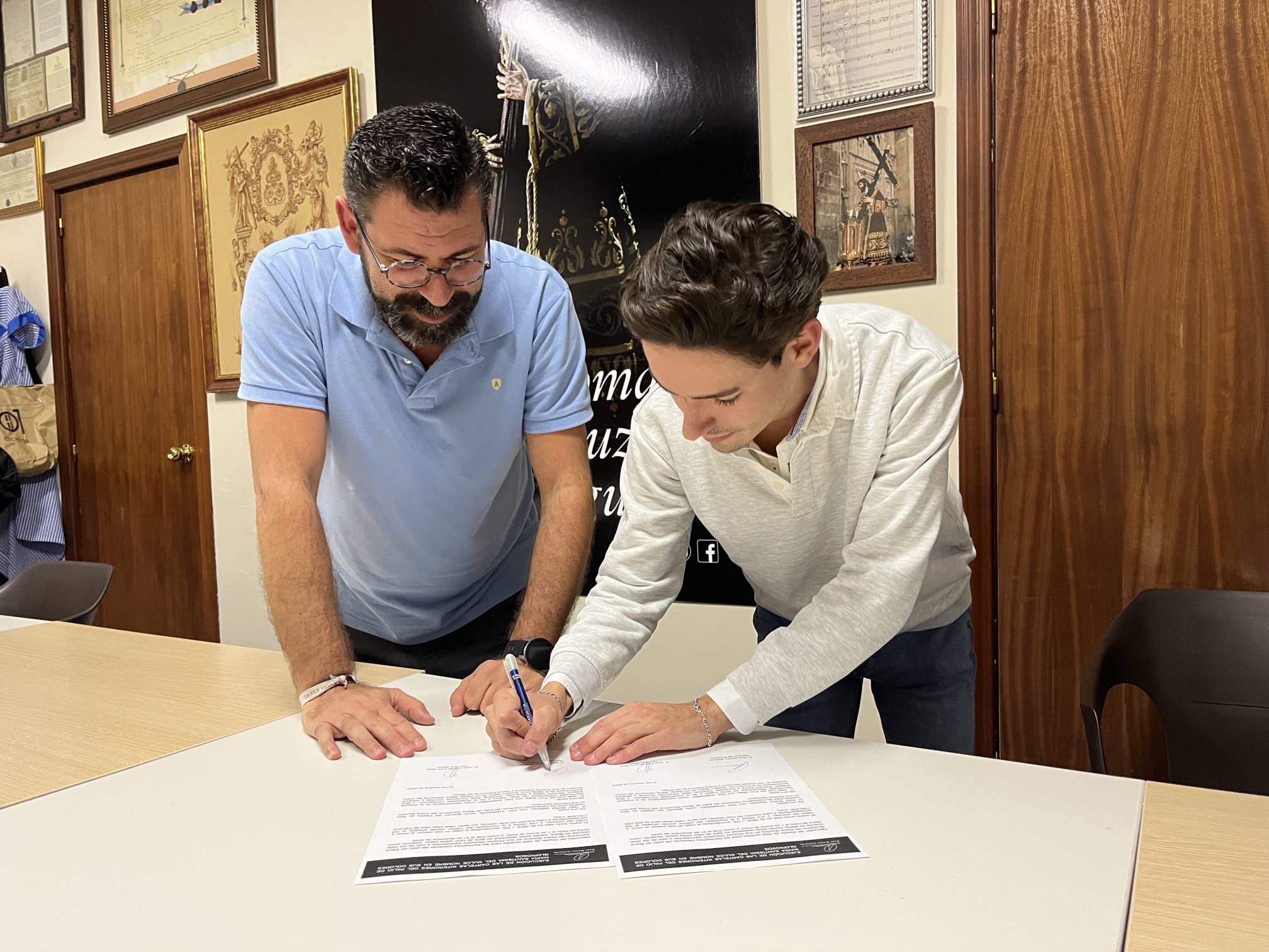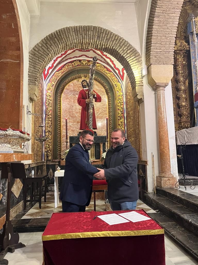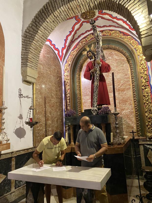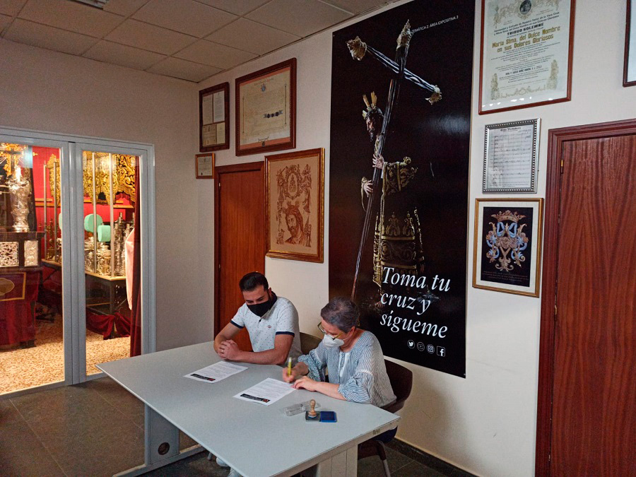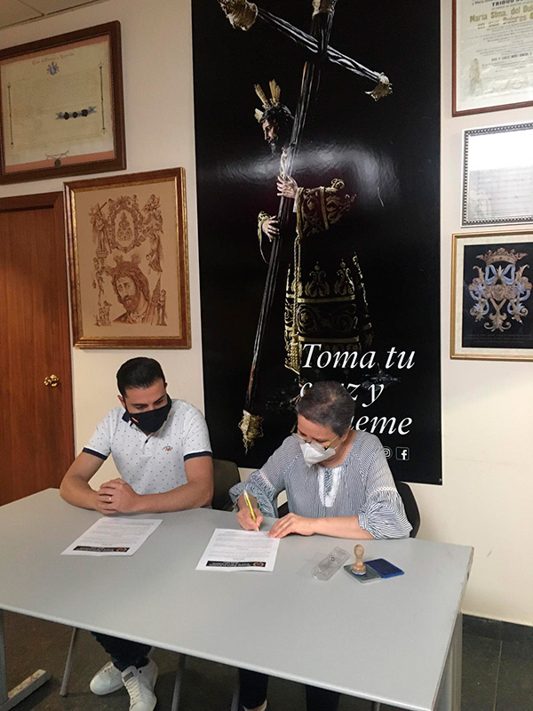 El pasado domingo 16 de octubre, coincidiendo con la Salida Procesional de la Divina Pastora de las Almas, la Archicofradía firmó el contrato con las bandas que acompañarán a nuestros Titulares el próximo Lunes Santo. Así seguirá la banda de cornetas y tambores Nuestra Señora de la Merced de El Viso del Alcor (Sevilla) tras el paso de Nuestro Señor de los Reyes, y la banda de música María Santísima de la Esperanza de Córdoba tras el paso de palio de María Santísima del Dulce Nombre.
