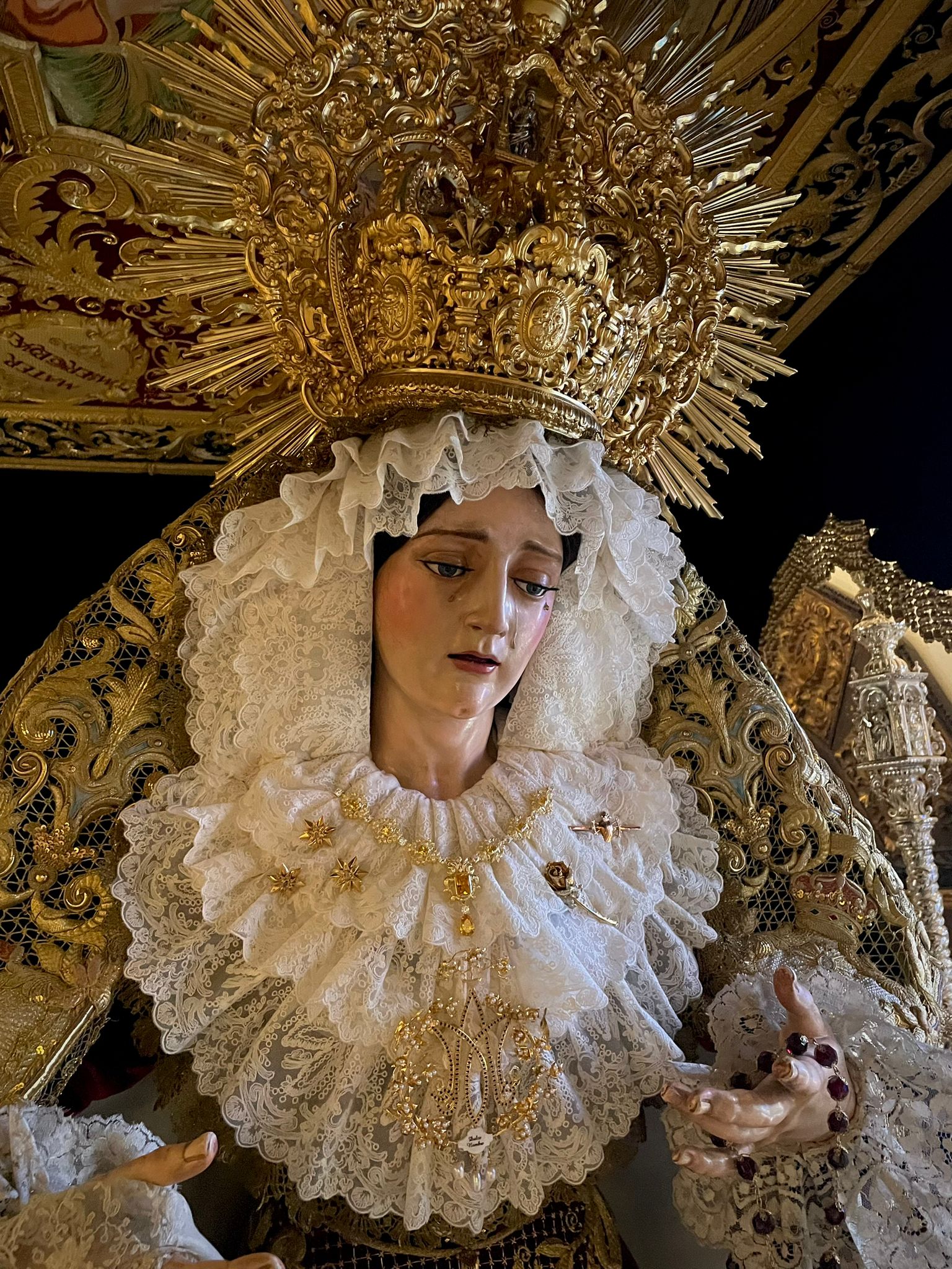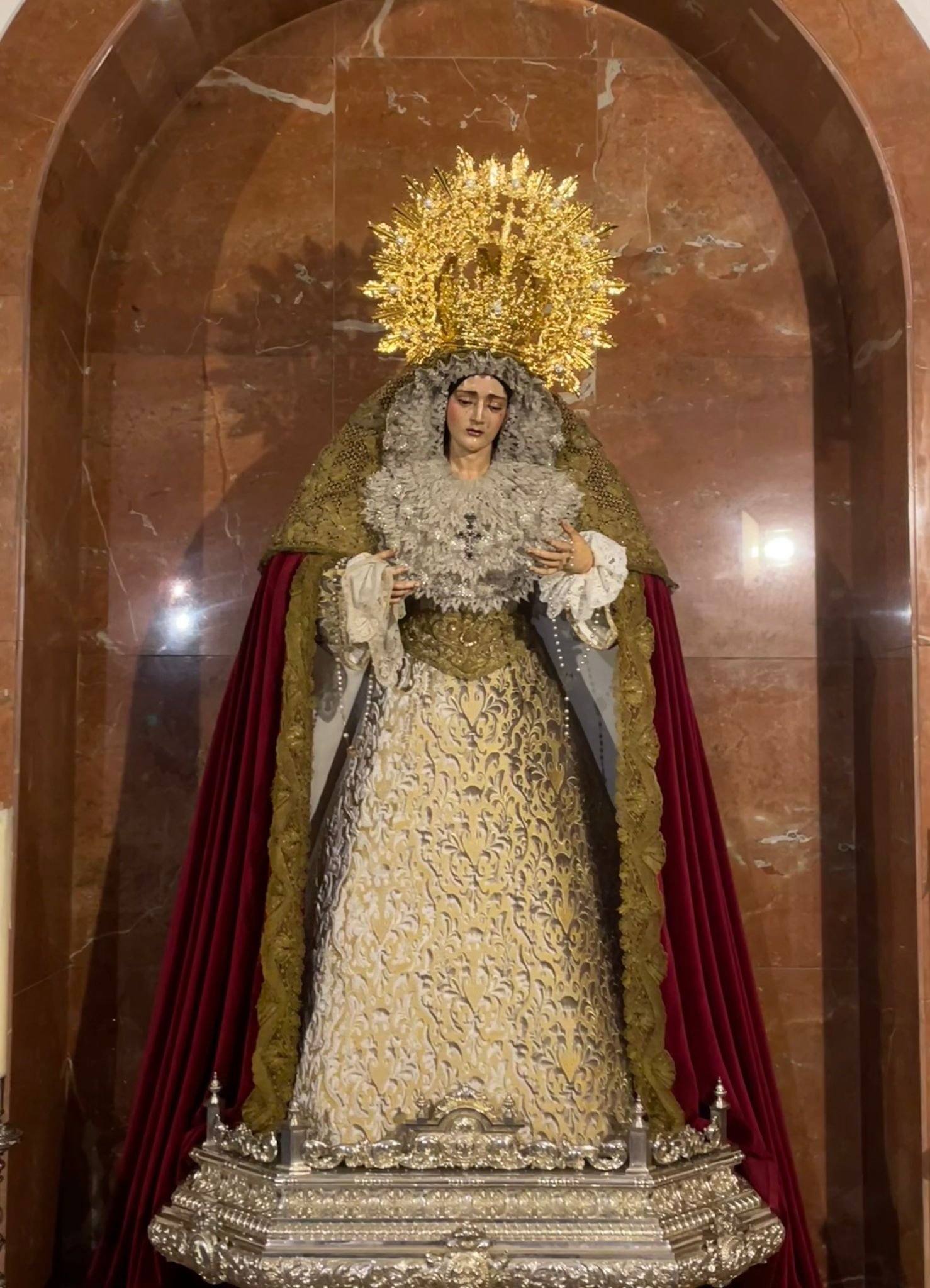 María Santísima del Dulce Nombre y Nuestro Señor de los Reyes ya se encuentran ataviados para la festividad de la Natividad de Nuestro Señor Jesucristo.