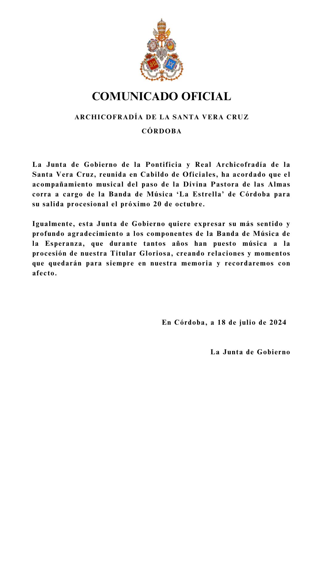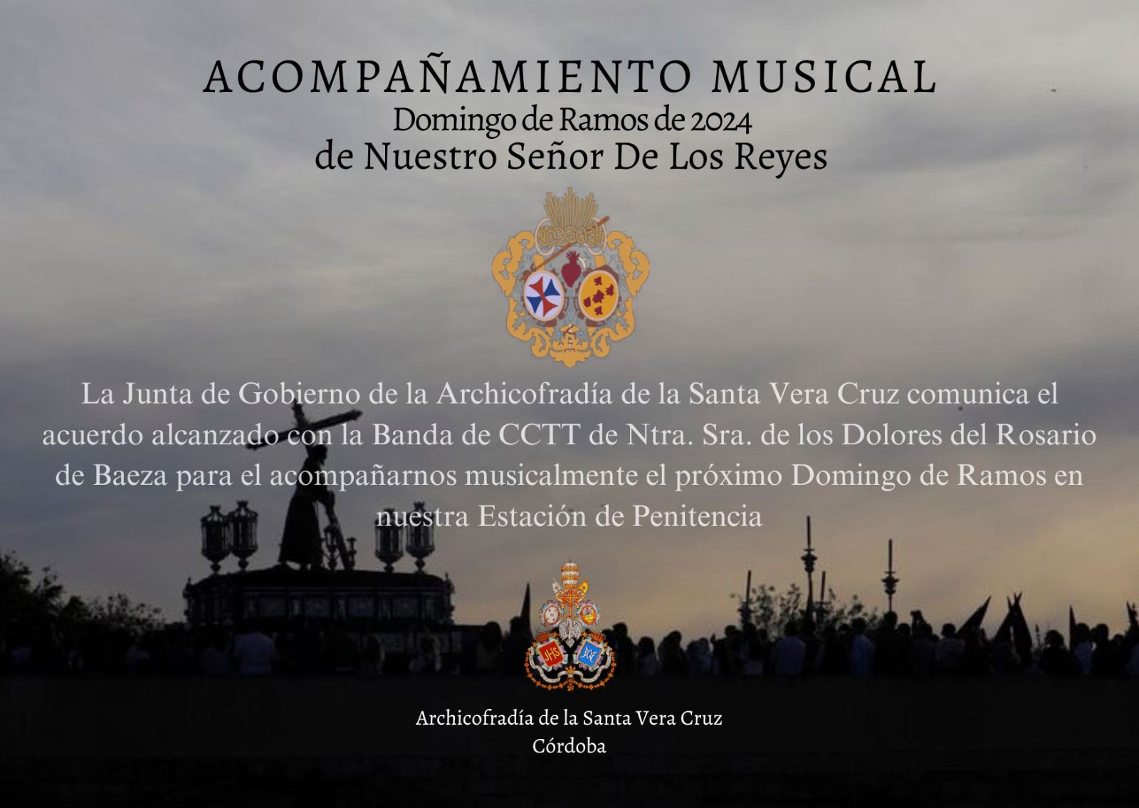 El acompañamiento musical correrá a cargo de la banda de música María Santísima de la Esperanza de Córdoba.