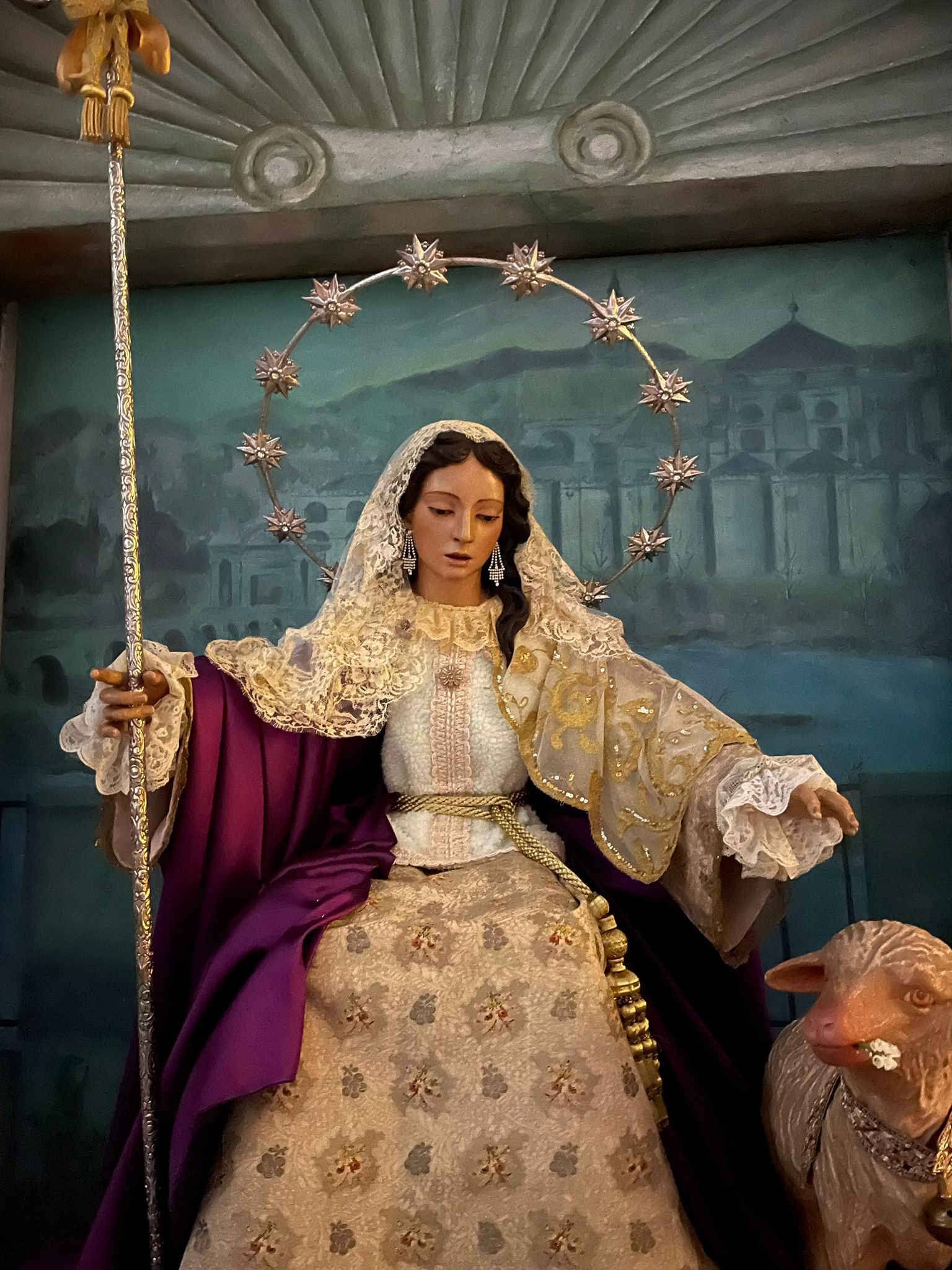 Cambio de terno de la Divina Pastora de las Almas para el tiempo cuaresmal.