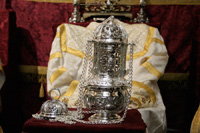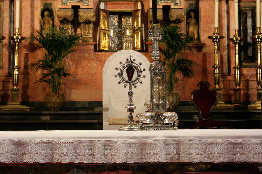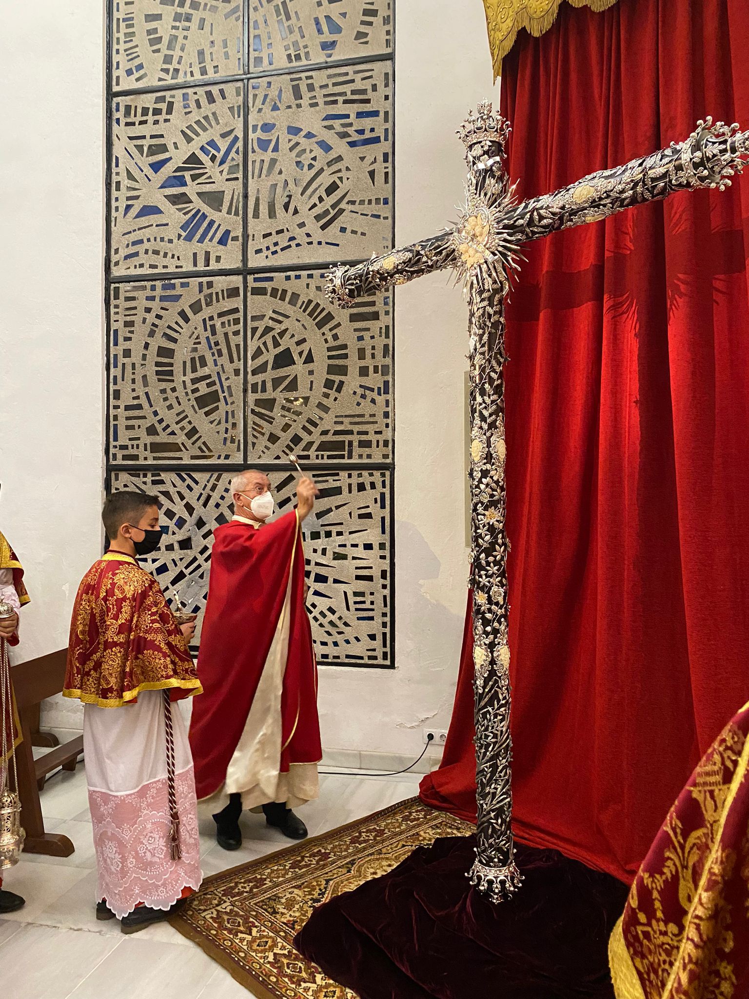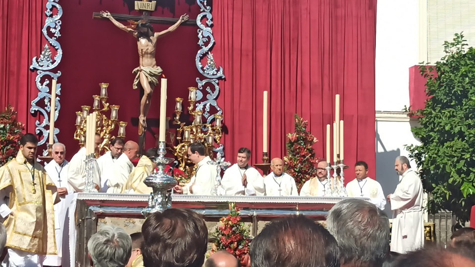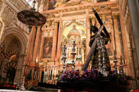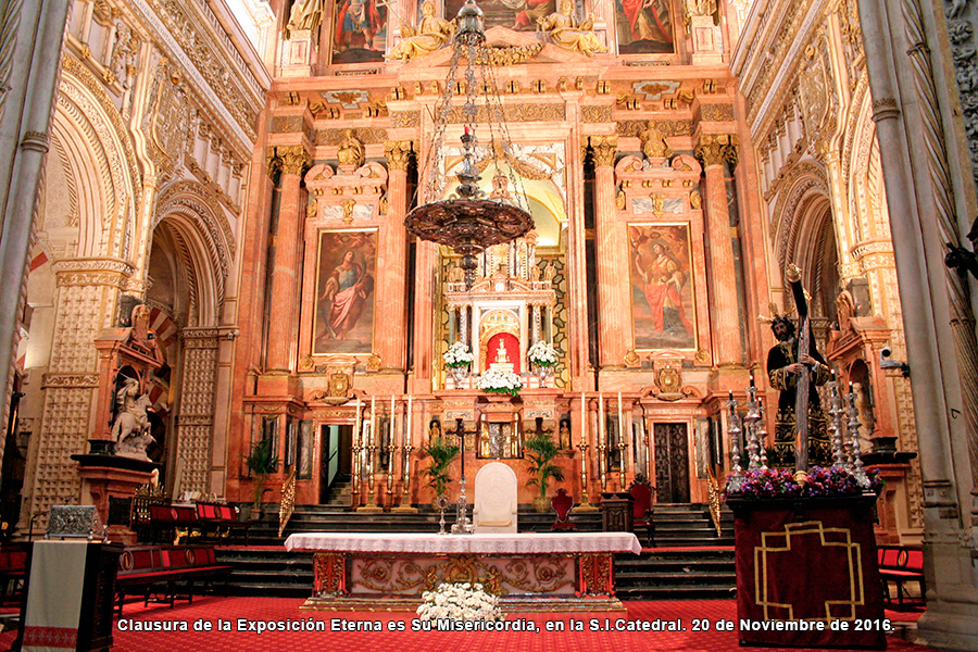Hoy domingo, a las 12 horas de la mañana, se ha celebrado en la Santa Iglesia Catedral la Santa Misa de clausura de la Exposición 'Eterna es Su Misericordia'. Sobre la mesa de Altar, presidiendo el Lignum Crucis de la Archicofradía, y en el Altar Mayor Nuestro Señor de los Reyes entronizado en la parihuela que le llevaría de regreso a nuestra parroquia. Pero la lluvia que caía sobre la ciudad a la hora prevista del Traslado ha impedido que se pudiera llevar a cabo. Al finalizar la Santa Misa, los fieles han podido venerar la Santa Reliquia de la Cruz de Cristo.