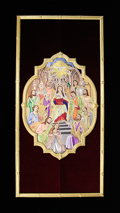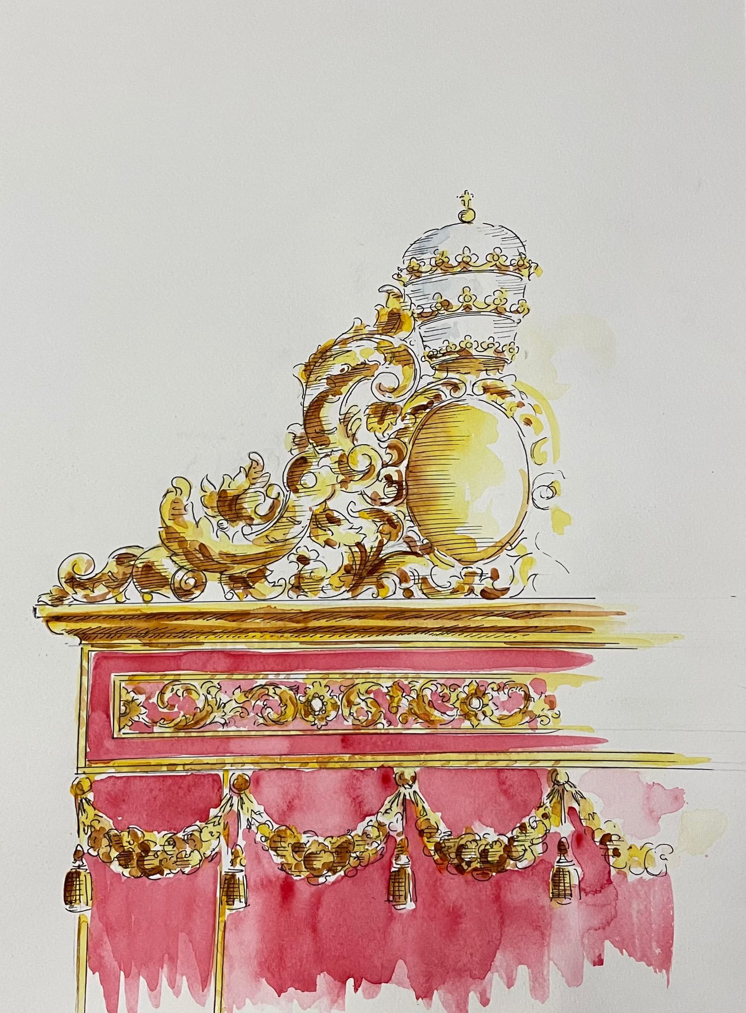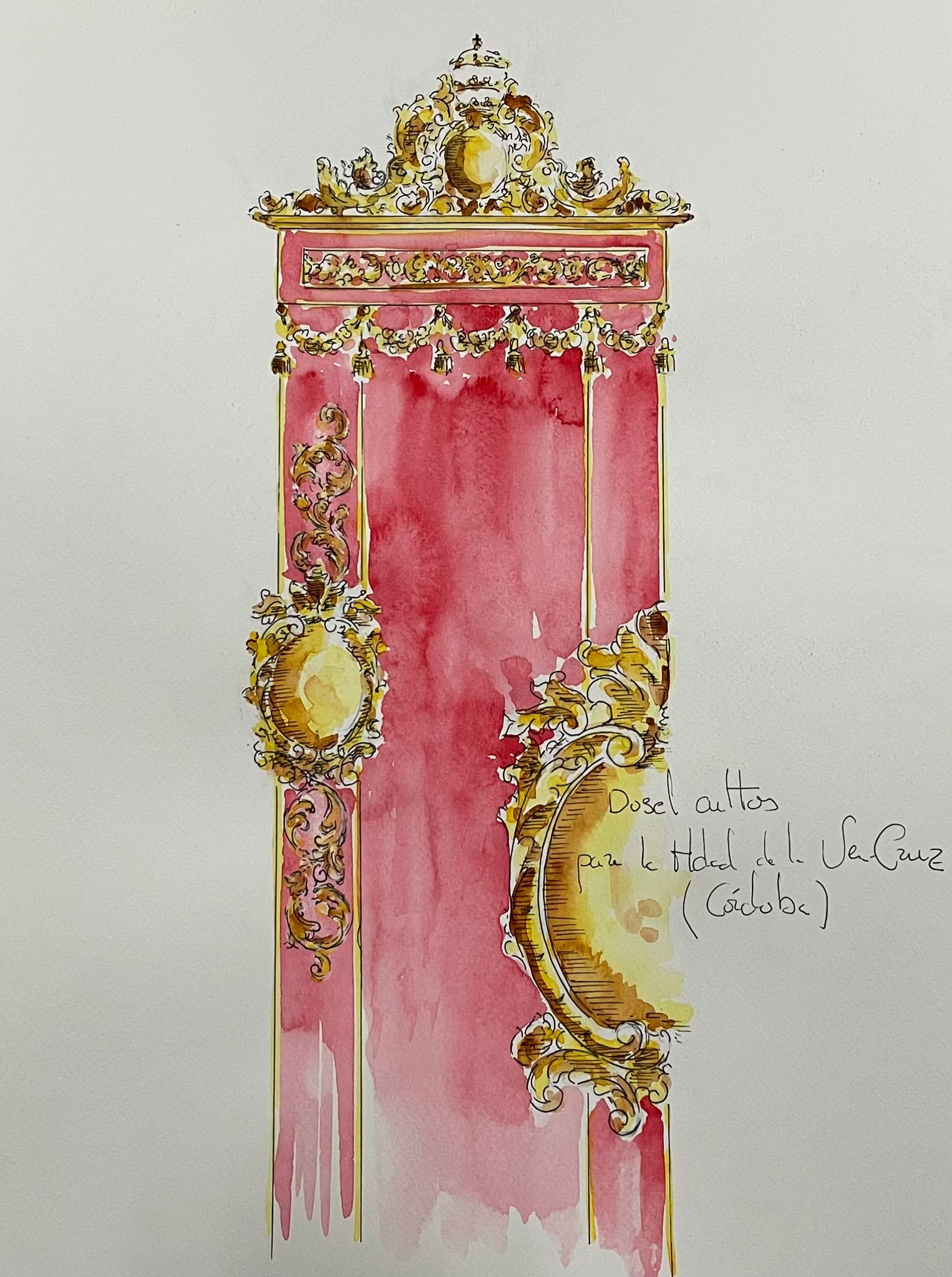 El diseño mantiene una clara armonía estética con el templete que en su día realizara el propio artista para nuestra corporación, siguiendo sus mismas líneas estilísticas y su lenguaje ornamental. De este modo, la nueva cubrepeana no solo enriquece el conjunto artístico que rodea la imagen de Nuestro Señor de los Reyes, sino que también contribuirá a realzar su presencia y solemnidad en la capilla del Sagrario.