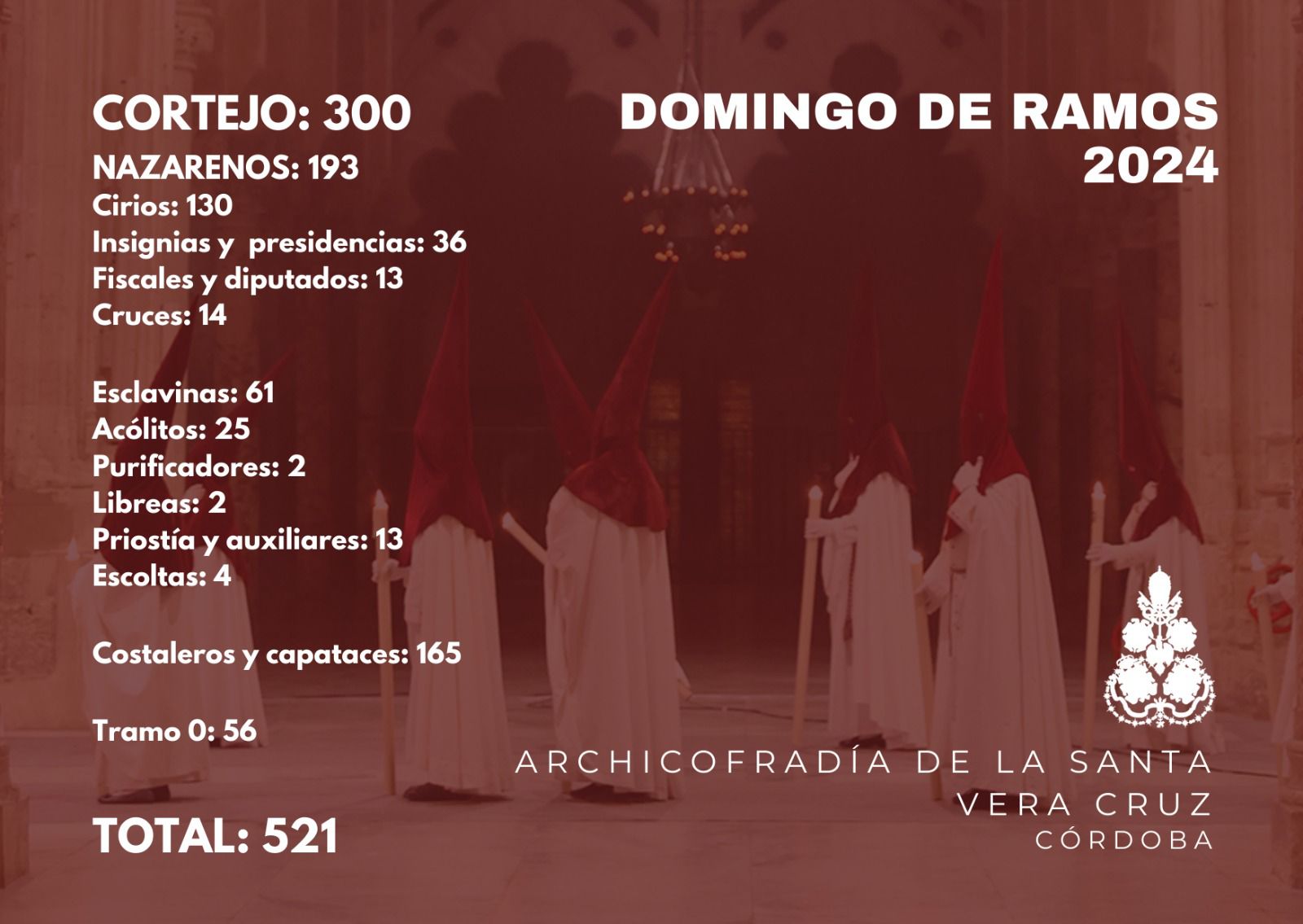 Dicha exposición contará con los Titulares de las Hermandades de la Vera Cruz de Aguilar de la Frontera, Almodóvar del Rio, Baena, Belalcázar, Bujalance, Cabra, Castro del Rio, Córdoba, Espejo, La Rambla, Montemayor, Montoro, Posadas, Priego de Córdoba, Rute y Santaella.
