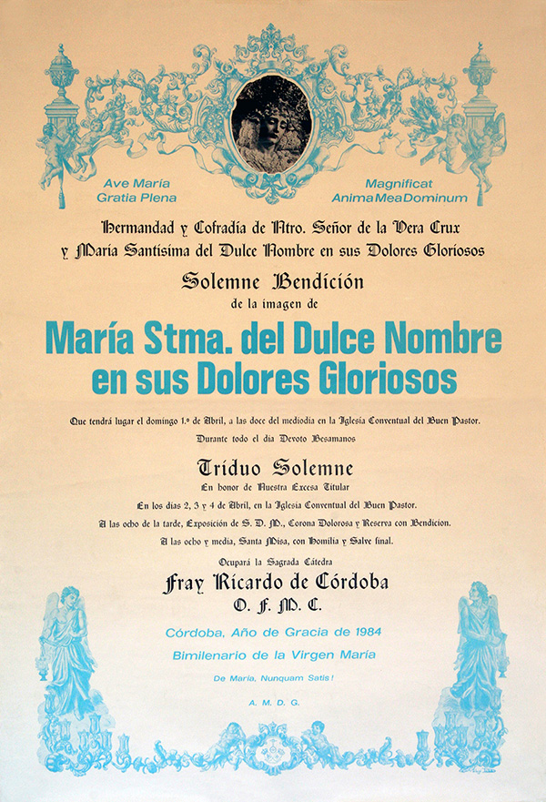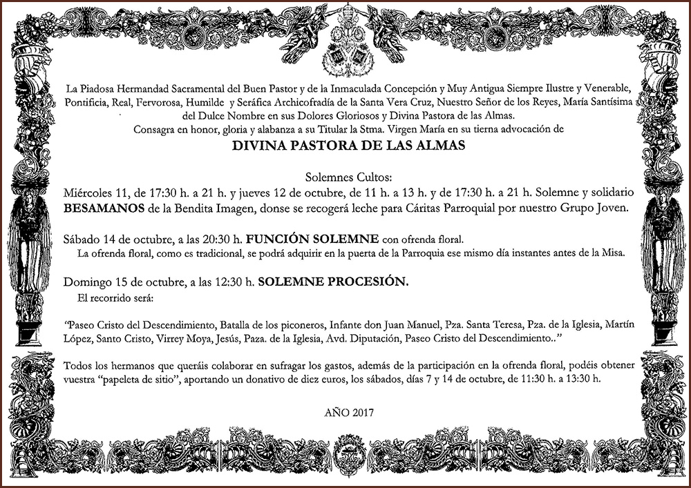 CARTEL ANUNCIADOR DE LOS CULTOS A LA DIVINA PASTORA.