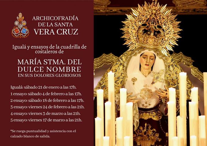 En la tarde de ayer tuvo lugar la igualá de costaleros de María Santísima del Dulce Nombre en sus Dolores Gloriosos. Que la Santísima Virgen vele por las intenciones de quienes tendrán el honor de ser sus pies el próximo Domingo de Ramos.