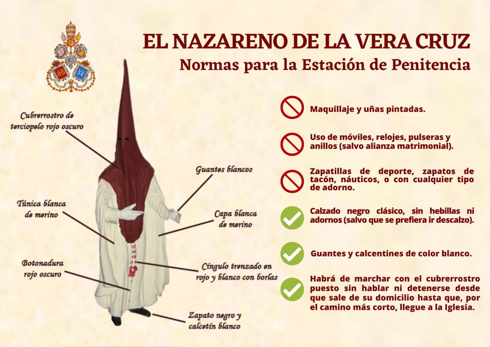 Se podrá elegir entre portar al Señor o el sitio que le corresponda por antigüedad portando cirio. Si no puede acompañar al Señor pero desea colaborar, puede elegir la opción 'Tramo Cero'. La papeleta de sitio le será entregada como recuerdo en el traslado de regreso a nuestra Parroquia el domingo 20 de noviembre.