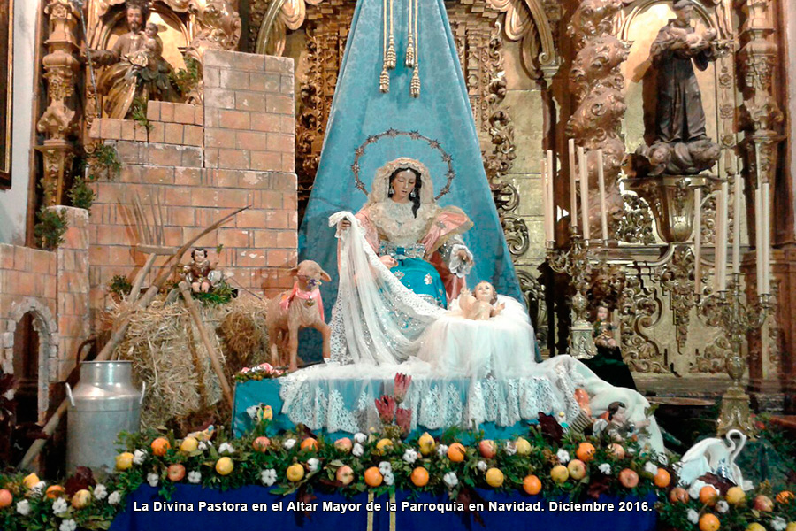 Como cada año cuando se acerca la Navidad, la Divina Pastora de las Almas preside el Altar Mayor de nuestra Parroquia. Os mostramos imágenes realizadas por el equipo de Priostía encargado del montaje del altar.