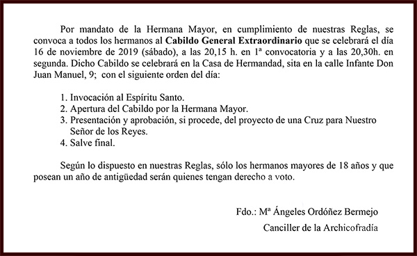 Esperamos verte acompañando a Nuestro Señor de los Reyes en estos acontecimientos históricos para nuestra Hermandad.