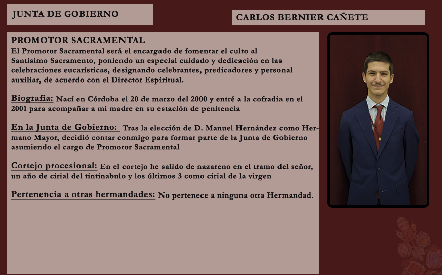El Cabildo de Oficiales aprobó la incorporación de un segundo capataz en el equipo de Javier Rodríguez Villalobos en el paso del Señor de los Reyes. Será Jesús López Mata, actual capataz de la Hermandad de la Agonía. Le damos la bienvenida y le deseamos mucha suerte en su nuevo cometido en el seno de nuestra Archicofradía.