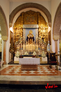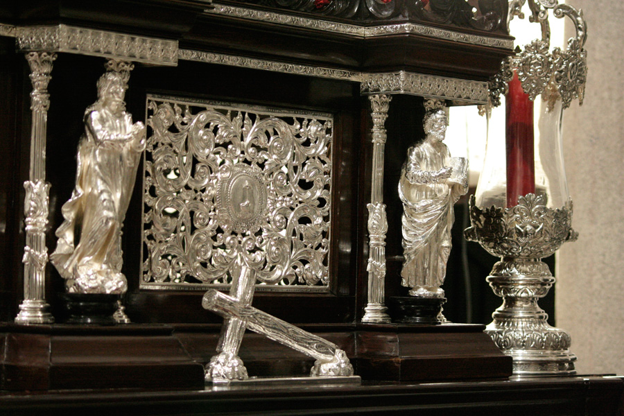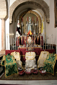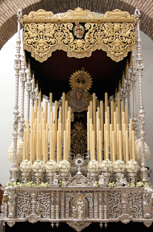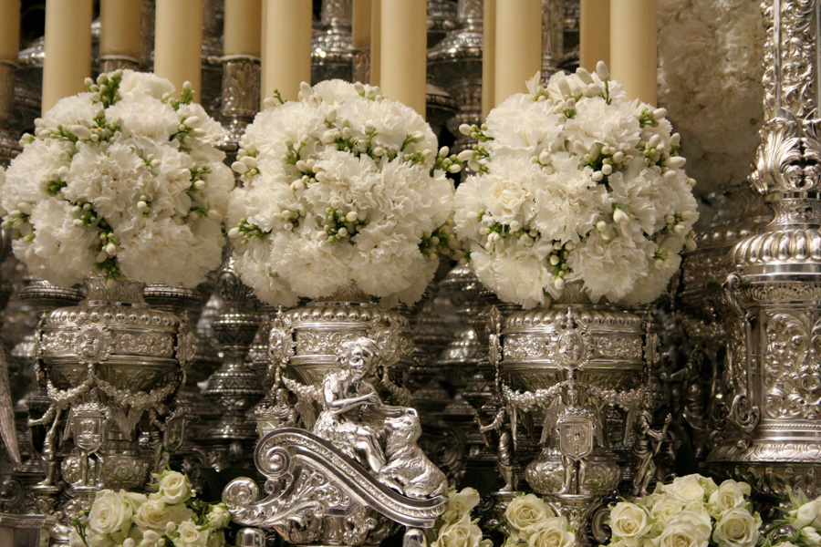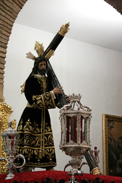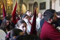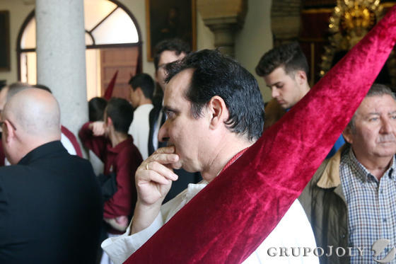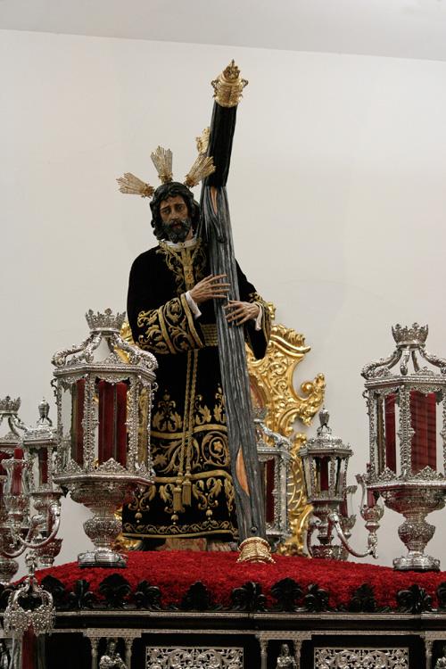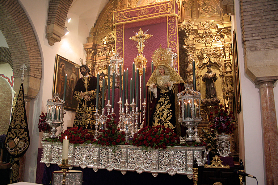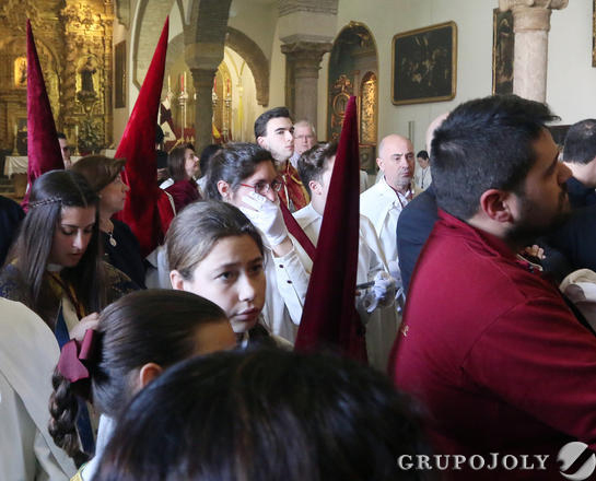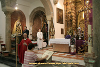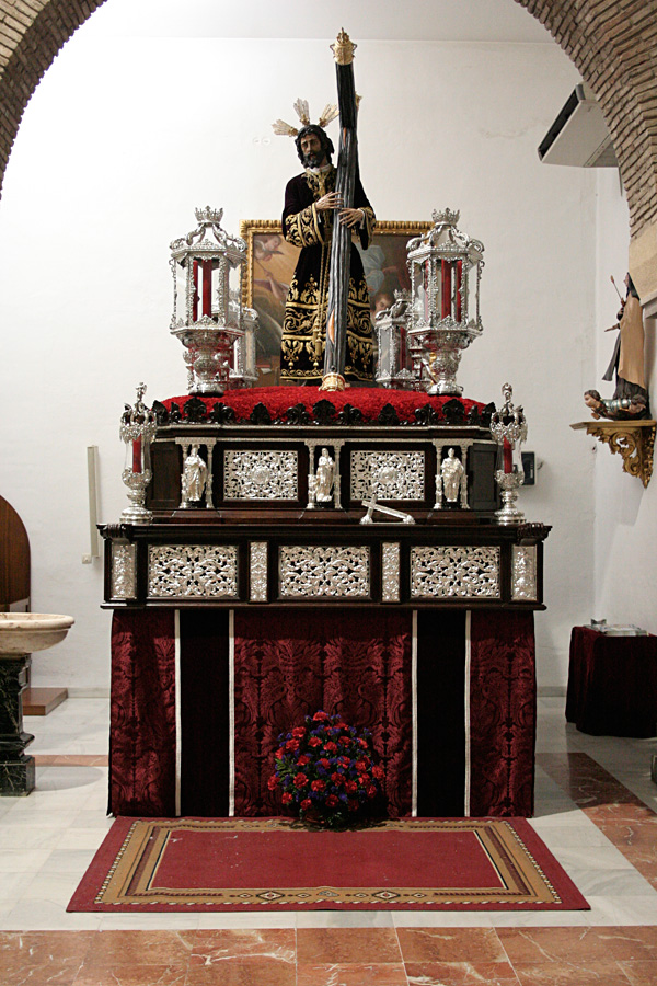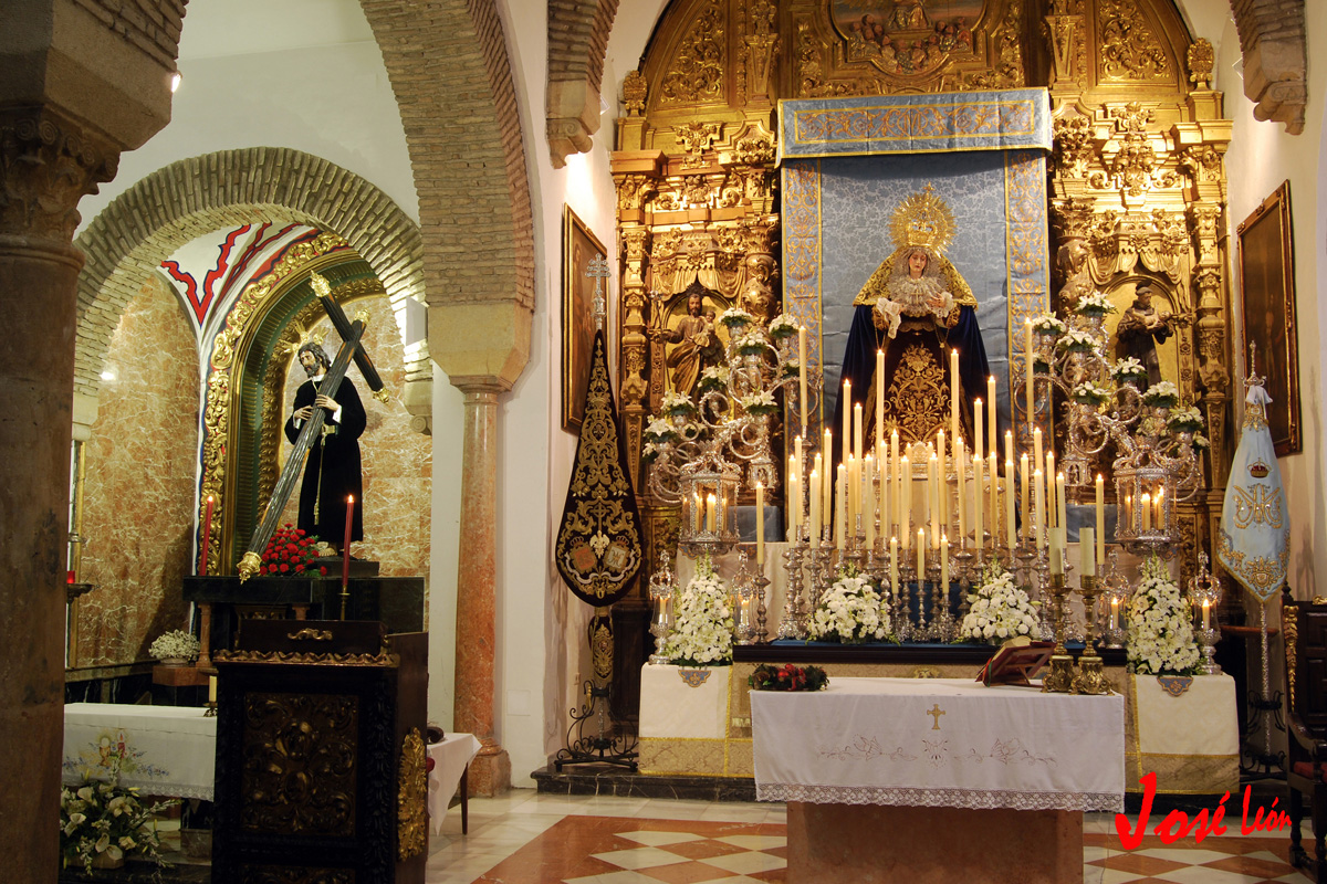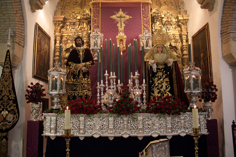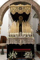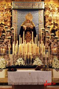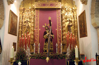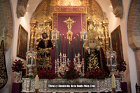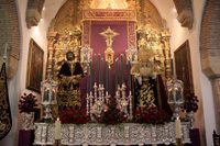 Todo preparado para comenzar la Estación de Penitencia. Nuestros Titulares lucen esplendorosamente en sus altares cuidados con esmero por sus Hermanos de la Vera-Cruz.