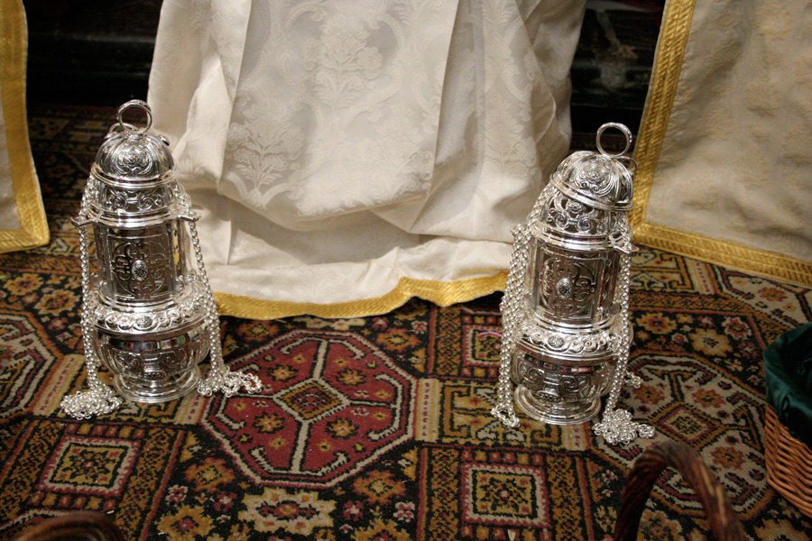 Este Lunes Santo, si Dios quiere, la Archicofradía presentará varios estrenos, además de los ya anunciados días atrás en esta misma sección. Concretamente son dos nuevos incensarios que acompañarán a la Santa Vera-Cruz abriendo el cortejo de nazarenos. Han sido realizados por el orfebre cordobés Manuel Valera Pérez, y donados por un hermano. Igualmente los acólitos que porten dichos incensarios llevarán dalmáticas realizadas en brocado y galón dorado, siendo de tonalidad verde, el color de la Vera-Cruz. Además, la Virgen del Dulce Nombre estrena un broche pectoral realizado por el platero cordobés Francisco José Pedregosa y donado por un hermano. Por último, y dentro del proceso de mejora y conservación del Paso del Señor de los Reyes, se ha realizado el plateado de las figuras que rodean el canasto y del llamador del paso.