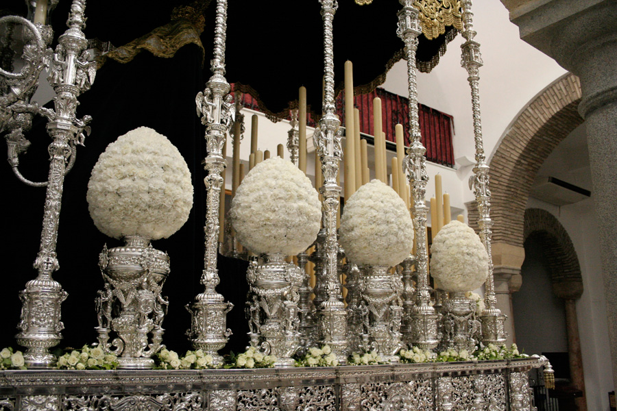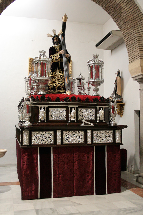 Estructuralmente, consta de dos zonas: la Cruz propiamente dicha donde preside la imagen del Crucificado de “Las Maravillas” (advocación rescatada de la Imagen que procesionó en la Primitiva Cofradía de la Vera Cruz de Córdoba), y la base o “templete”, la cual alberga la Imagen de Santa Elena, (al ser la Santa que encontró la verdadera Cruz de Cristo en el año 326); cuatro estípites cobijan dicha efigie, y conforman el “templete” que es coronado por una cúpula nervada que sustenta la zona principal: la Cruz, resuelta mediante una estructura ornamental que bordea la talla del Crucificado. Dicha decoración es a base de hojarasca menuda y simétrica, lo que hace de marco a la propia Imagen y a la Cruz arbórea que sustenta a Ésta.