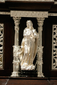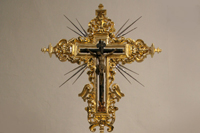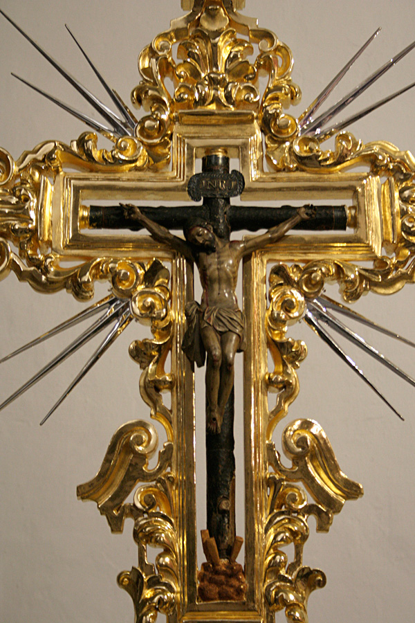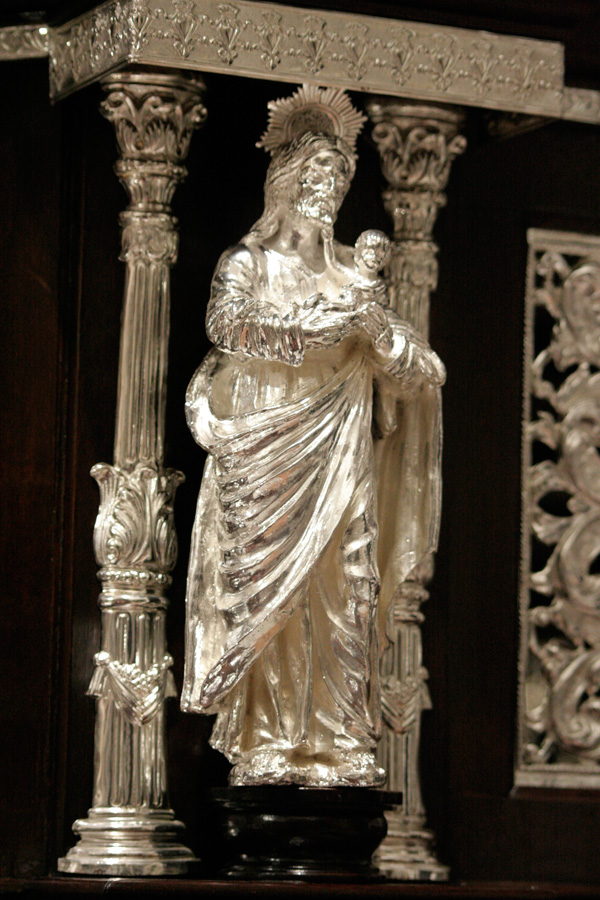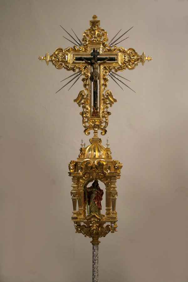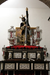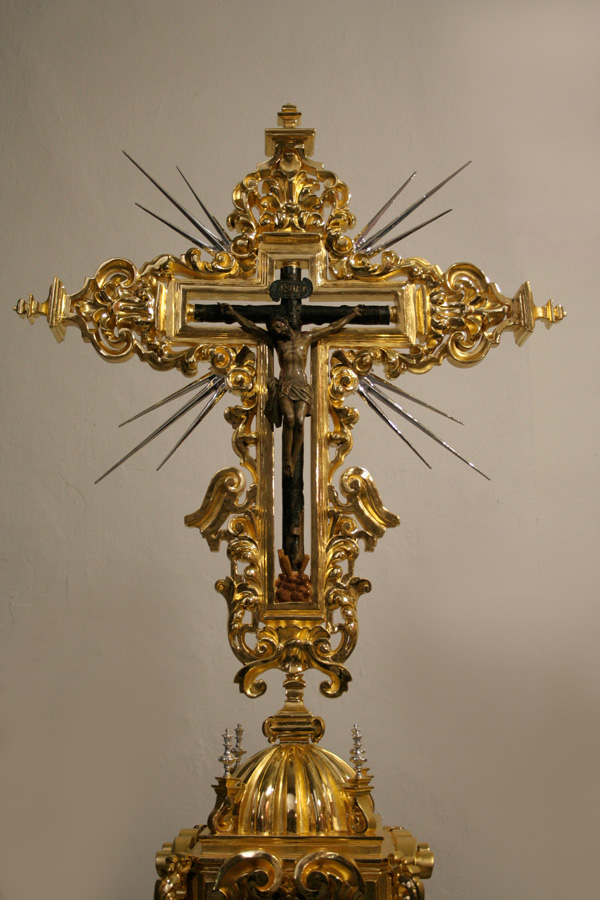 El Cristo de las “Maravillas”, Crucificado de talla completa con cruz arbórea, de 40 cms de largo x 30 de ancho, catalogado en la primera mitad del siglo XVII, según documentos que conserva la familia donante (Álvarez Caparrós), mediante legados y testamentos y atribuido a la escuela o círculo de Martínez Montañés. Santa Elena, imagen contemporánea realizada por el imaginero Edwin González Solís en madera de cedro, policromada al óleo, dorada en oro fino y estofada al temple.