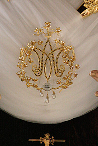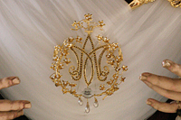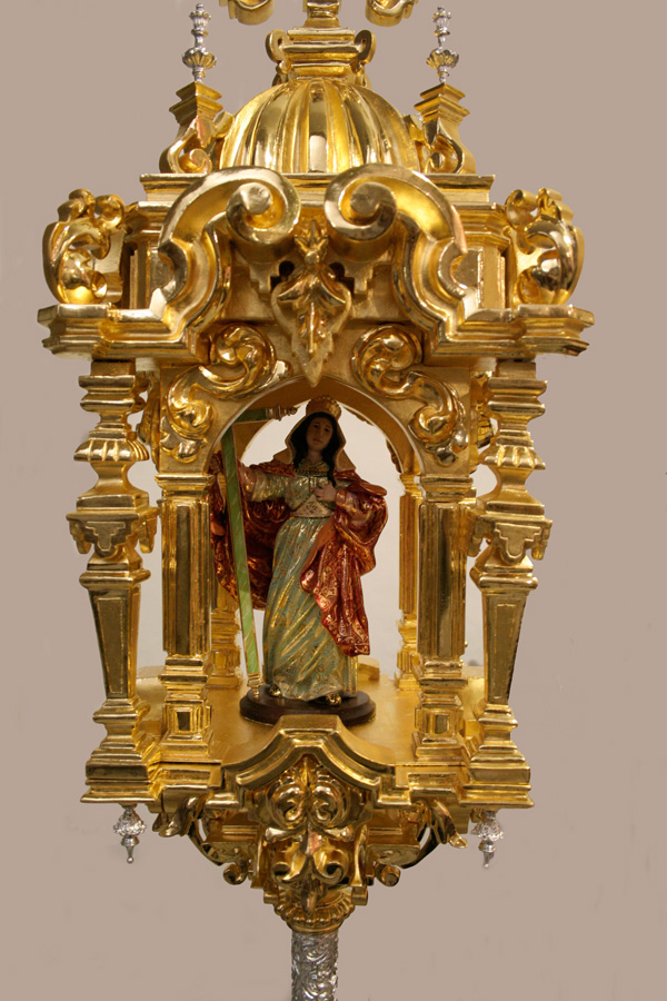 Realizado en el taller de Artesanía del Dorado Ana Galiano de Alcalá de Guadaira (Sevilla). Dorada en oro fino de 24 kilates, con brillo sacado en piedra de ágata.