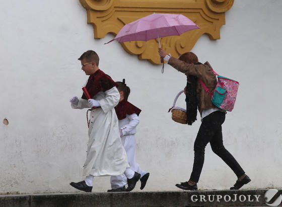 Siempre hay una primera vez, y el pasado domingo nuestra Titular de Gloria la Divina Pastora de las Almas no pudo procesionar por las calles del Campo de la Verdad, Su barrio. La lluvia fue la protagonista en una jornada que amanecía con malos presagios desde el cielo, y se confirmó durante toda la mañana. Muchos hermanos y fieles llenaban nuestra Parroquia cuando se decidió no procesionar, rezando la Salve ante las plantas de la Pastora. Posteriormente la banda de música María Santísima de la Esperanza ofreció a la bendita Imagen su ofrenda musical interpretando de forma magistral una cuidada selección de siete marchas, que debían haber sonado tras Su paso por las calles de nuestro barrio. Pero no pudo ser este año. Concluimos el acto con el canto de la Salve Regina, y agradeciendo a todos los presentes su asistencia y devoción hacia la Divina Pastora.