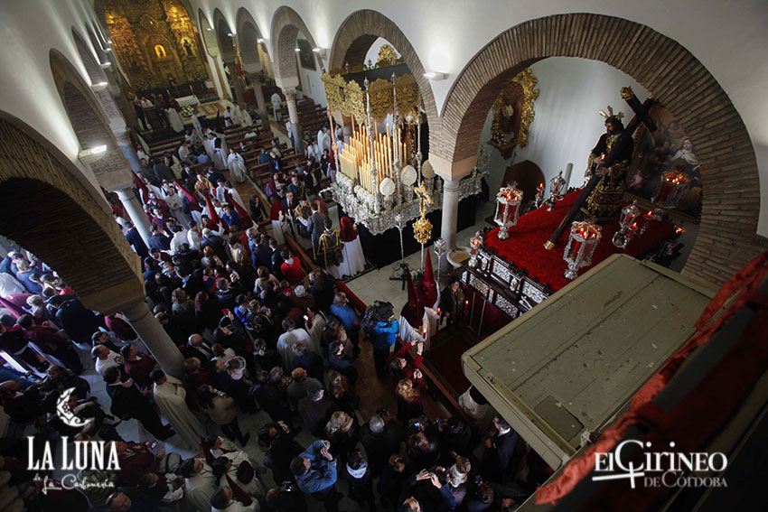 Itinerario: Salida, Paseo Cristo del Descendimiento, Avda Diputación, Plaza Santa Teresa, Puente Romano, Arco del Triunfo, Corregidor Luis de la Cerda, Santa Iglesia Catedral(Patio de los Naranjos), Cardenal Herrero, Judería, Deanes, Conde y Luque, Blanco Belmonte, Angel de Saavedra, Jesús y María, Carrera Oficial (Tendillas, Claudio Marcelo), San Fernando, Ronda de Isasa, Puente Romano, Plaza Santa Teresa, Avd Diputación, Paseo Cristo del Descendimiento, Entrada.
