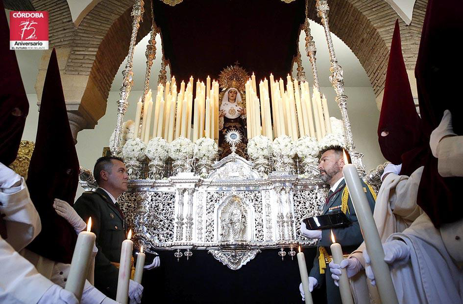 Podeis ver cómo lucen nuestros Sagrados Titulares sobre sus Pasos a la espera de que, si Dios quiere y el tiempo lo permite, iniciemos nuestra Estación de Penitencia a la Santa Iglesia Catedral. La hora prevista de salida es las 16:45, en la Catedral a las 18:30, Carrera Oficial a las 20:20 y la entrada en el Templo prevista para las 23:30 horas. Las bandas que nos acompañarán serán, al igual que el año pasado, la banda de cornetas y tambores Nuestra Señora de la Merded de El Viso del Alcor (Sevilla) en el paso del Señor, y la banda de música María Santísima de la Esperanza de Córdoba en el paso de palio. Os animamos a todos nuestros hermanos a vivir con intensidad y emoción este día que siempre y en cualquier circunstancia meteorológica, será hermoso y grandioso para los hermanos de la Vera-Cruz.