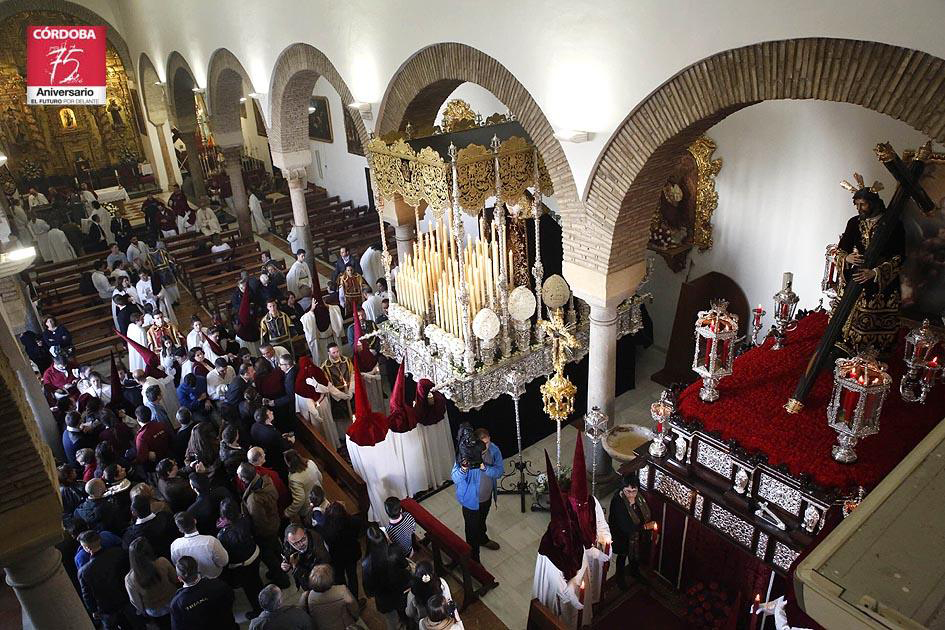 Como ya sabeis, la próxima Semana Santa, todas las Hermandades acudirán a la Santa Iglesia Catedral para realizar Estación de Penitencia ante el Santísimo. Sin embargo la Carrera Oficial continua como hasta ahora, la calle Claudio Marcelo y Tendillas. Por este motivo se ha tenido que ajustar los horarios e itinerarios de todas las Hermandades, a fin de poder facilitar el acceso de todas al Templo Mayor de nuestra Diócesis. El Lunes Santo ha sufrido un cambio sustancial en su organización. Hasta tal punto que para poder cuadrar de forma coherente los horarios, se ha tenido que determinar la realización de la Carrera Oficial en sentido inverso al resto de los días. Así se iniciará en las Tendillas y terminará en la calle Clauido Marcelo esquina con Capitulares. Además, este día las Hermandades no entraremos en el interior de la Santa Iglesia Catedral, discurriendo por el Patio de los Naranjos entrando por la Puerta de Santa Catalina y saliendo por la Puerta del Perdón. En la Puerta de las Palmas se alzará un Altar ante el cual adoraremos al Santísimo.