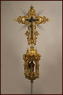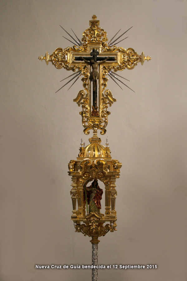 El pasado día 12 de Septiembre, primer día del Triduo que nuestra Archicofradía celebra en honor a la Santa Vera-Cruz, primera Titular de la Hermandad, tuvo lugar la solemne bendición de la nueva Cruz de Guía que abrirá el cortejo procesional a partir del próximo Lunes Santo. Se trata de una Cruz de Guía alzada, pensada y diseñada con la premisa de ser la Titular que le da el nombre a la Archicofradía, confiere por tanto una identidad buscada tanto en el aspecto como en la simbología.