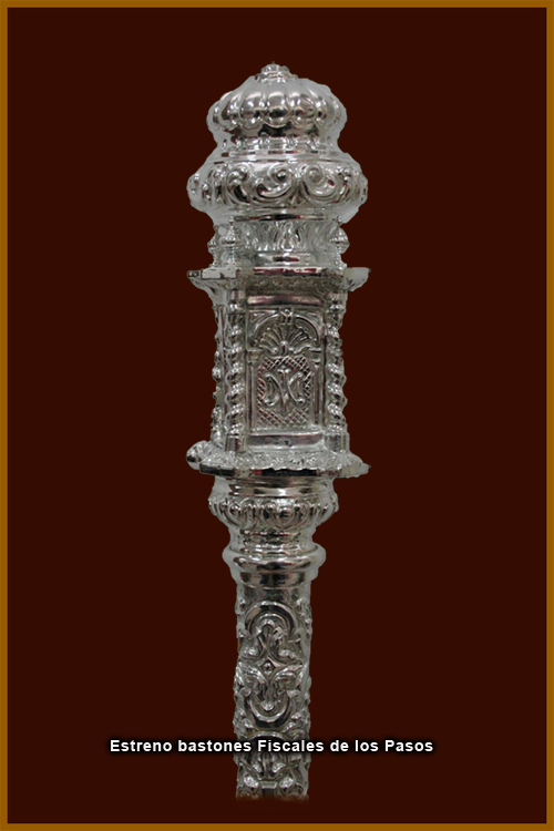 Y por último destacar el estreno de dos bastones para los fiscales de los pasos. Se han realizado en el taller de Viuda de Villarreal en Sevilla, y son de metal cincelado y plateado.